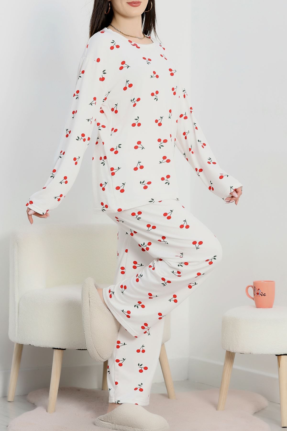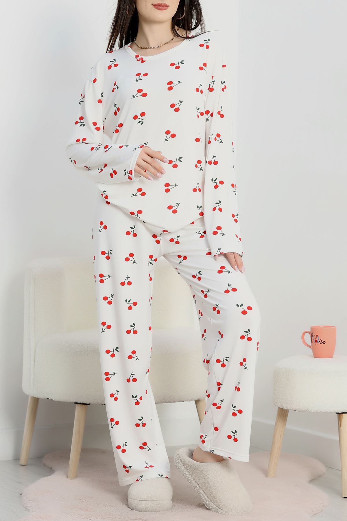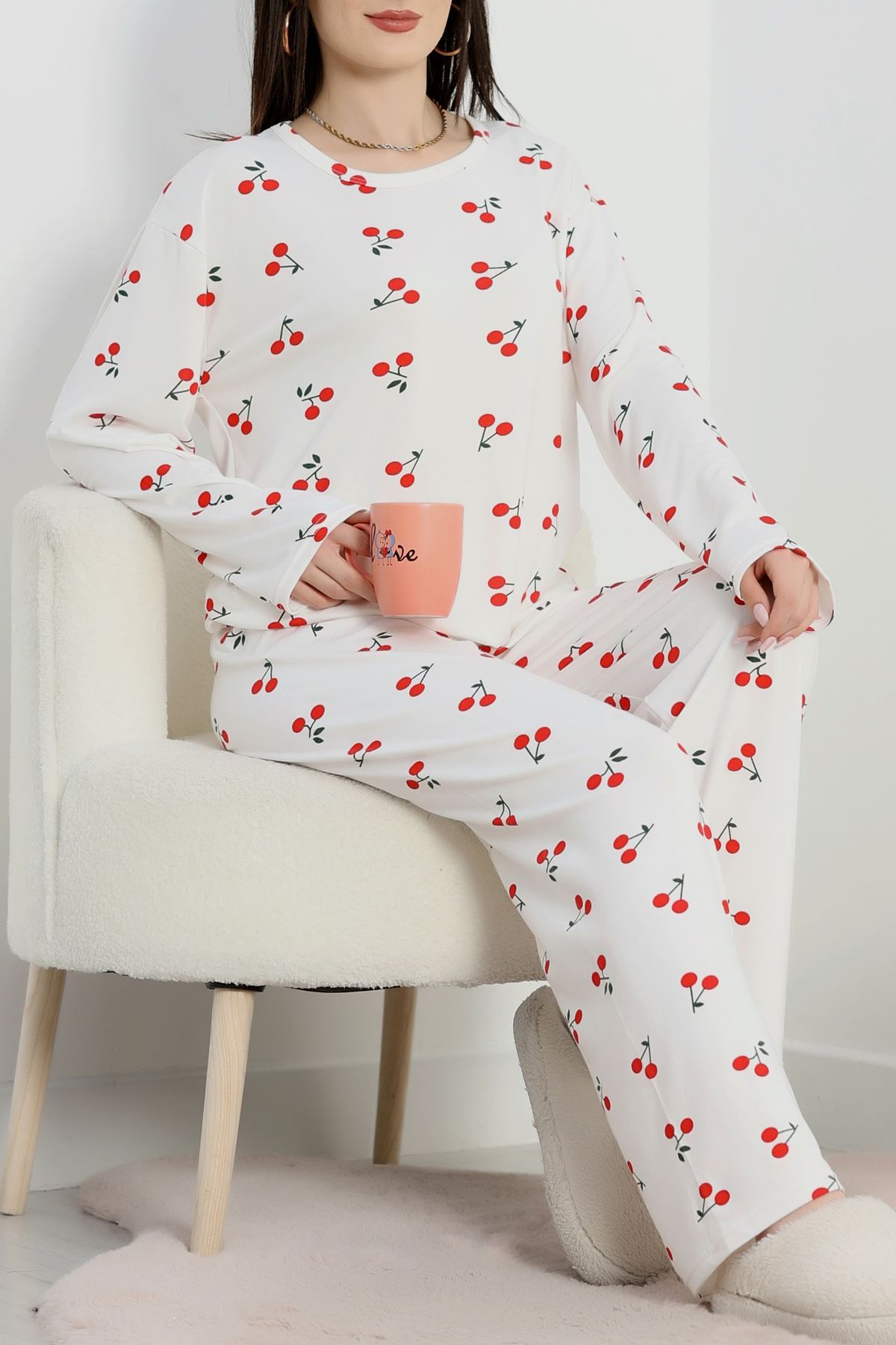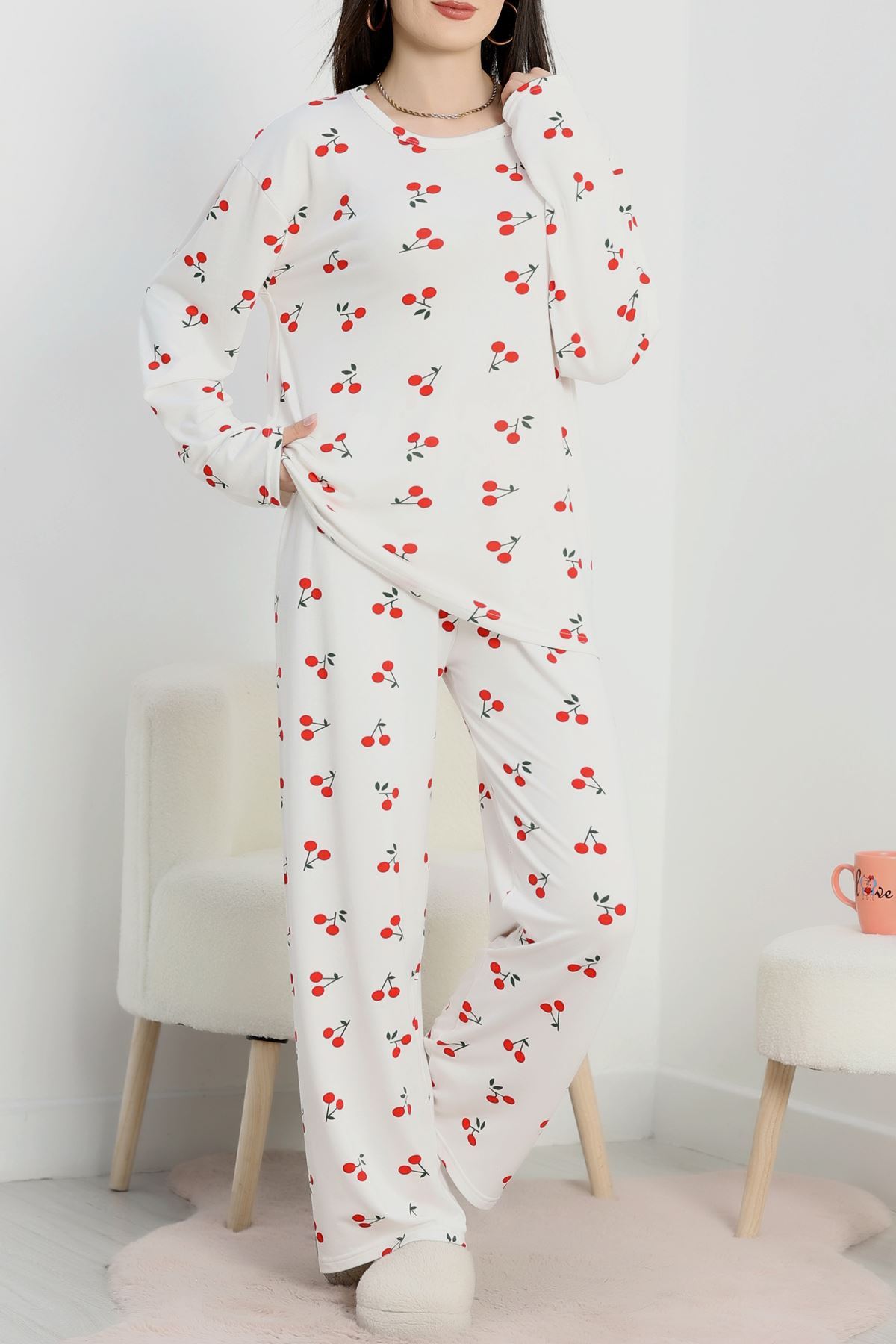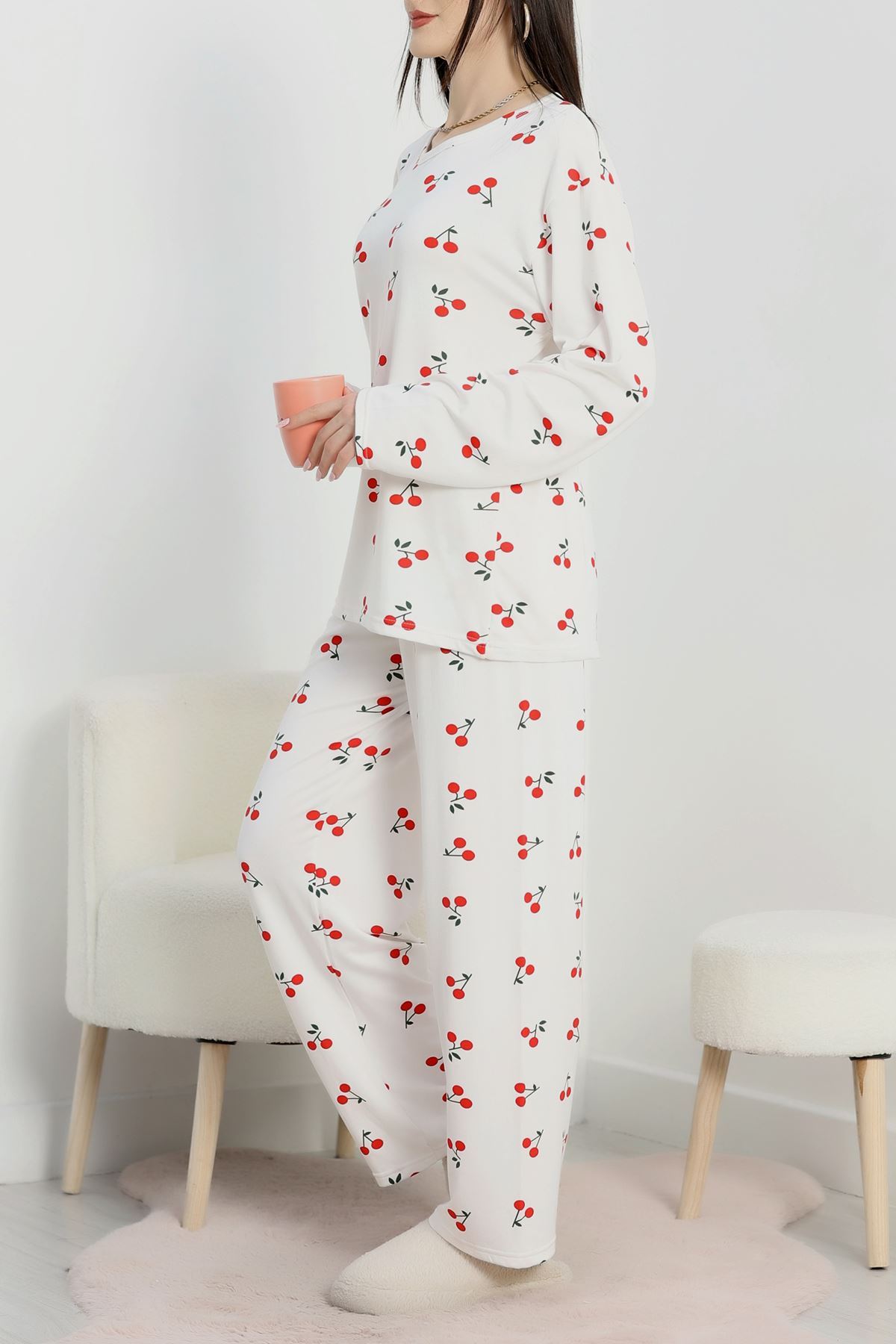 Süet Alt Üst Aynı Pijama Takımı Beyazkırmızı - 118.1287.