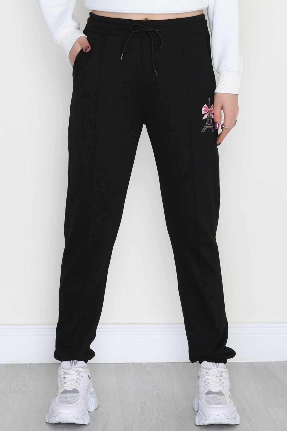 Baskılı Paça Lastik Eşofman Altı Siyahpembe1 - 41316.1431.