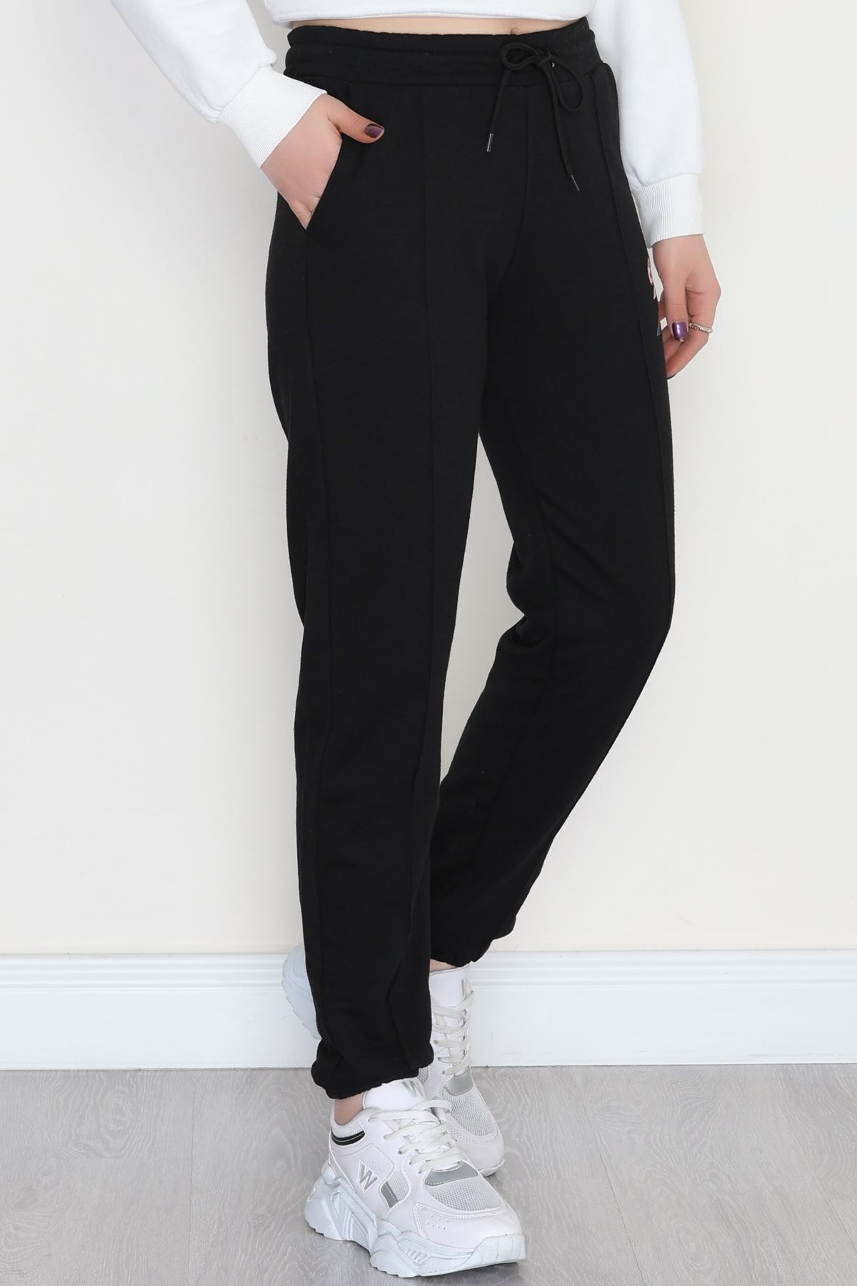 2 İplik Pileli Eşofman Altı Siyah - 52008.1857.