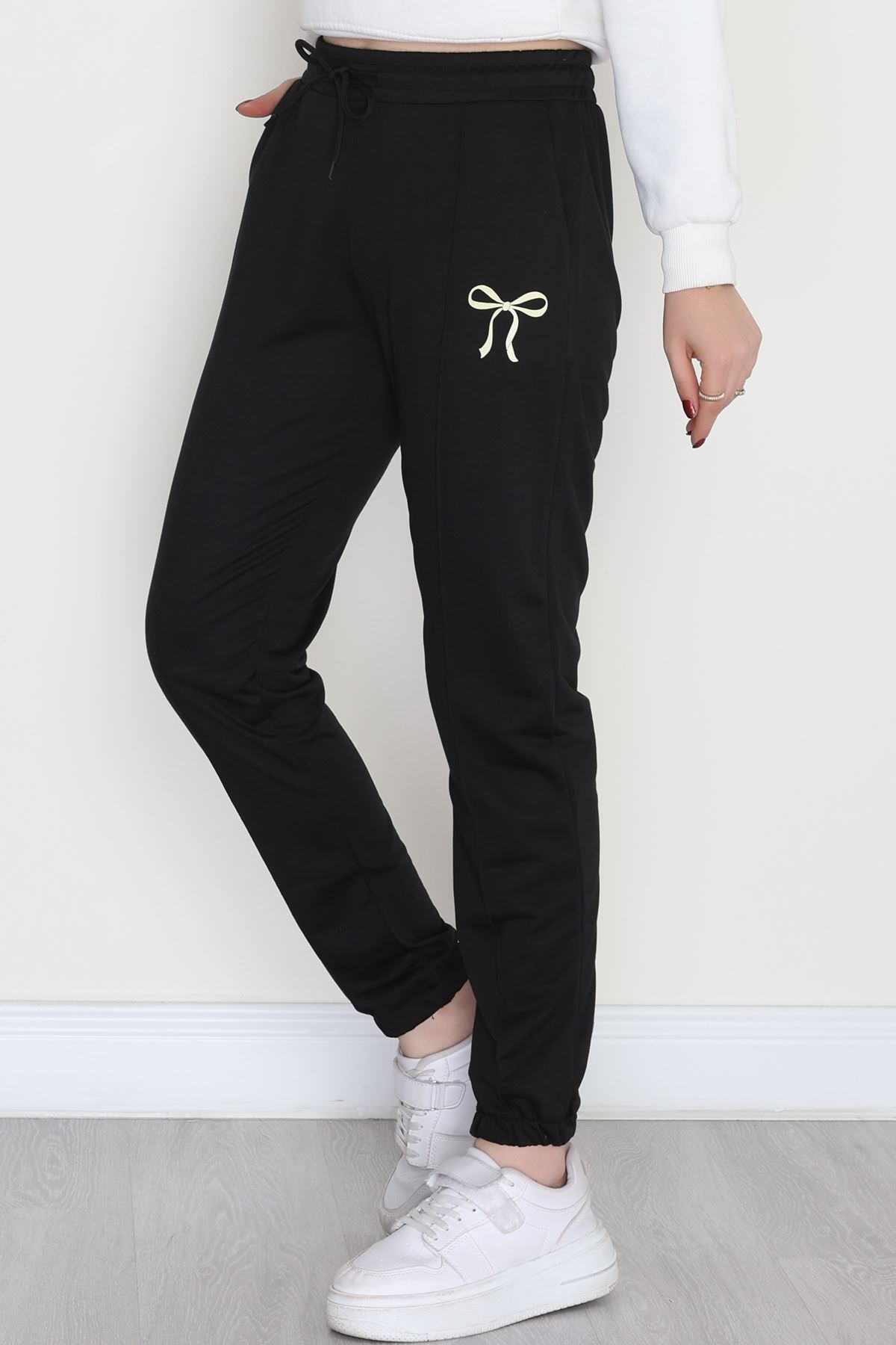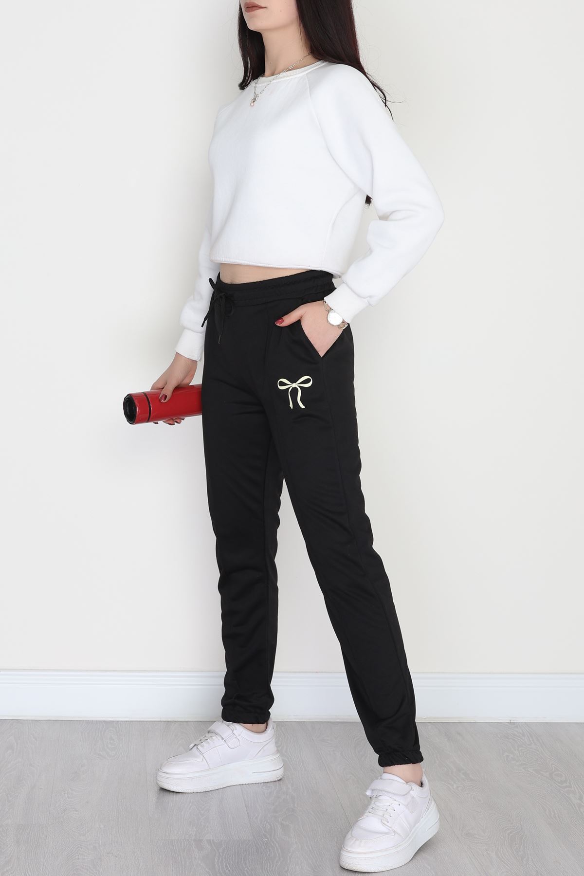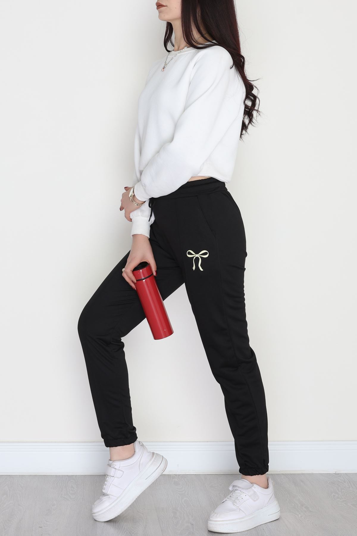 Özel Tasarım Nakışlı 2 İplik Eşofman Altı Siyah - 70159.1857.