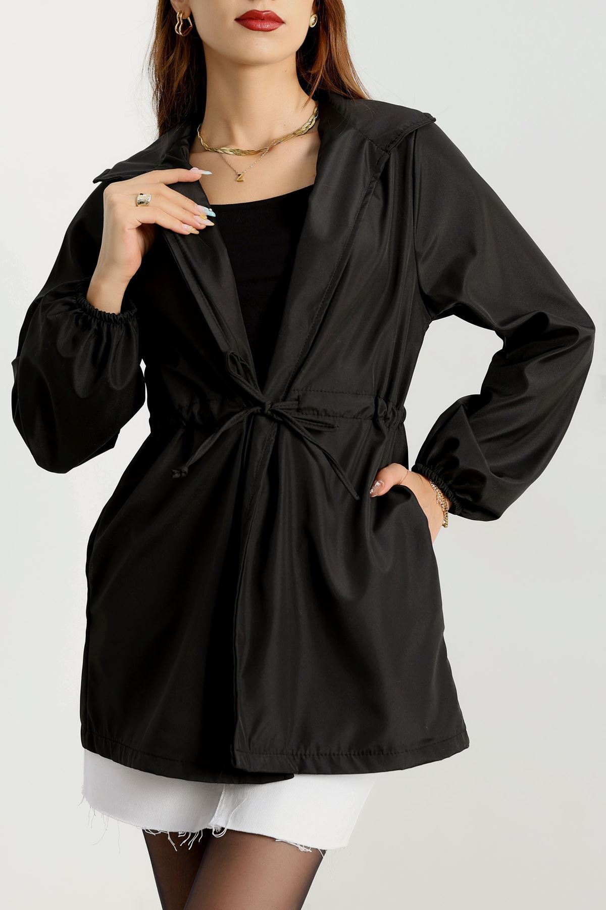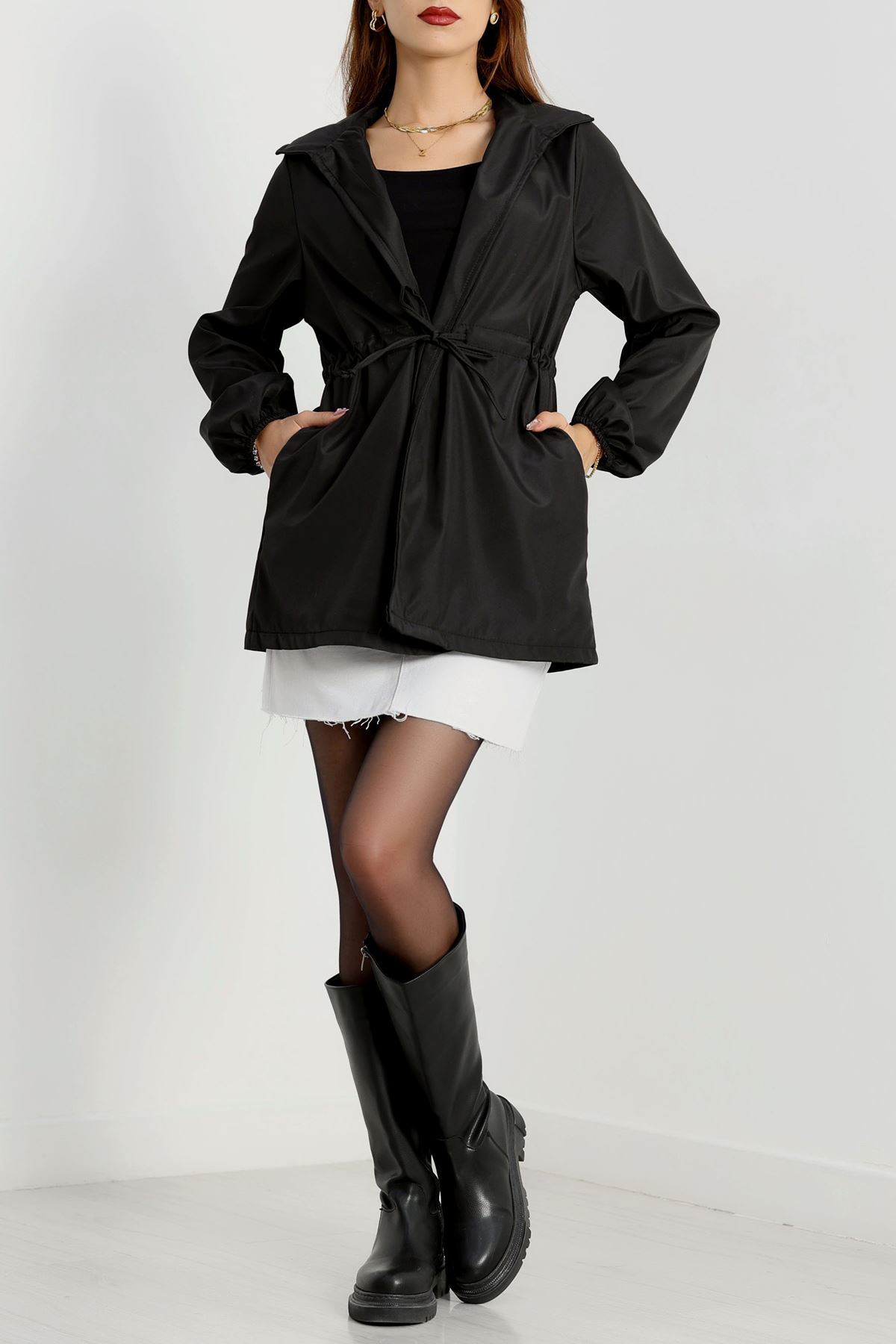 Bel Bağlamalı Basen Altı Trençkot Siyah - 90907.147.
