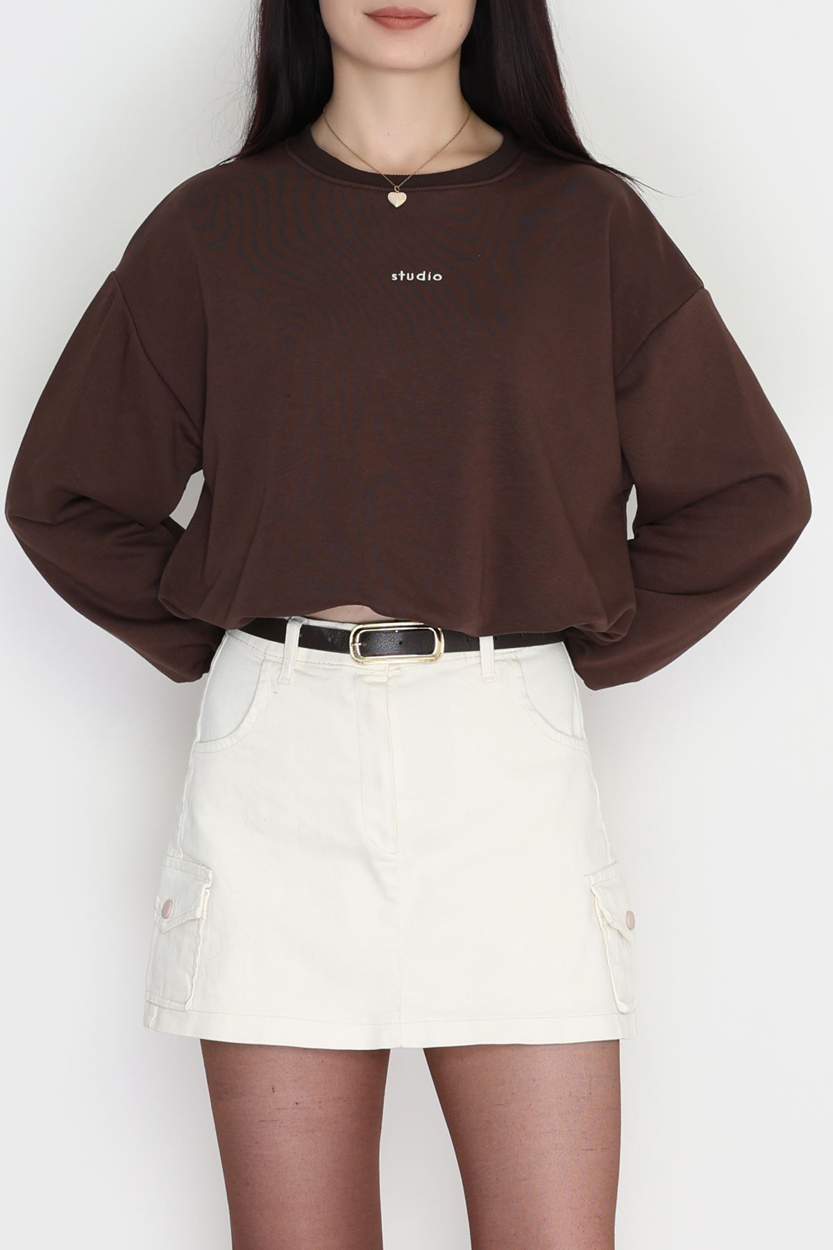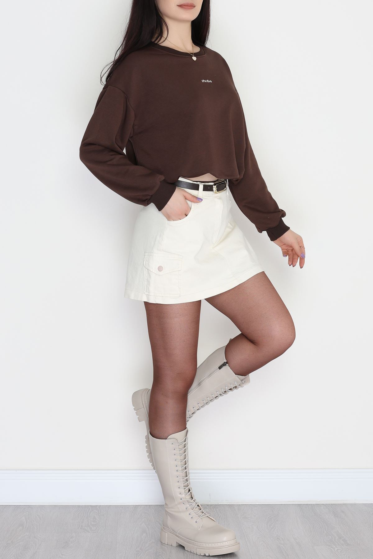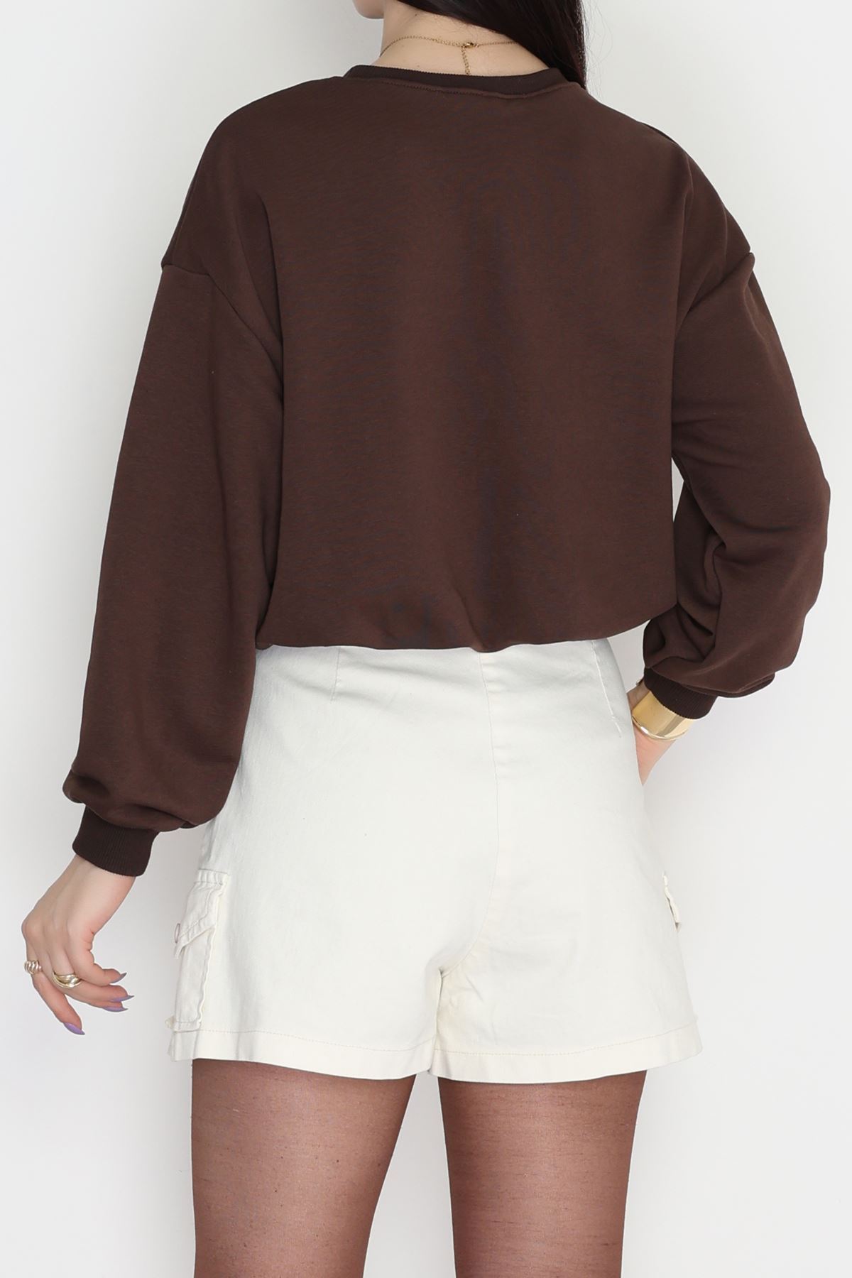 Bel Büzgülü Crop Sweat Kahve - 42444.1247.