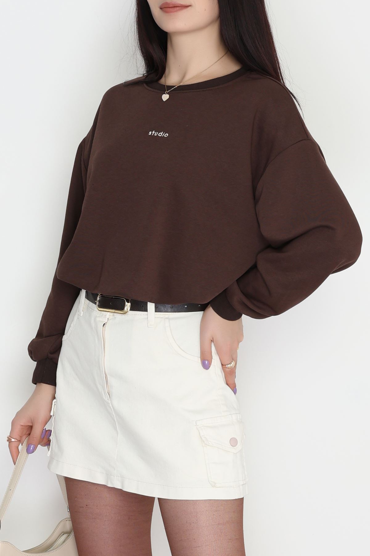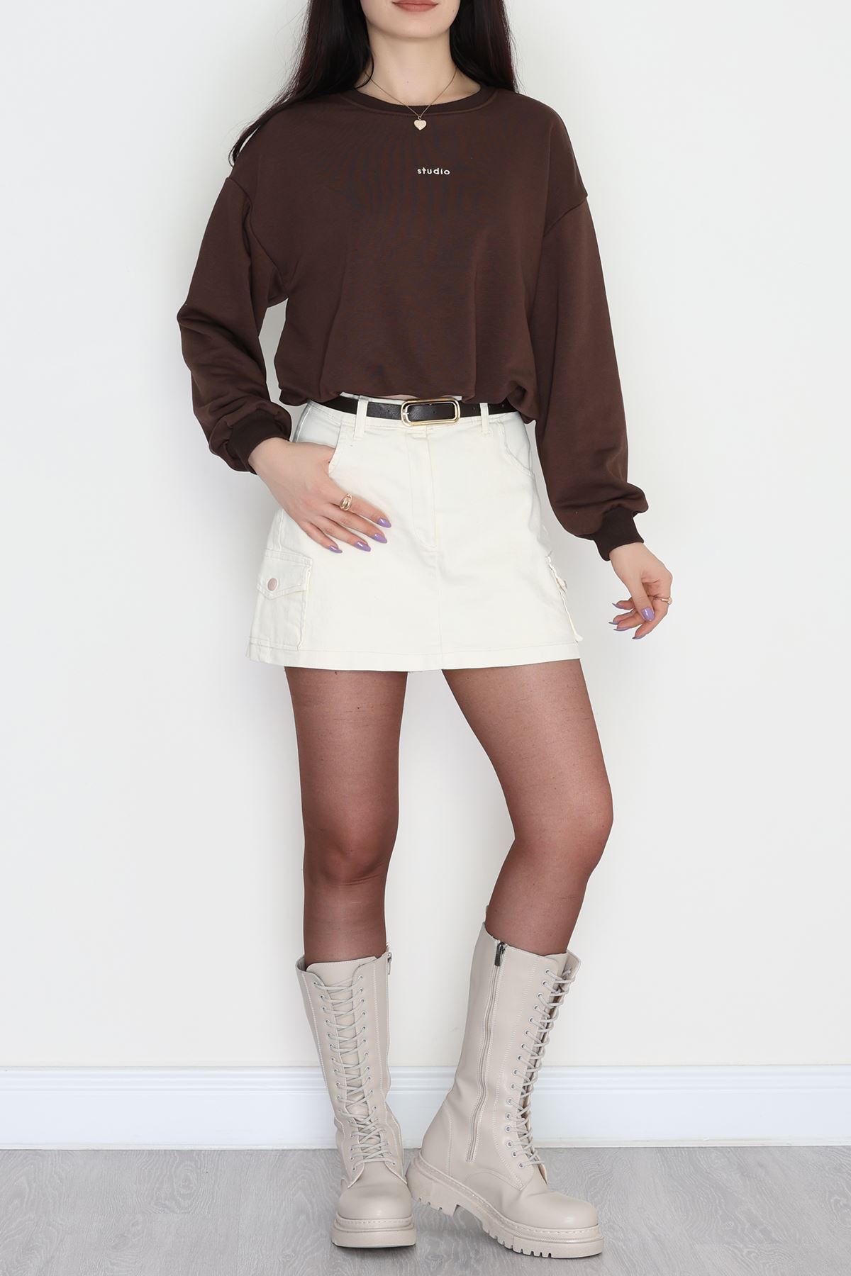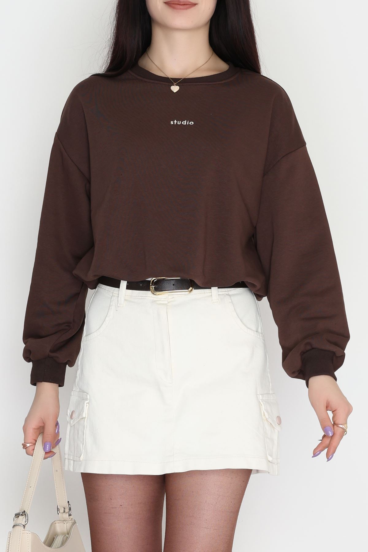 Bel Büzgülü Crop Sweat Kahve - 42444.1247.