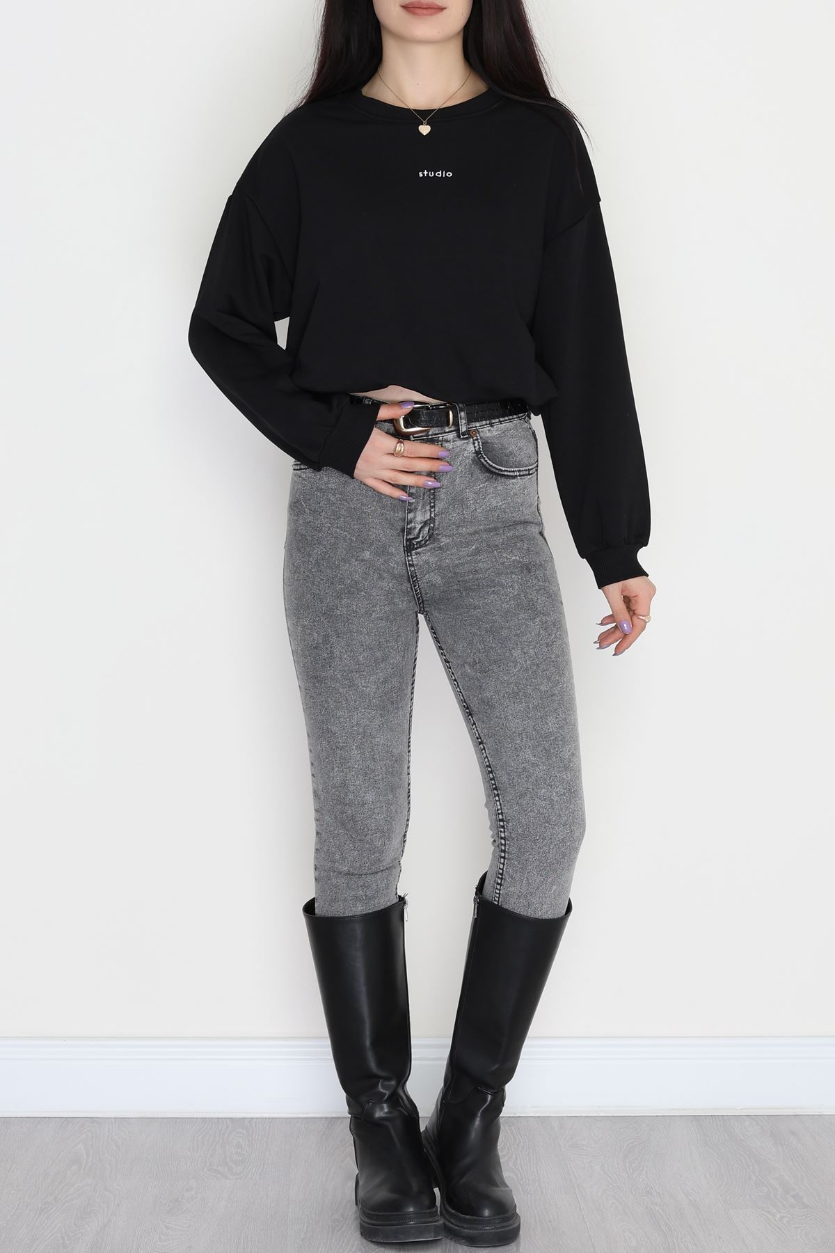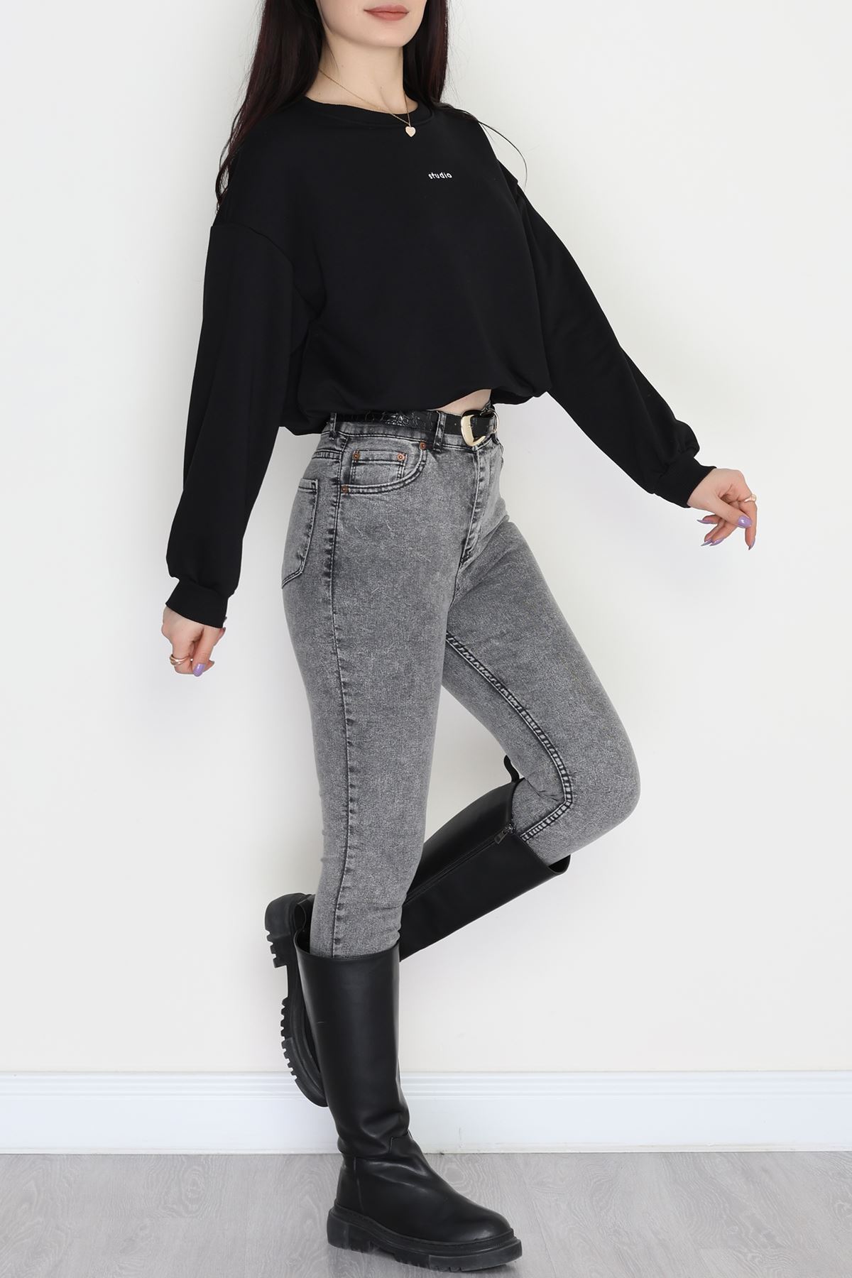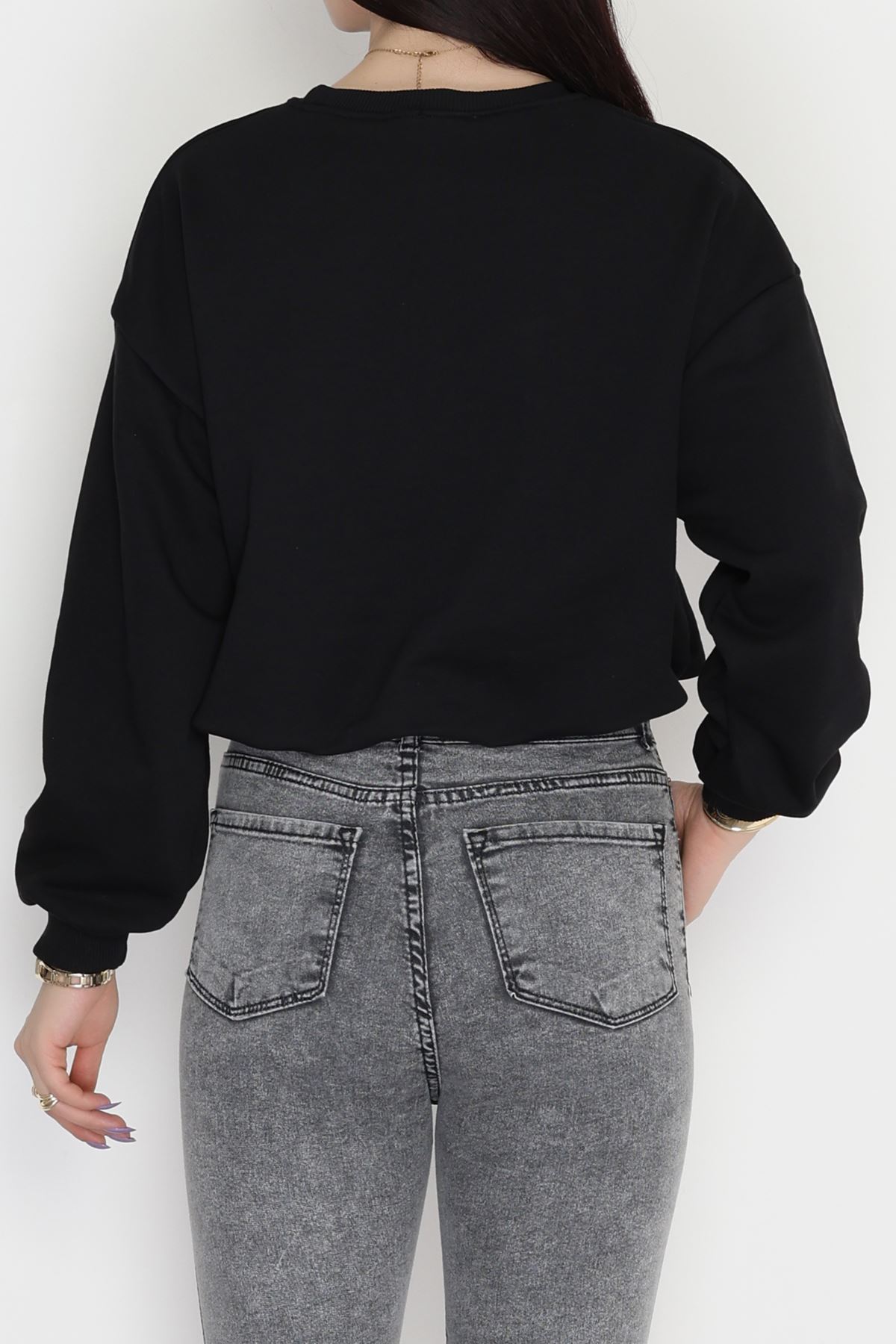 Bel Büzgülü Crop Sweat Siyah - 42444.1247.