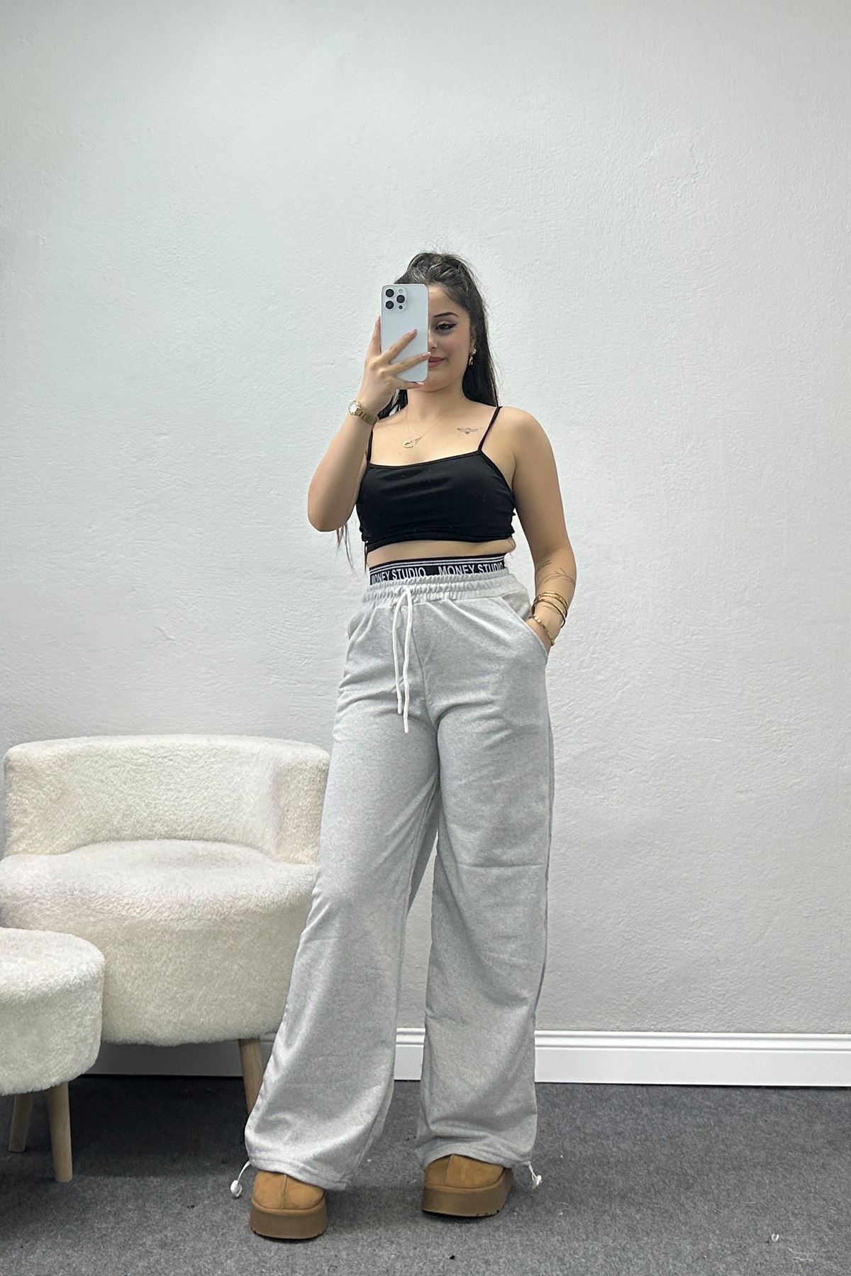 Bel Detaylı 2 İplik Eşofman Altı Gri - 70169.1857.