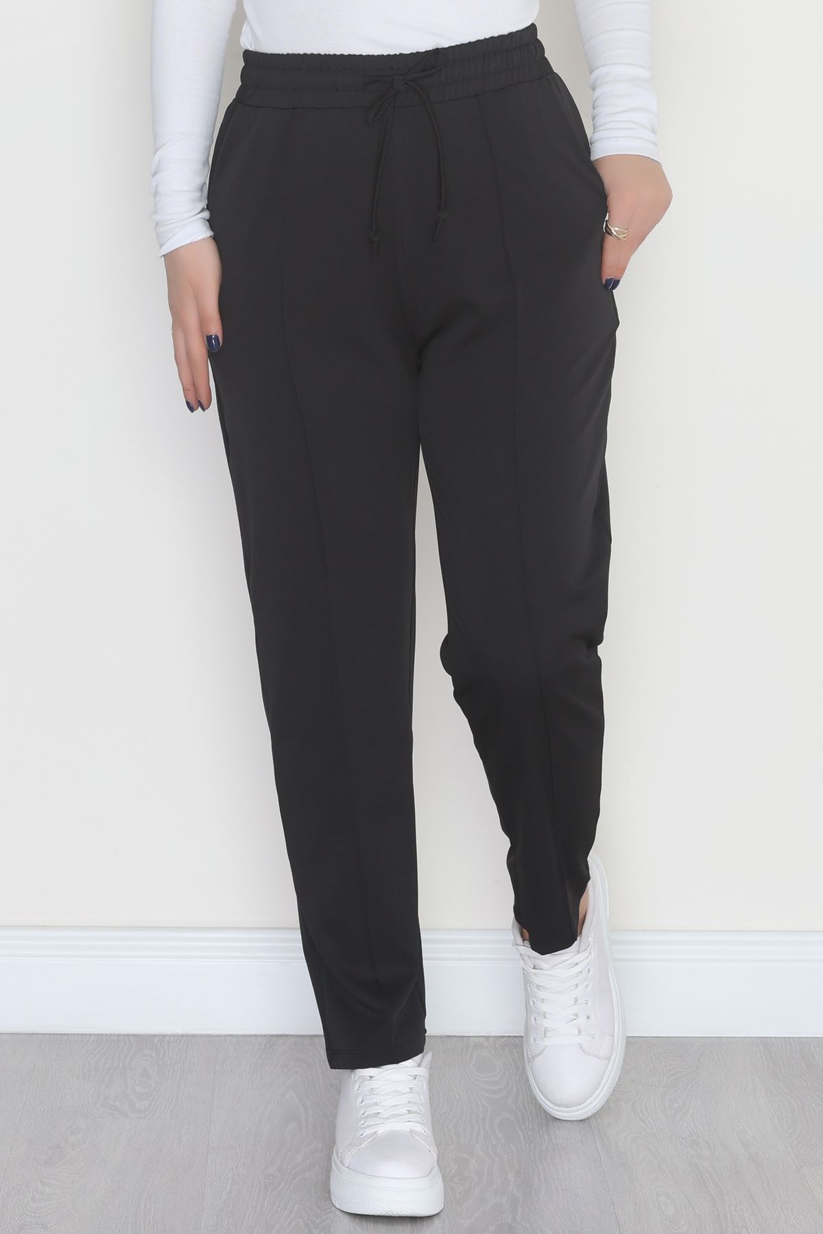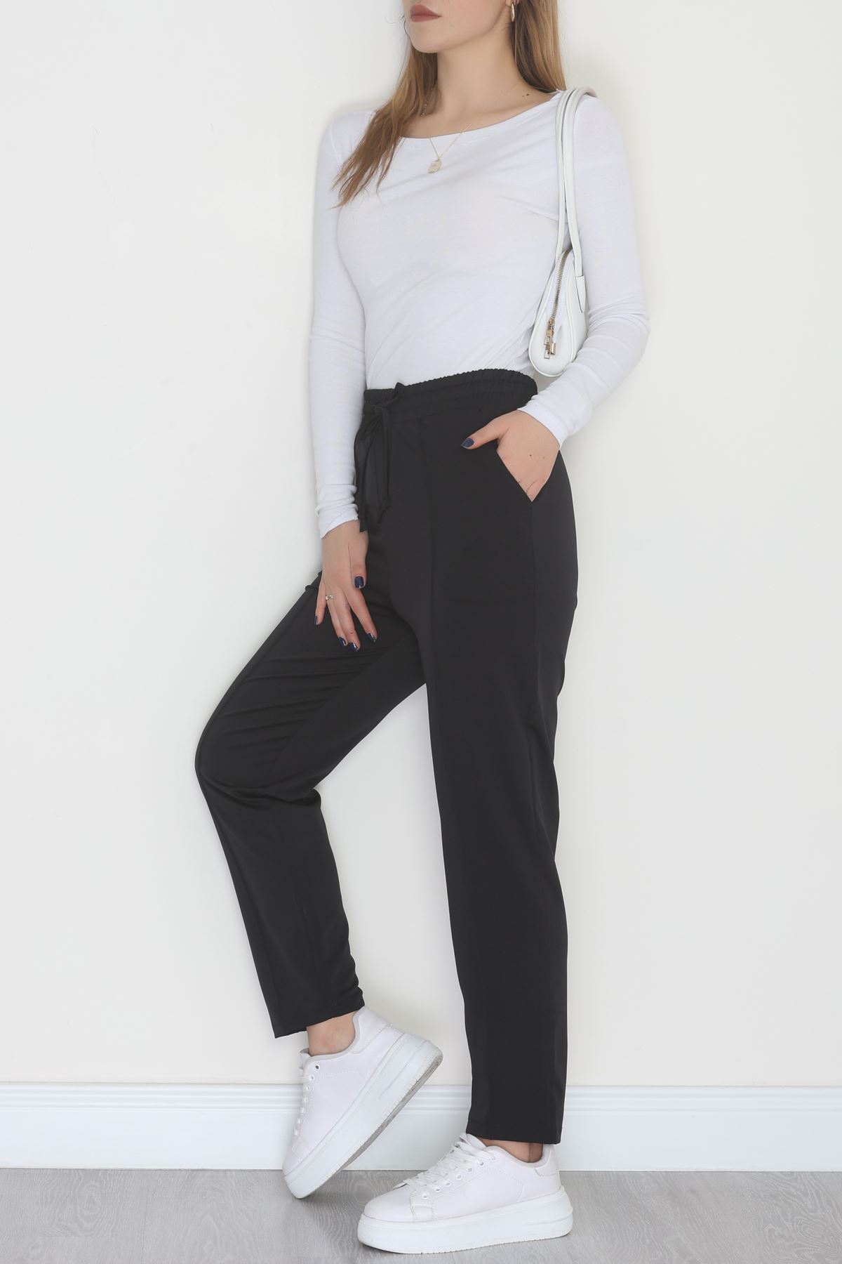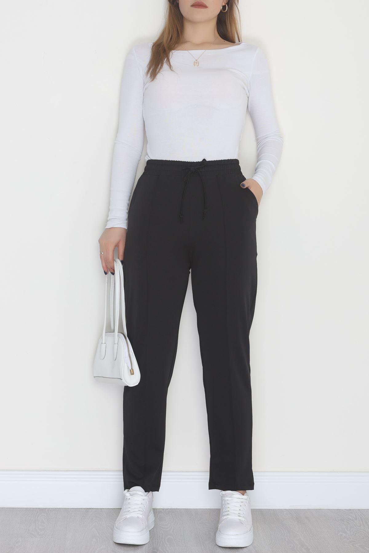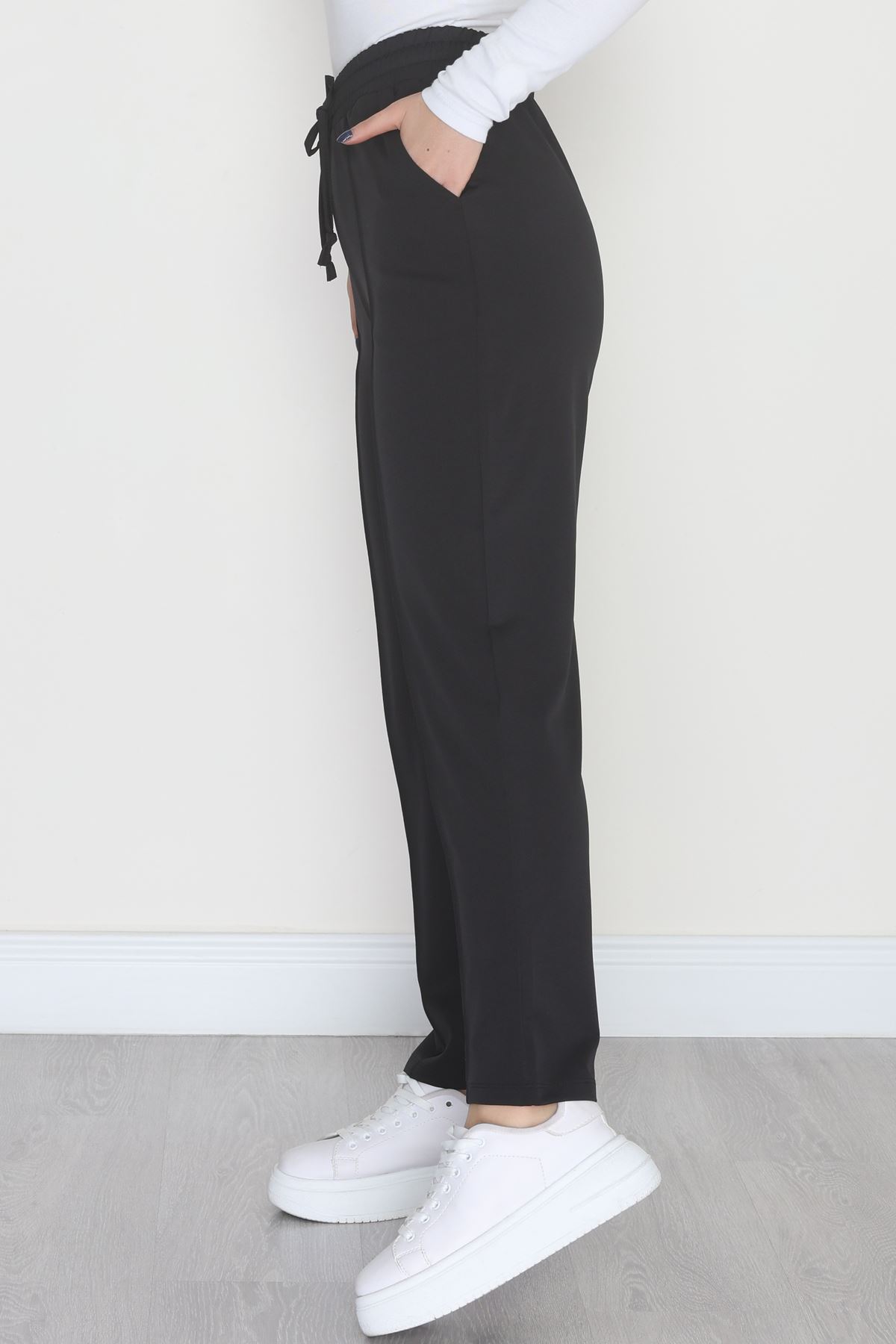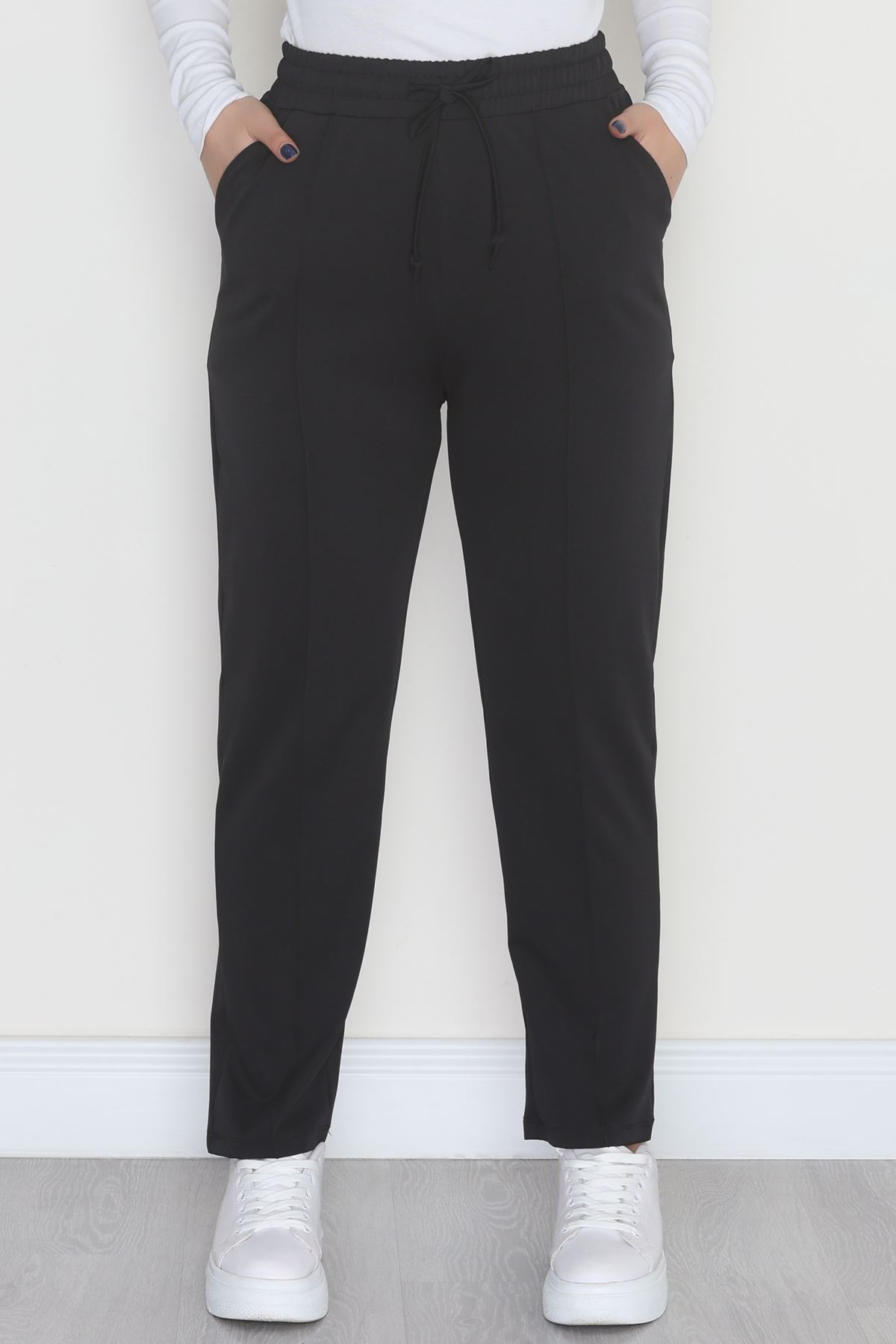 Bel Lastikli Dabıl Kumaş 180Gr Çımalı Pantolon Siyah - 51057.1837.