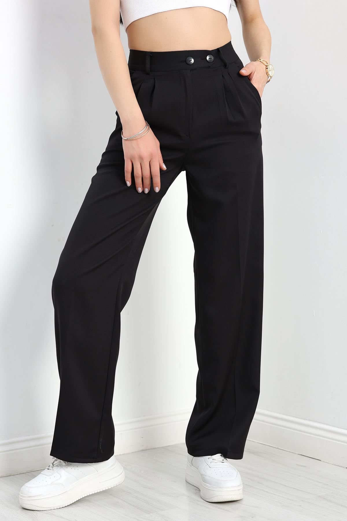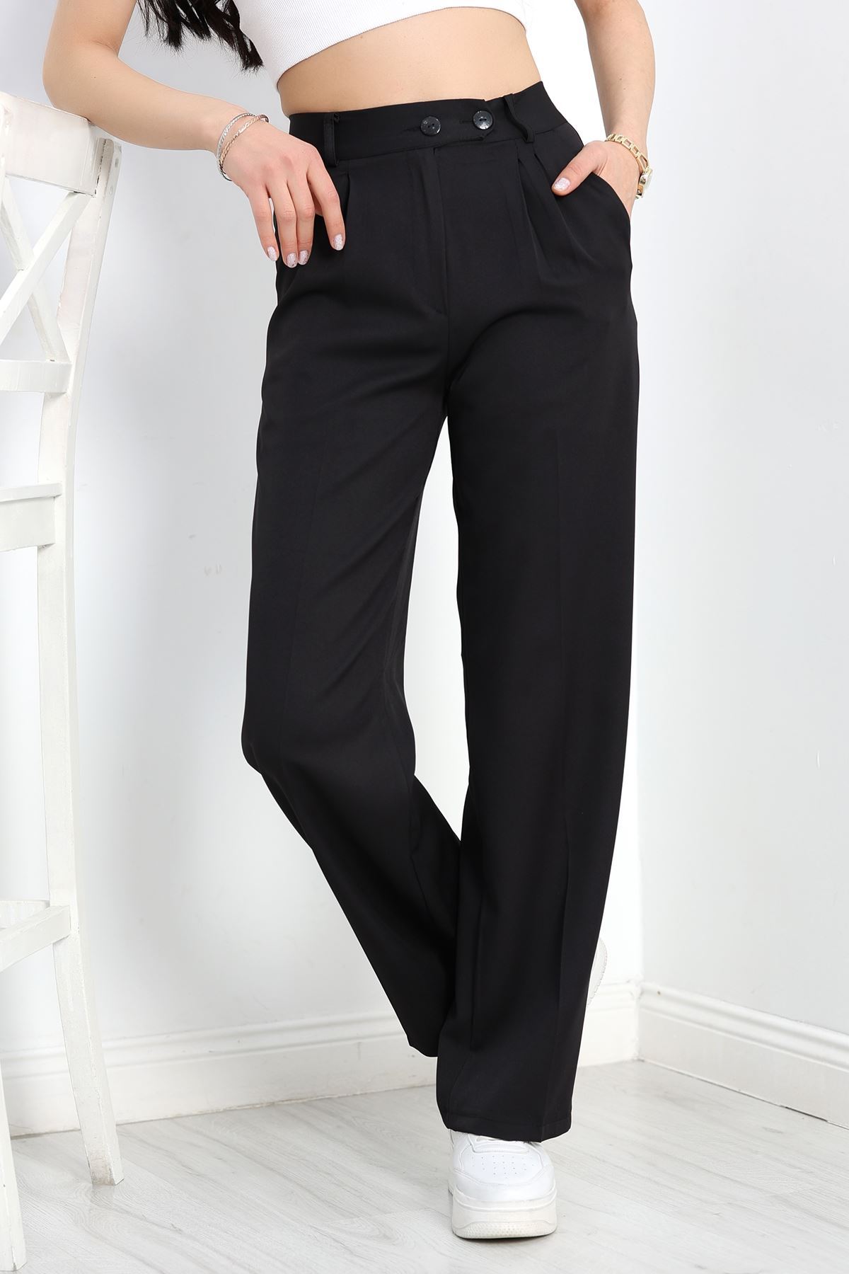 Bel Lastikli Palazzo Pantolon Siyah - 30388.1397.