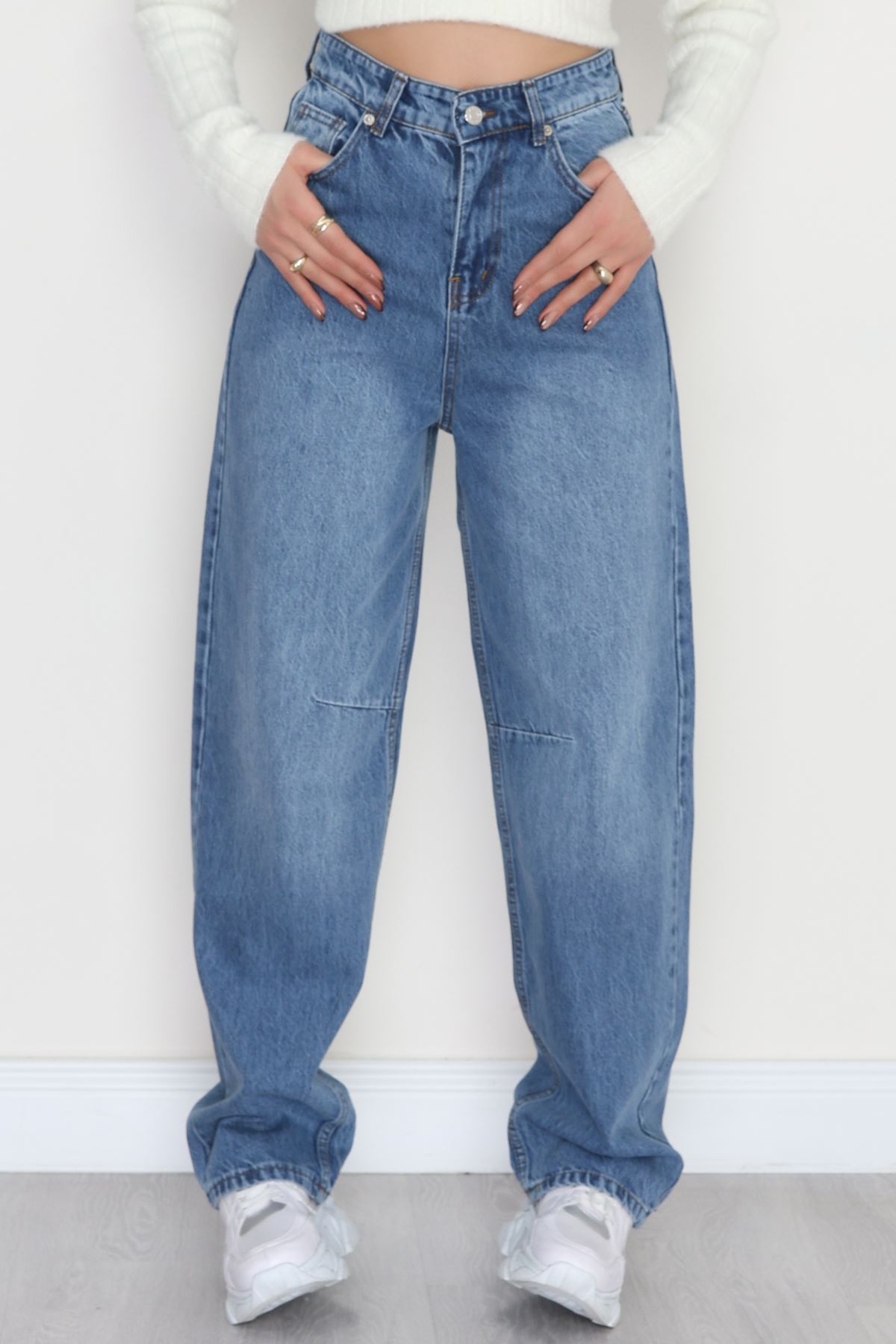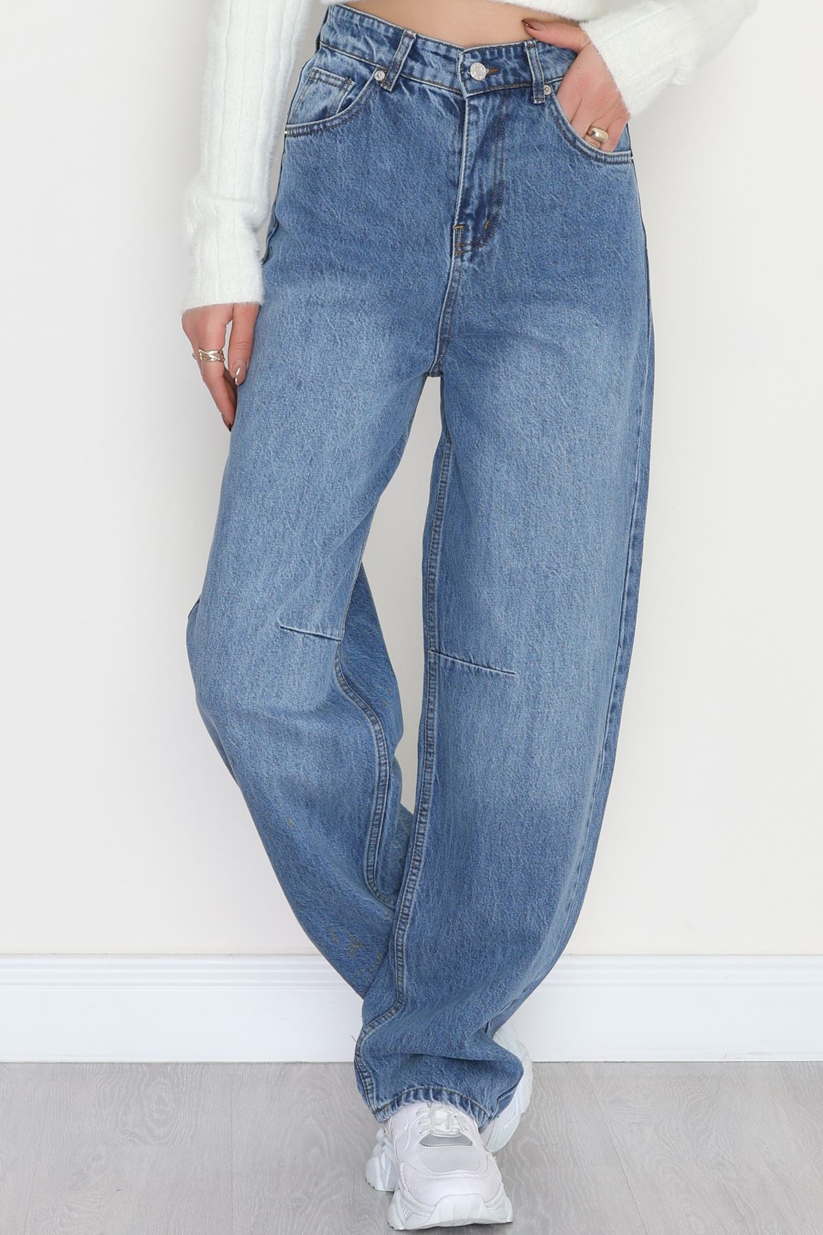 Bel Tokalı Baggy Kot Pantolon Açıkmavi - 42472.1606.