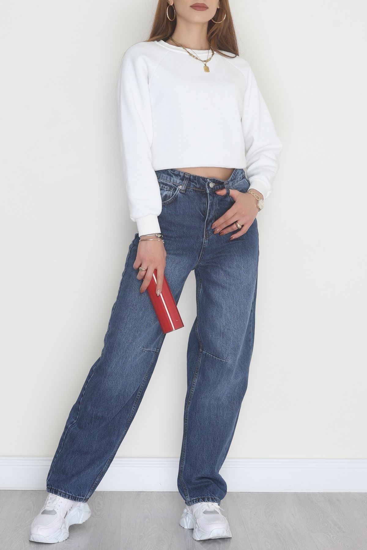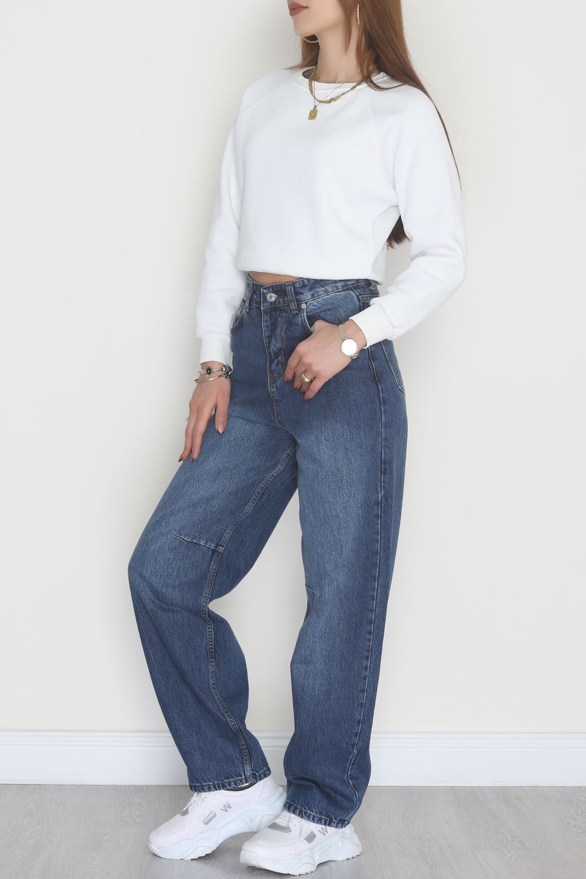 Bel Tokalı Baggy Kot Pantolon Mavi - 42472.1606.