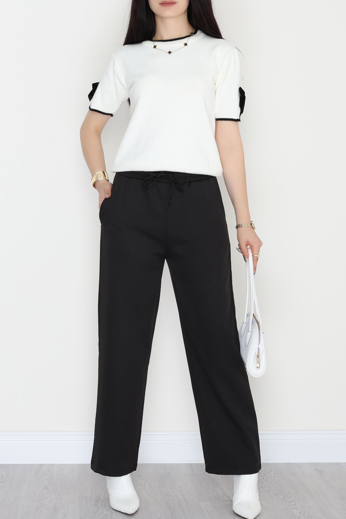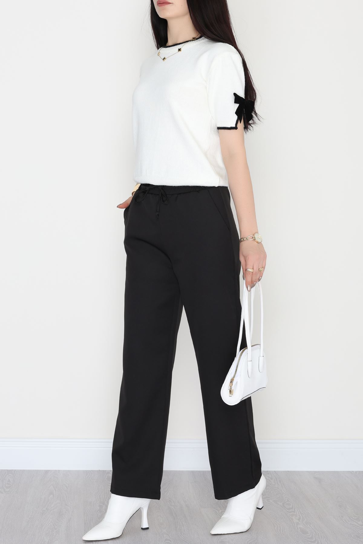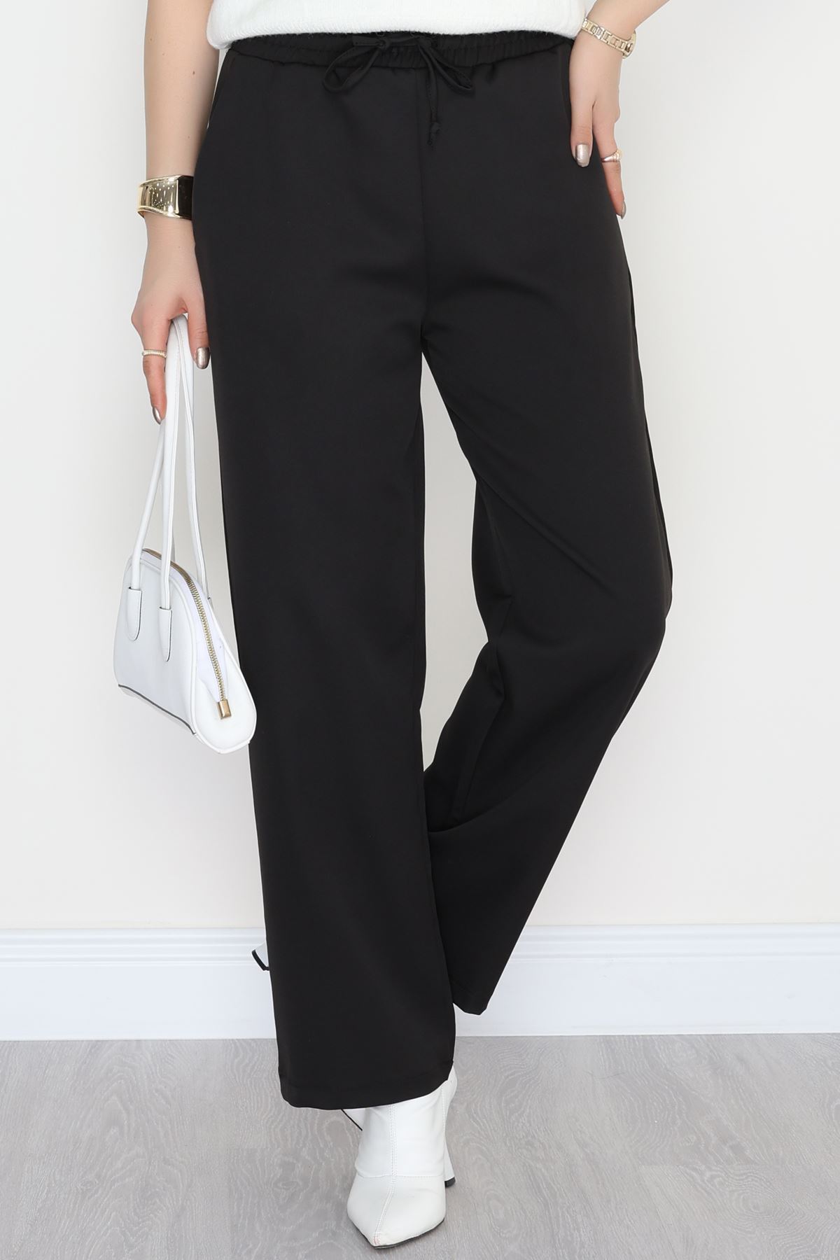 Beli Lastikli Dabıl Palazzo Pantolon Siyah - 90714.1837.