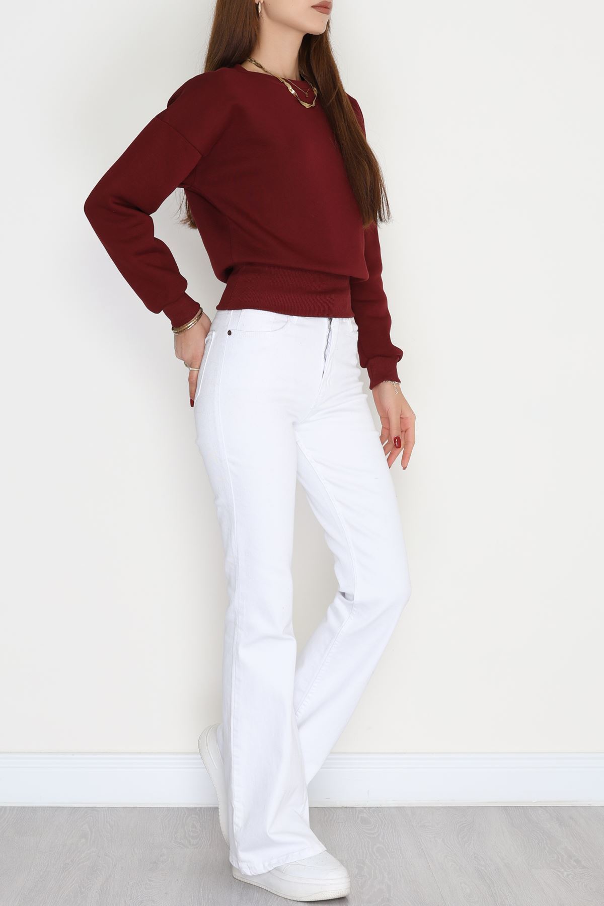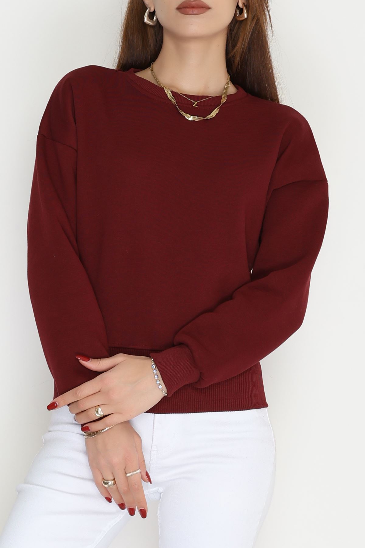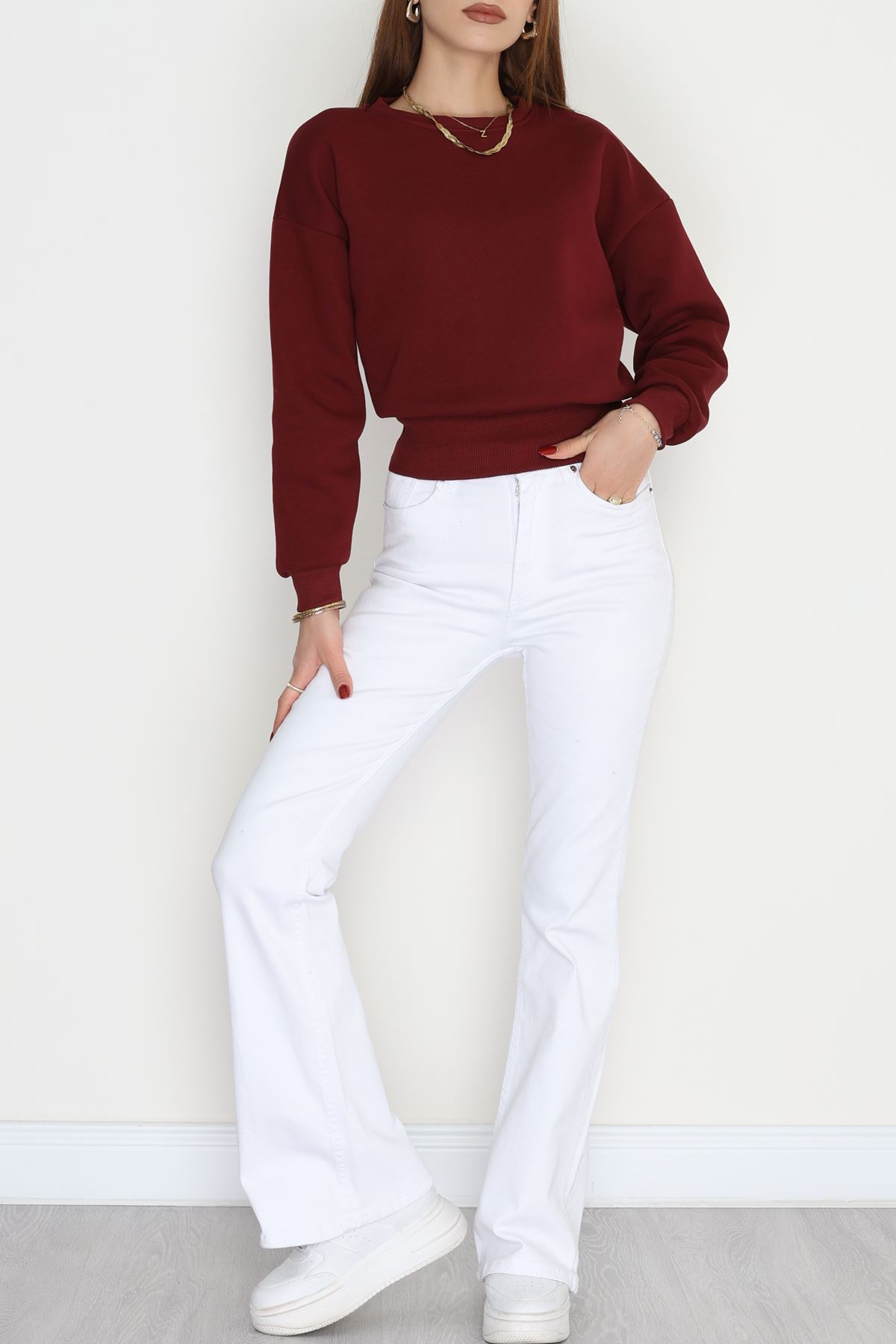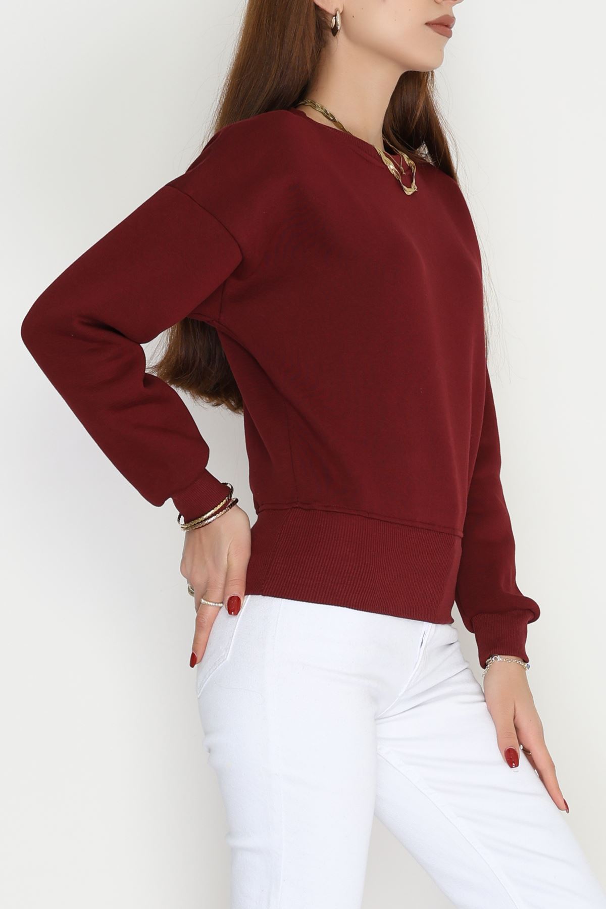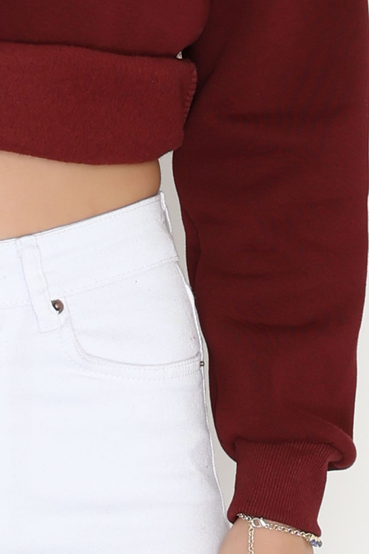 Bisiklet Yaka 3 İplik Crop Sweat Bordo - 20968.1878.