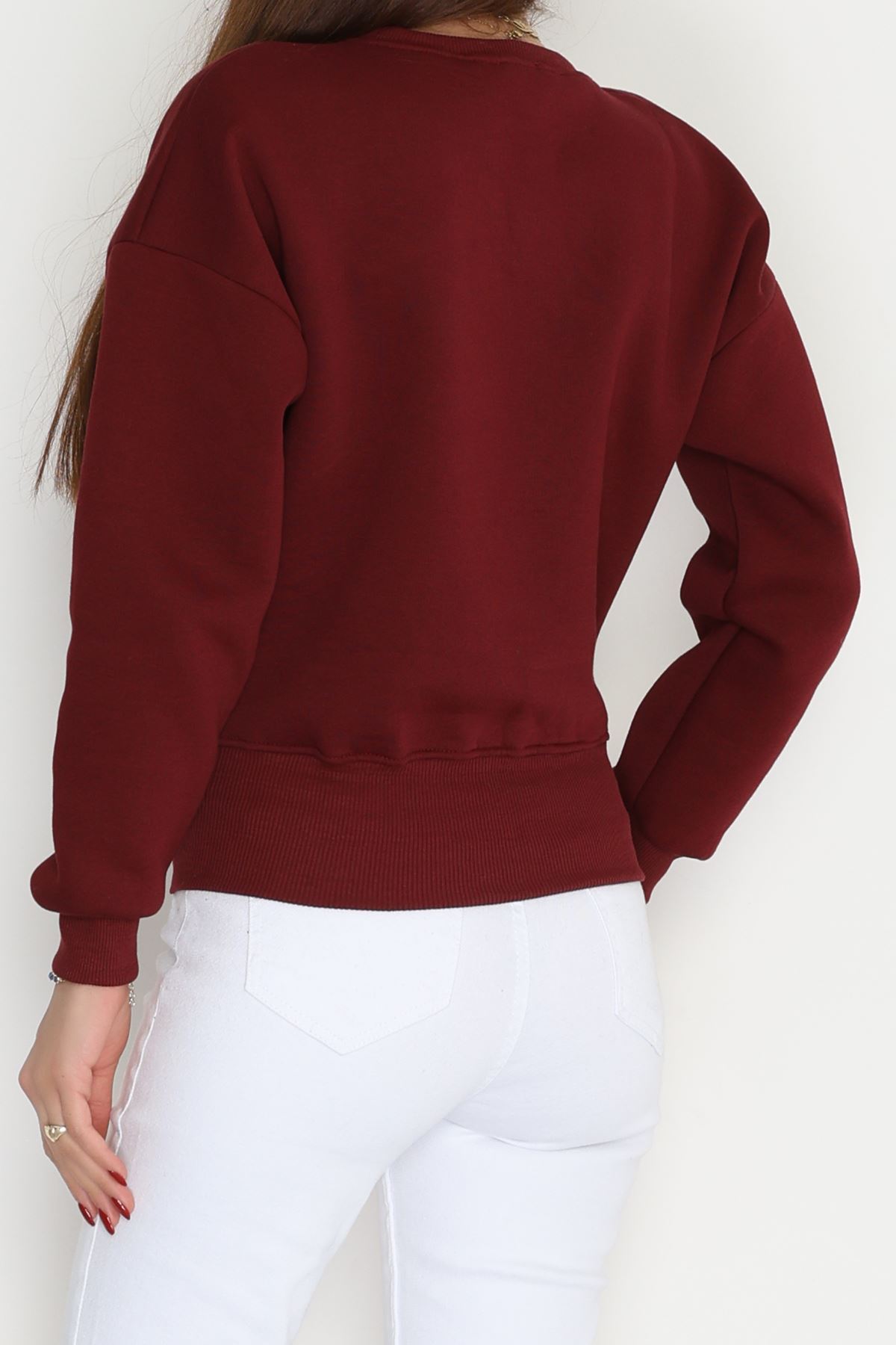 2 İplik Baskılı Sweatshirt Bordo - 31301.1878.