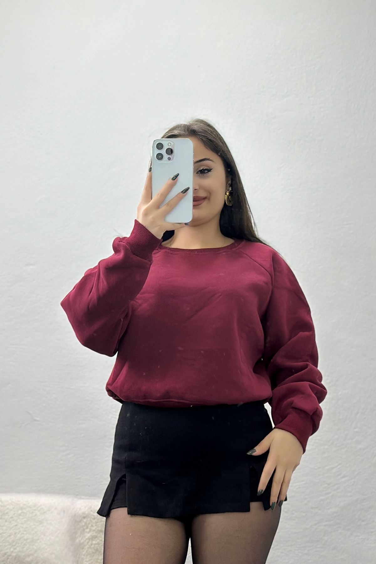 Bisiklet Yaka 3 İplik Sweat Bordo - 20958.1878.
