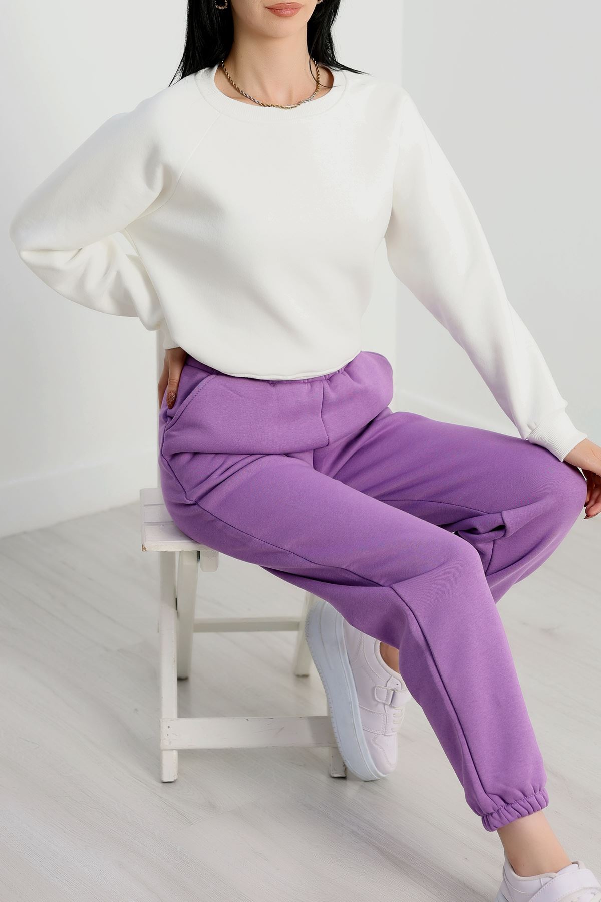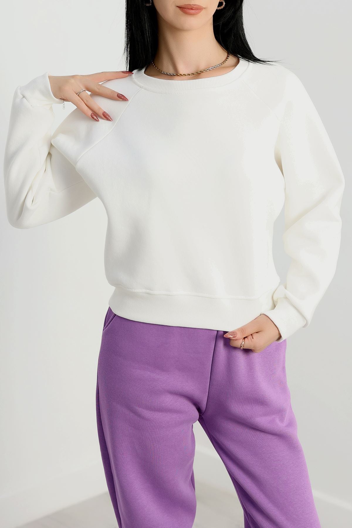 Bisiklet Yaka 3 İplik Sweat Ekru - 20958.1878.