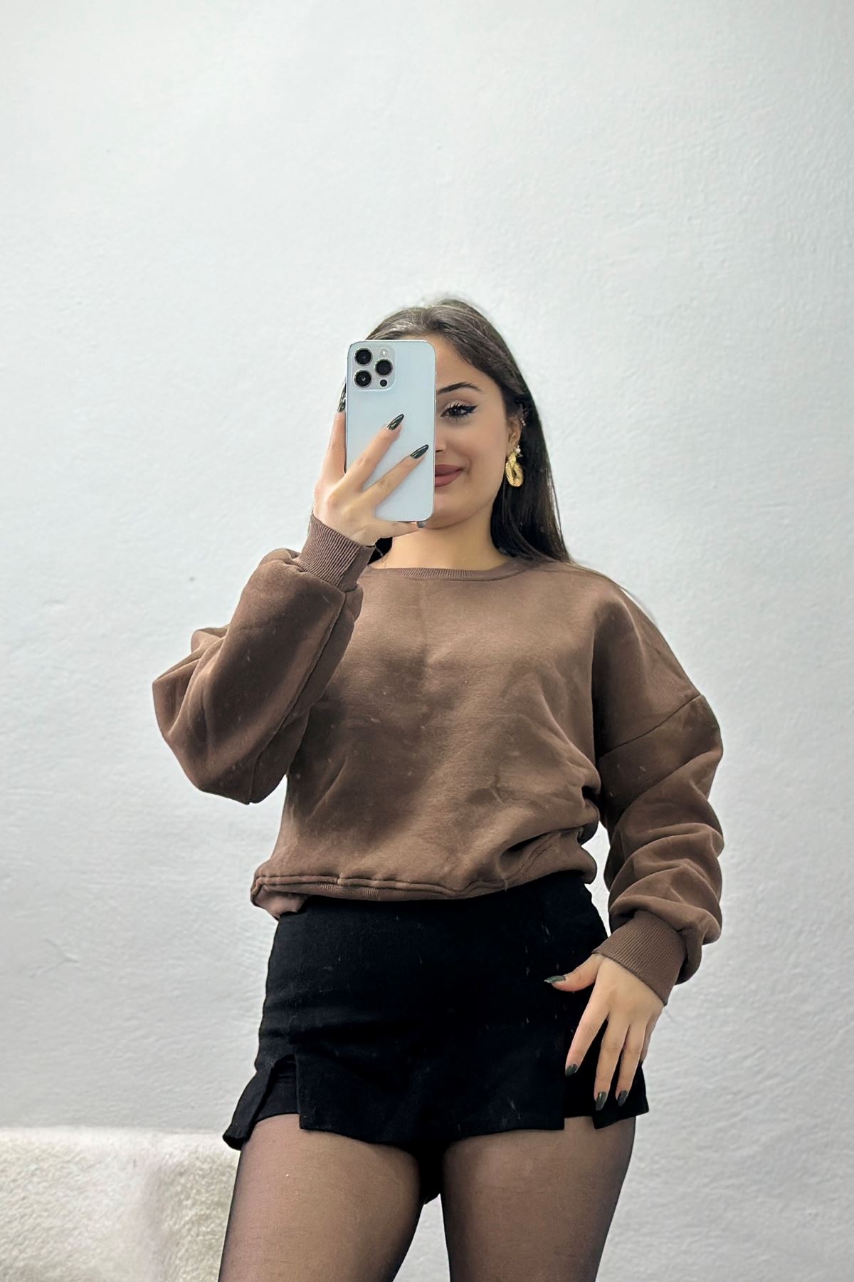 Bisiklet Yaka 3 İplik Sweat Kahve - 20958.1878.