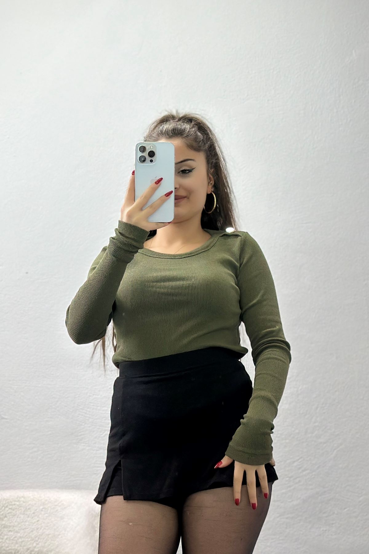 Bisiklet Yaka Omuz Düğmeli Kaşkorse Body Haki - 70790.599.