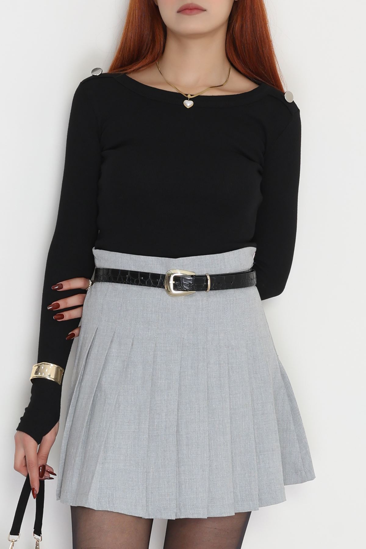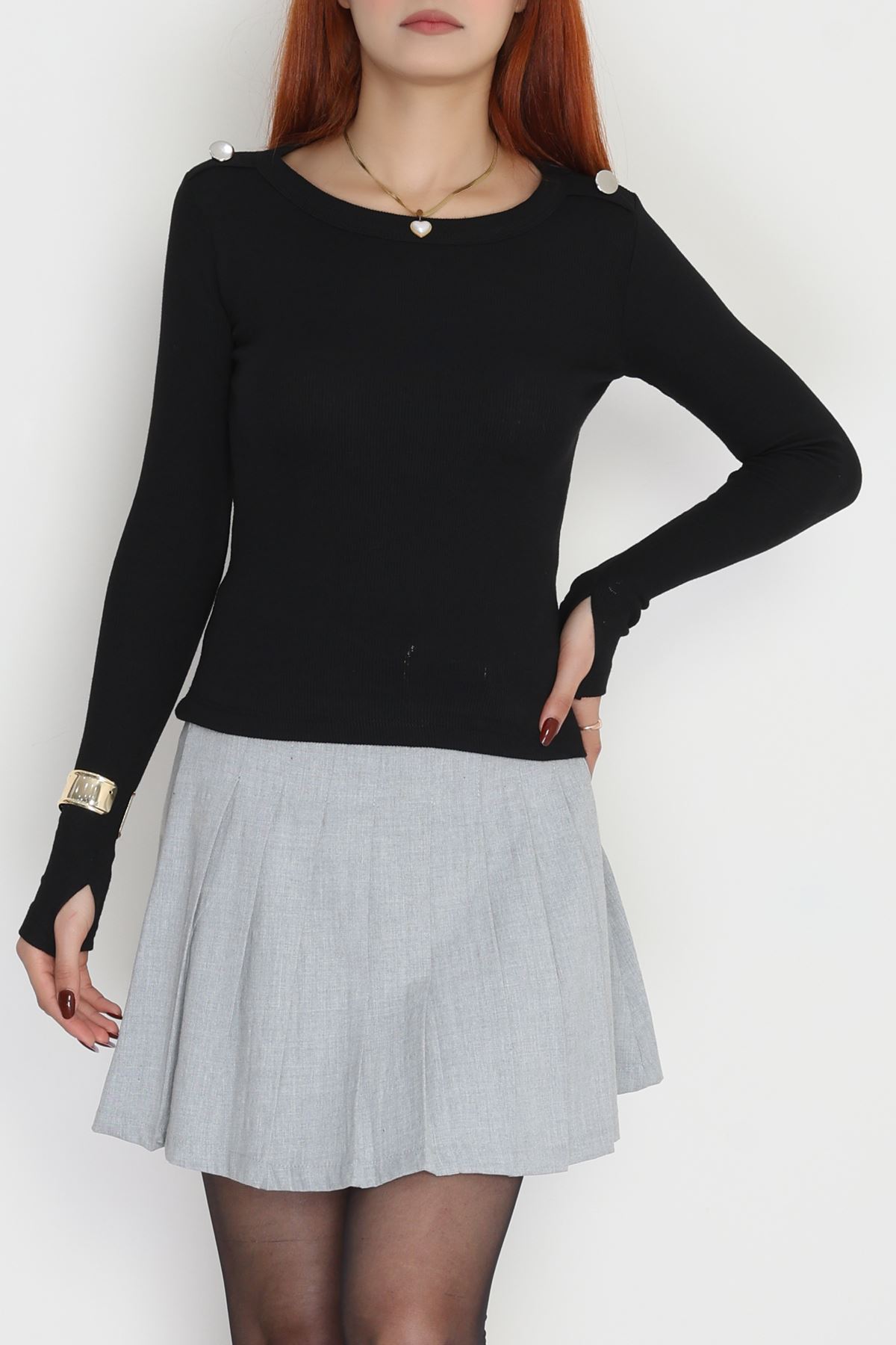 Bisiklet Yaka Omuz Düğmeli Kaşkorse Body Siyah - 70790.599.