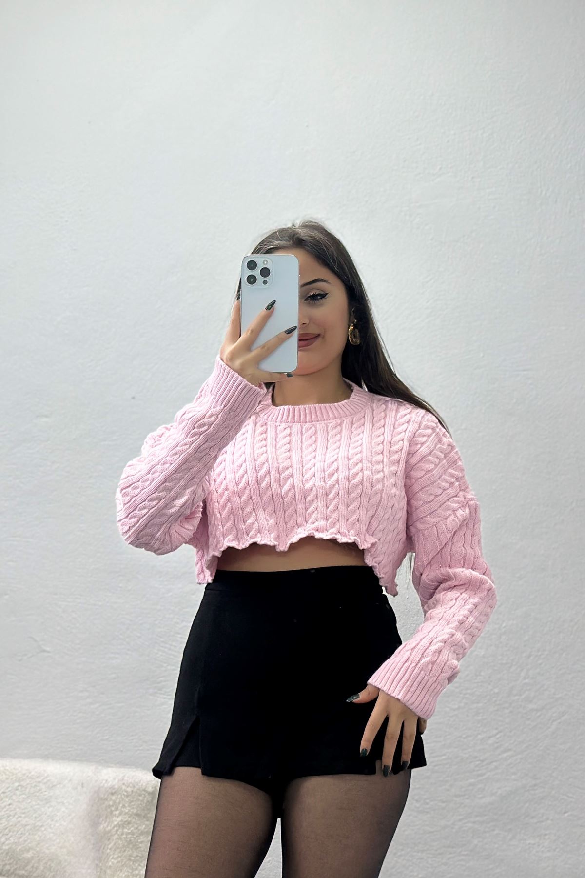 Bisiklet Yaka Örgü Desen Triko Pembe - 70800.1765.