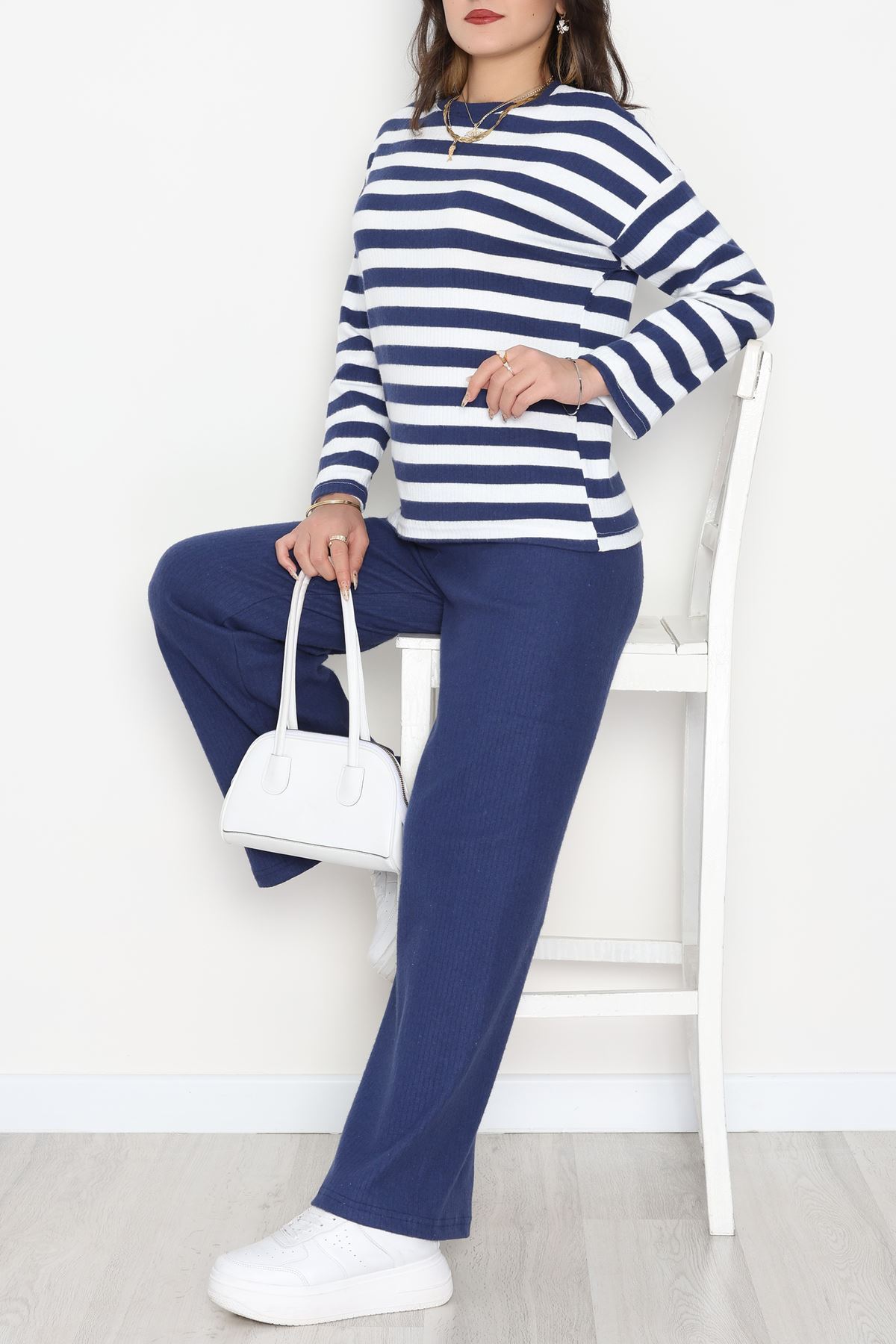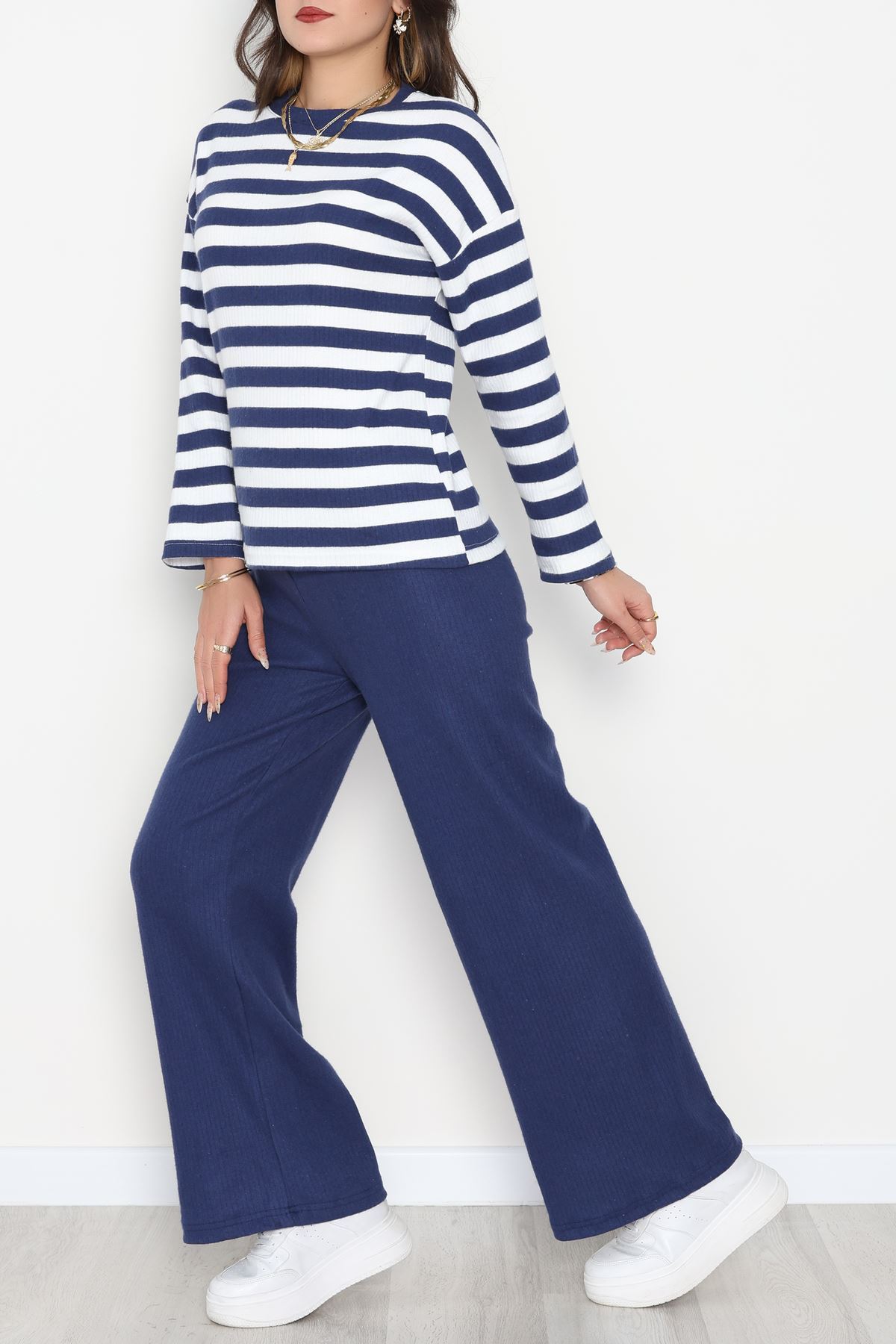 Çizgili Triko Takım Lacivert - 2295.1765.