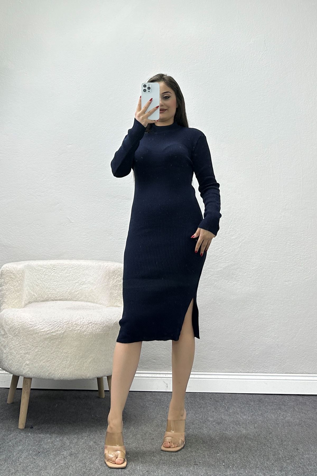 Bisiklet Yaka Triko Elbise Lacivert - 4025.2043.
