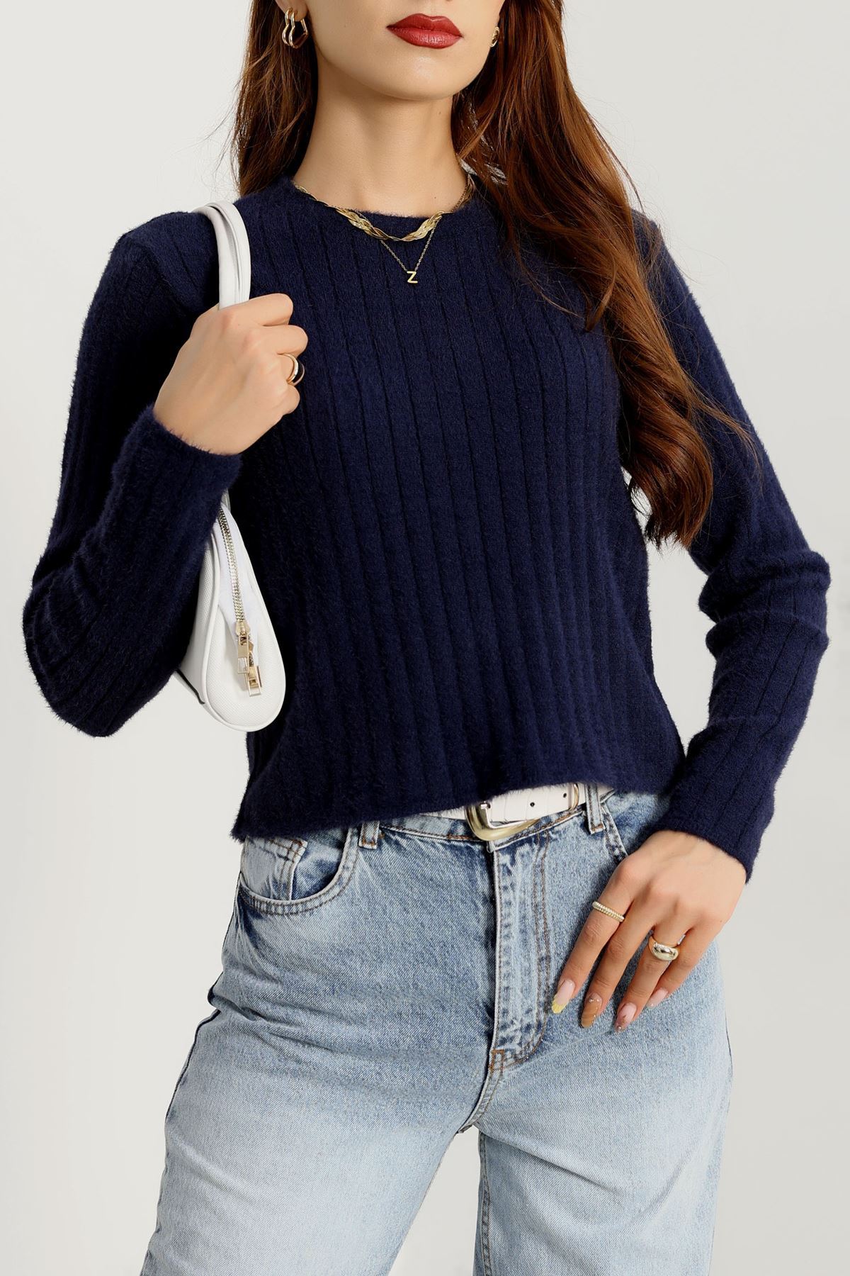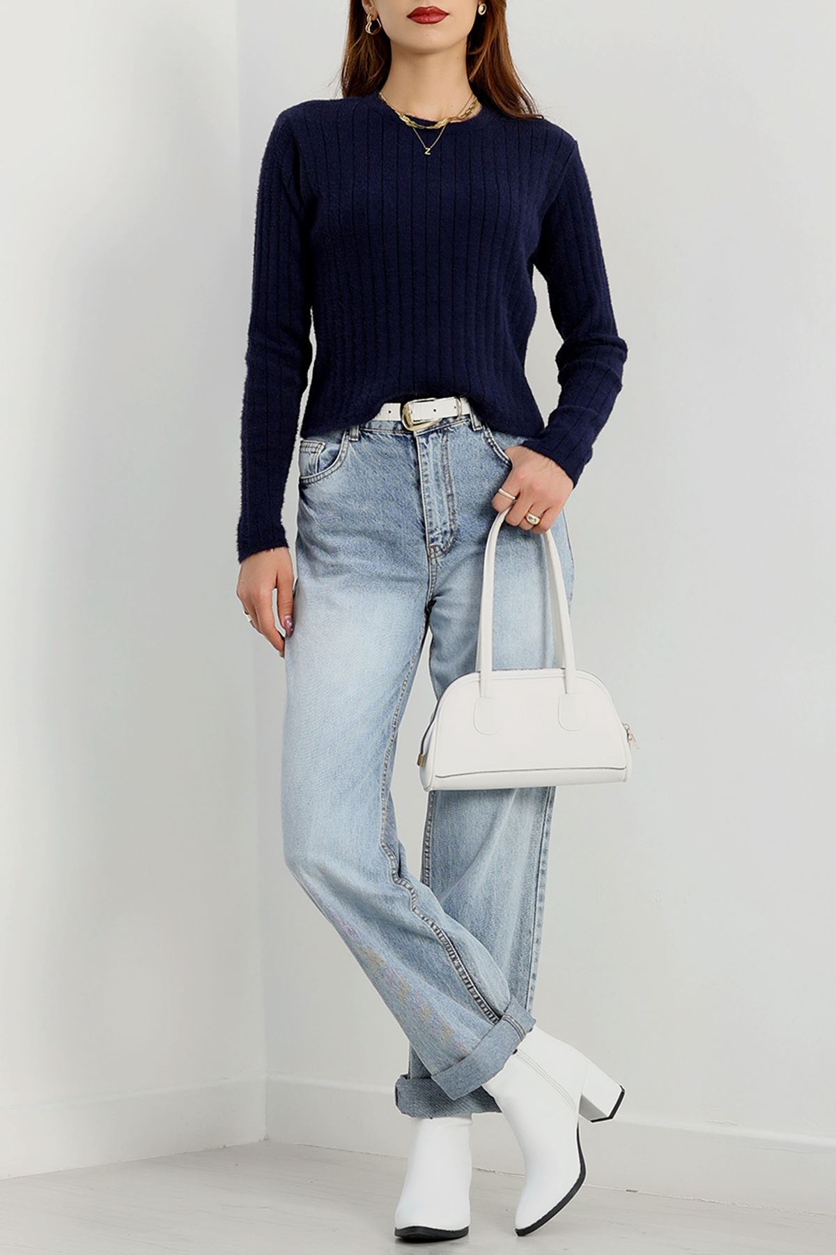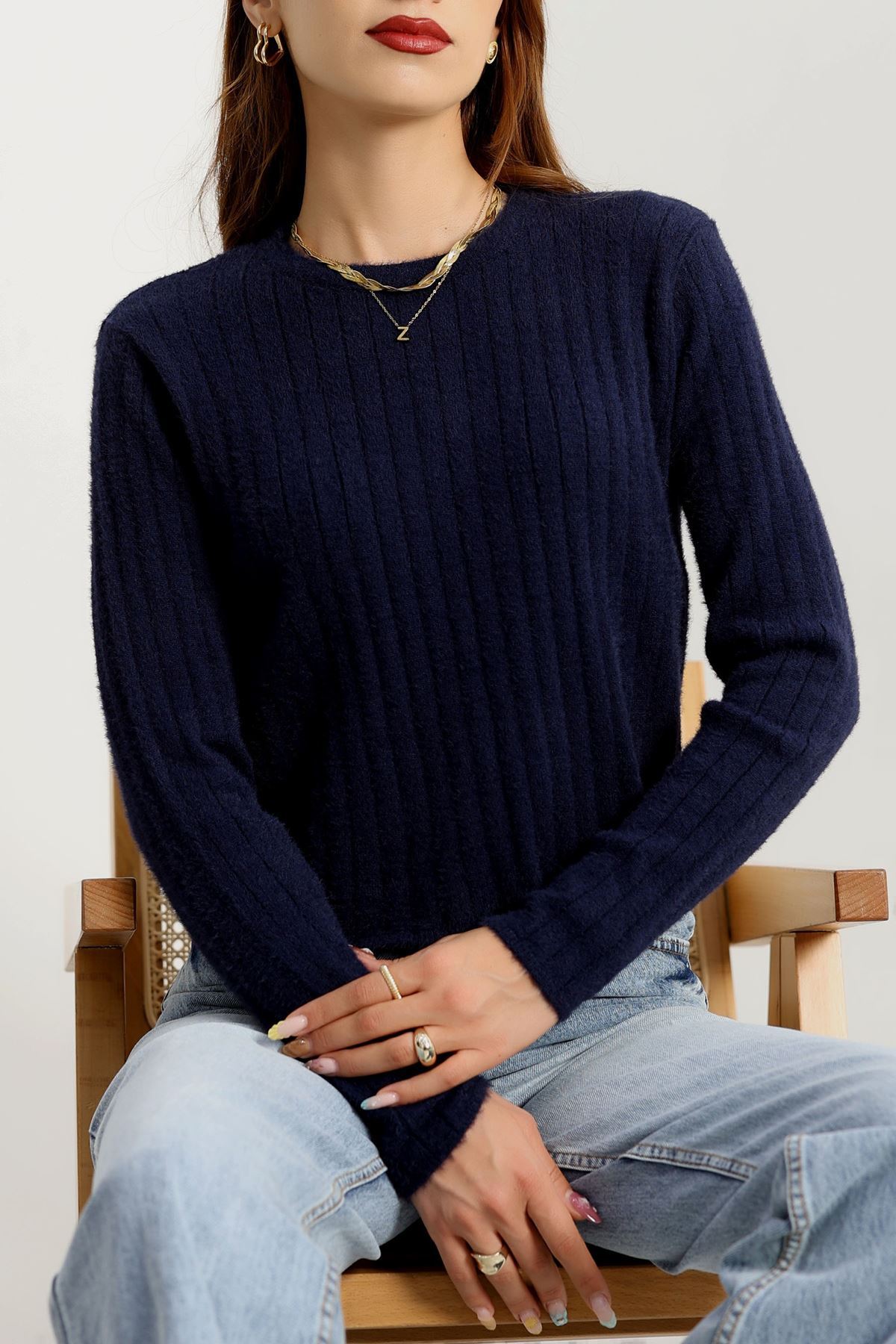 Bisiklet Yaka Triko Lacivert - 2412.1765.
