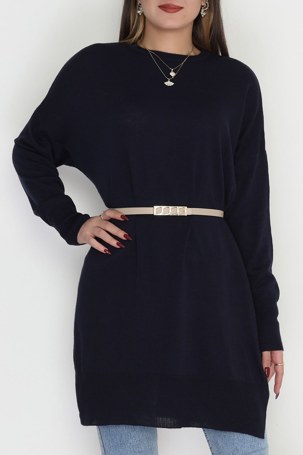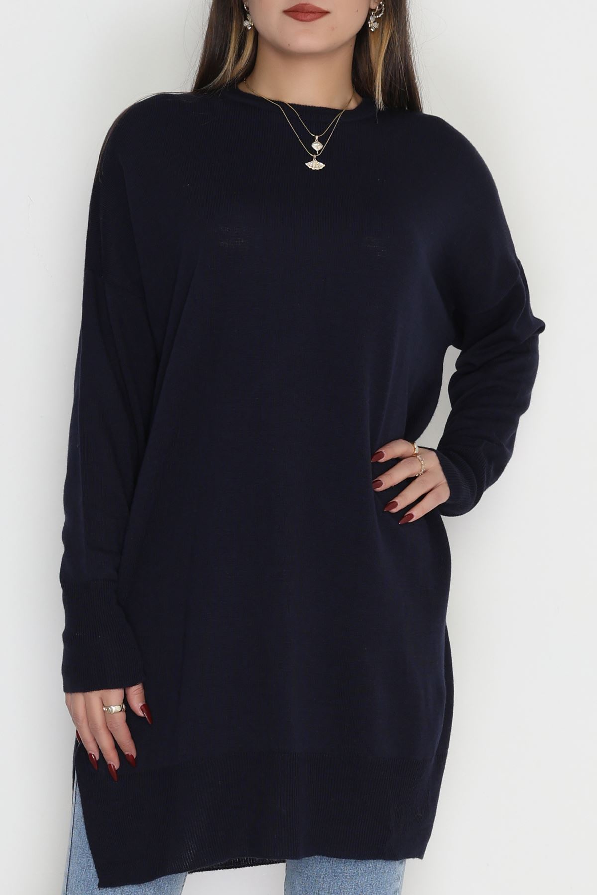 Bisiklet Yaka Triko Lacivert - 42735.1766.