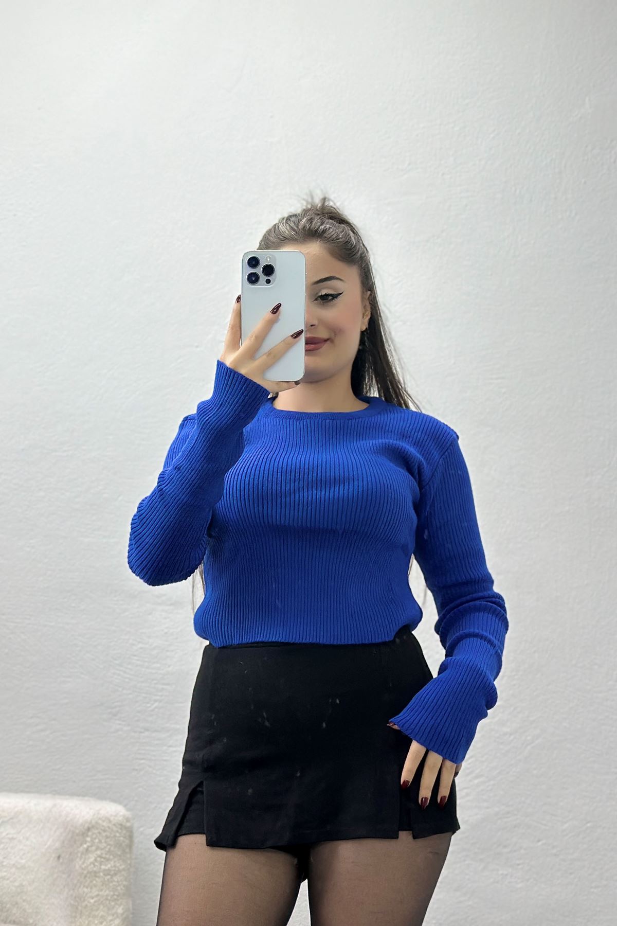 Bisiklet Yaka Triko Saks - 4003.2043.