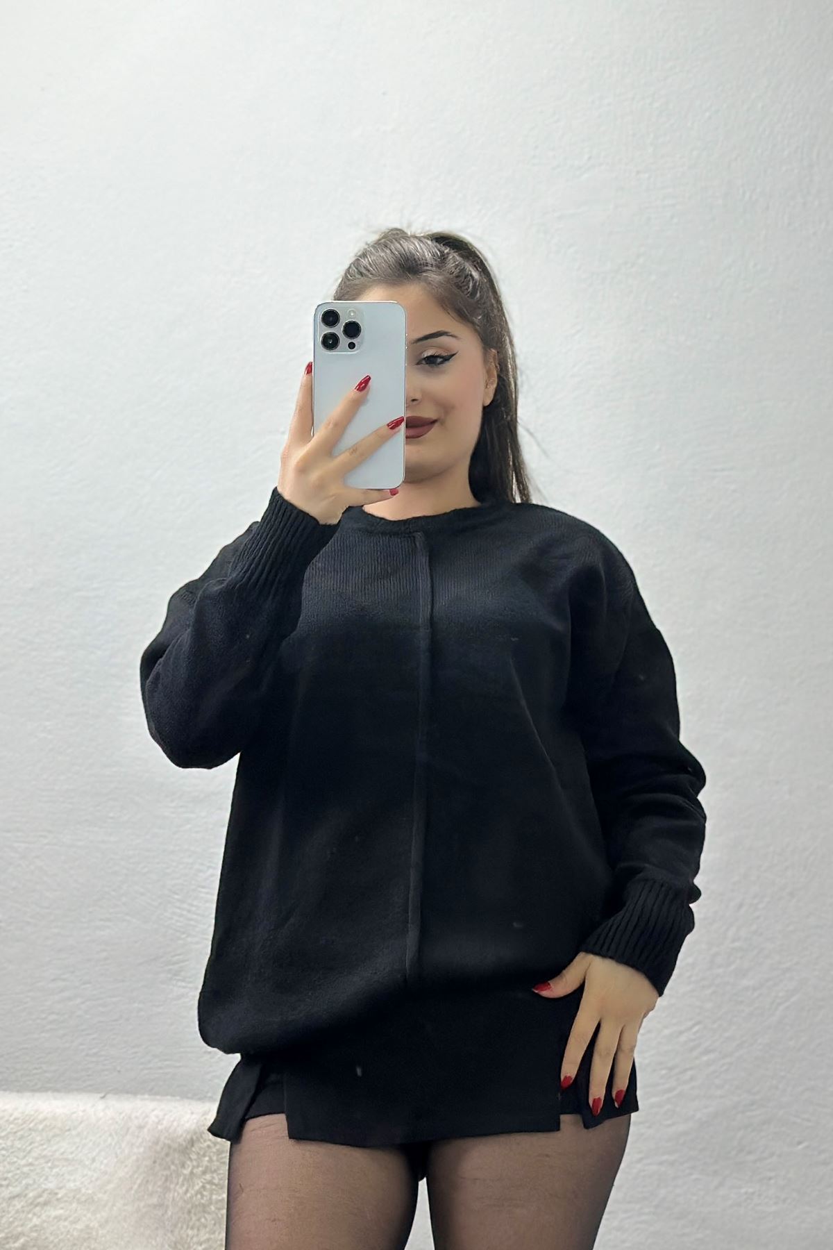 Bisiklet Yaka Triko Siyah - 2345.1765.