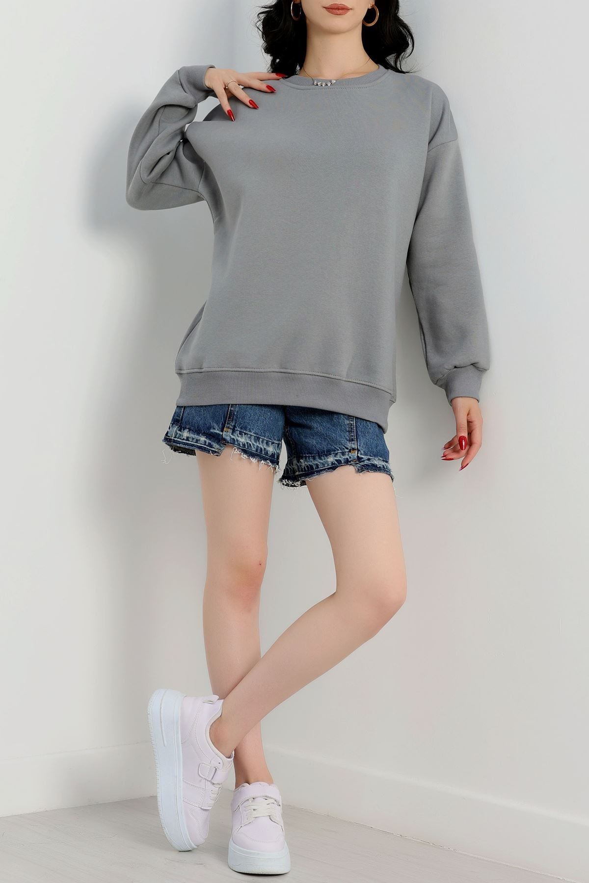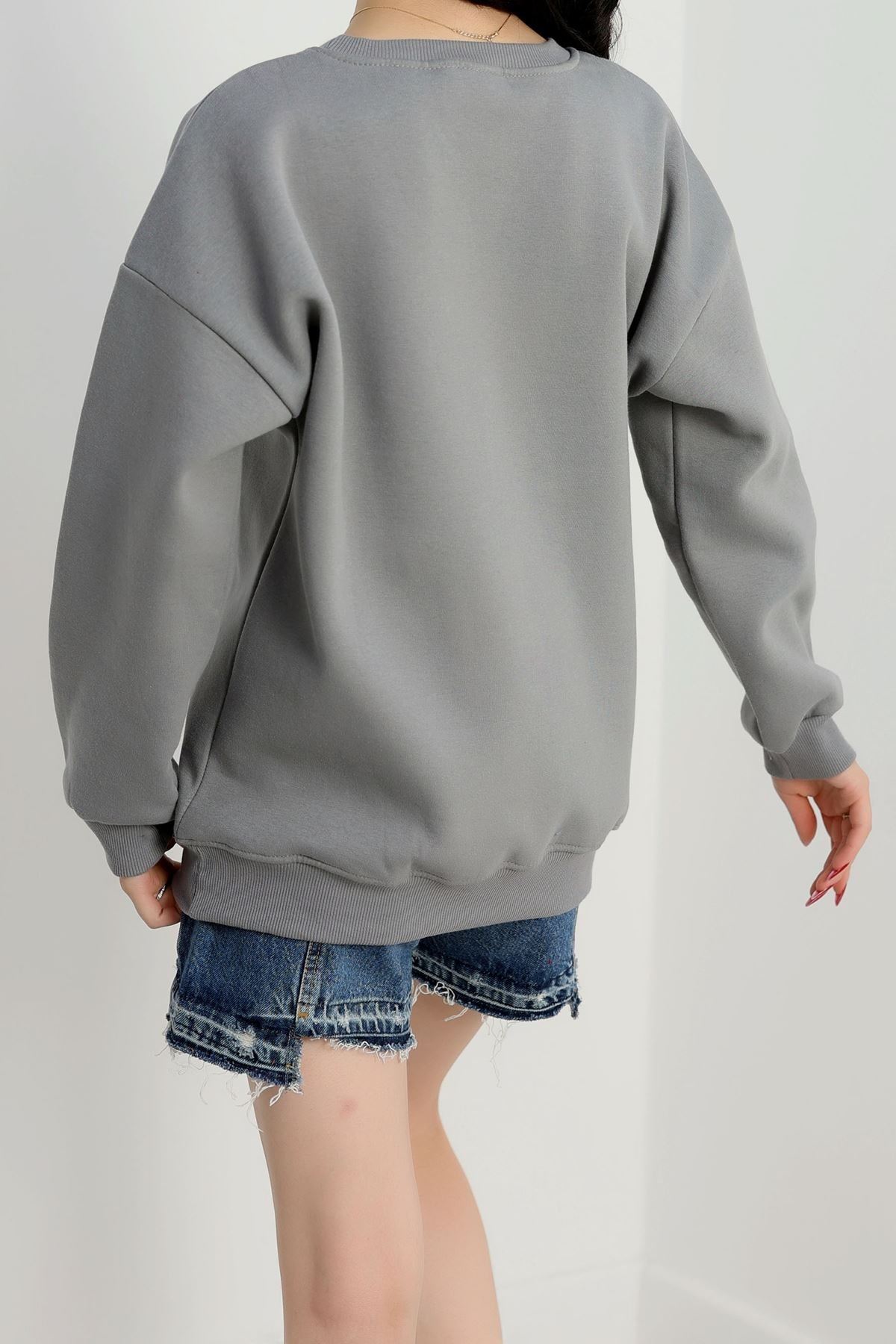 Bisiklet Yaka Üç İplik Sweat Antrasit - 20138.1878.