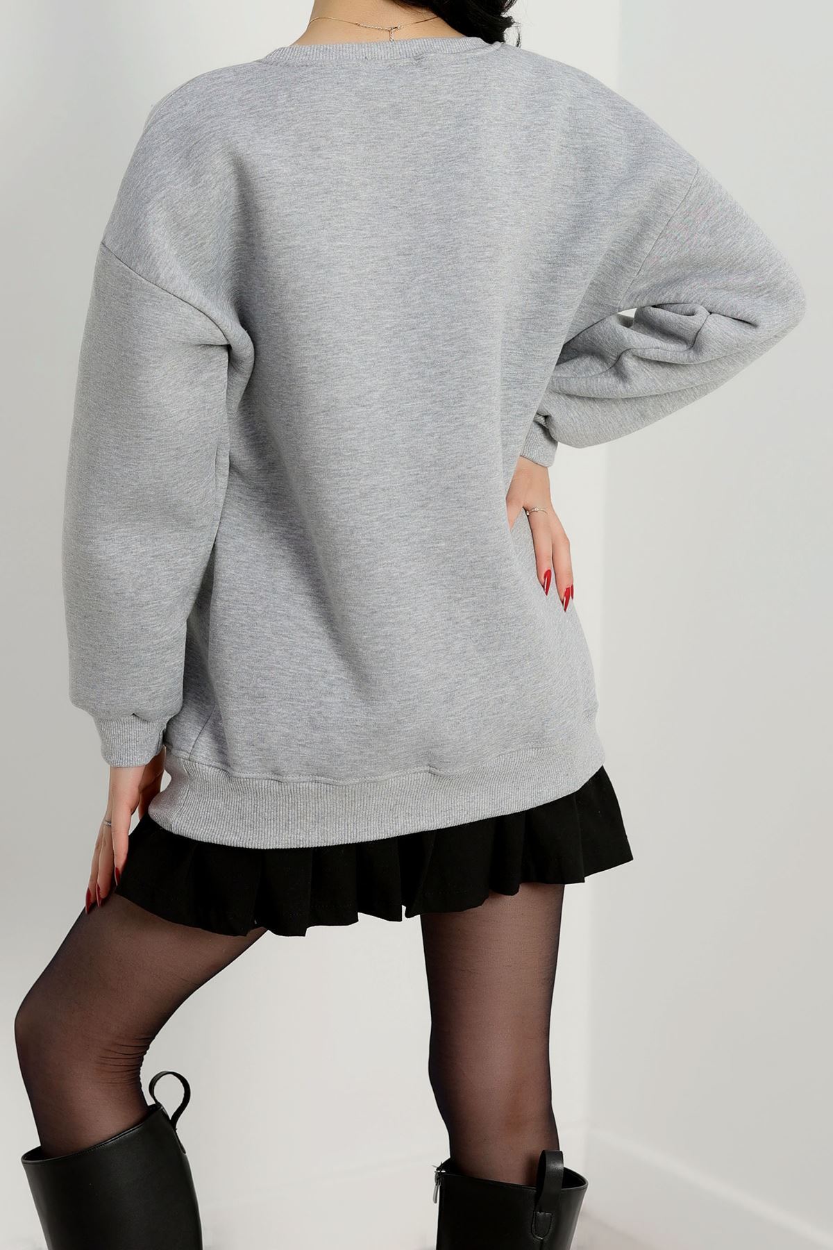 3 İplik Kompakt Oversize Sweat Gri - 42502.1878.
