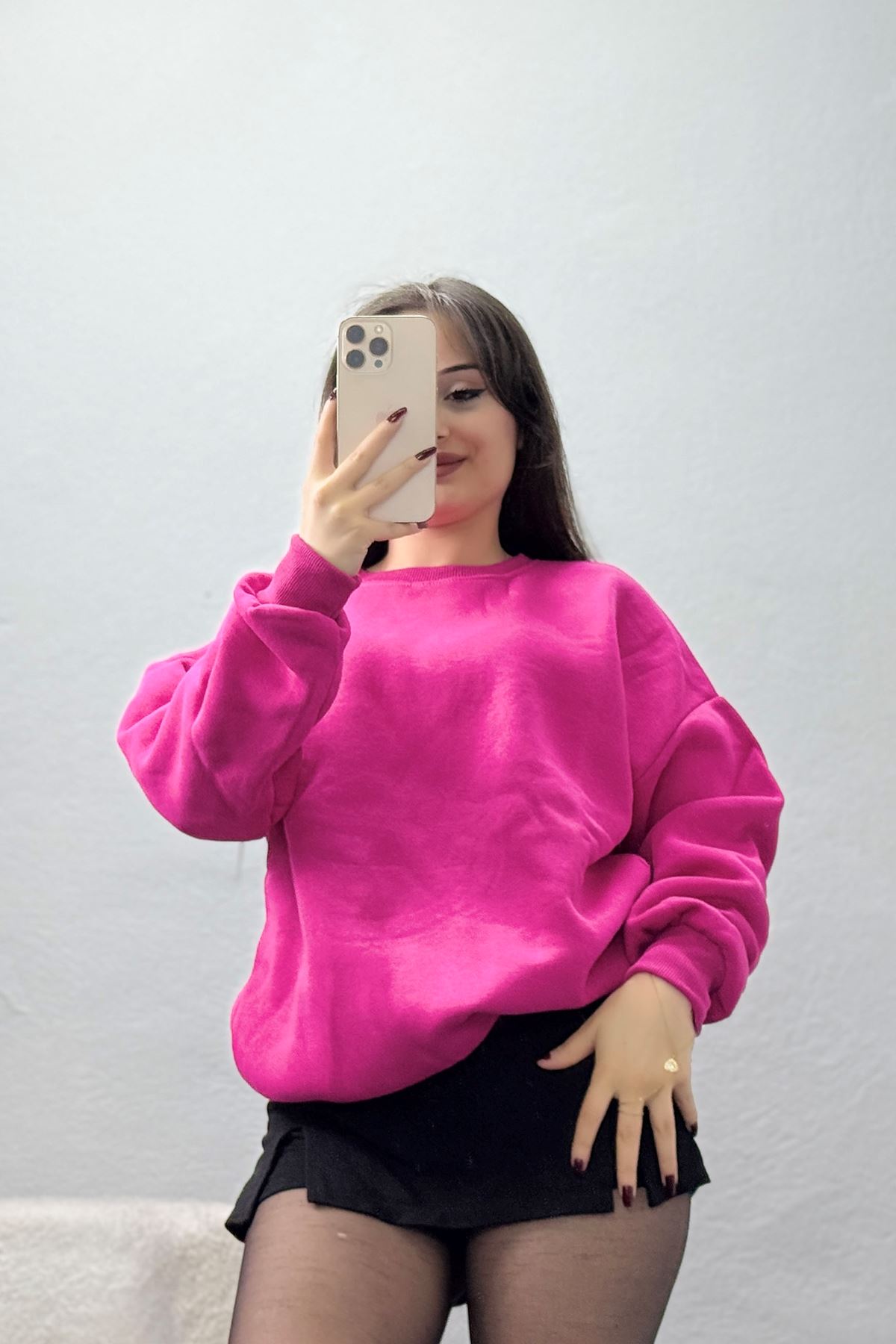 Bisiklet Yaka Üç İplik Sweat Koyupembe - 20138.1878.