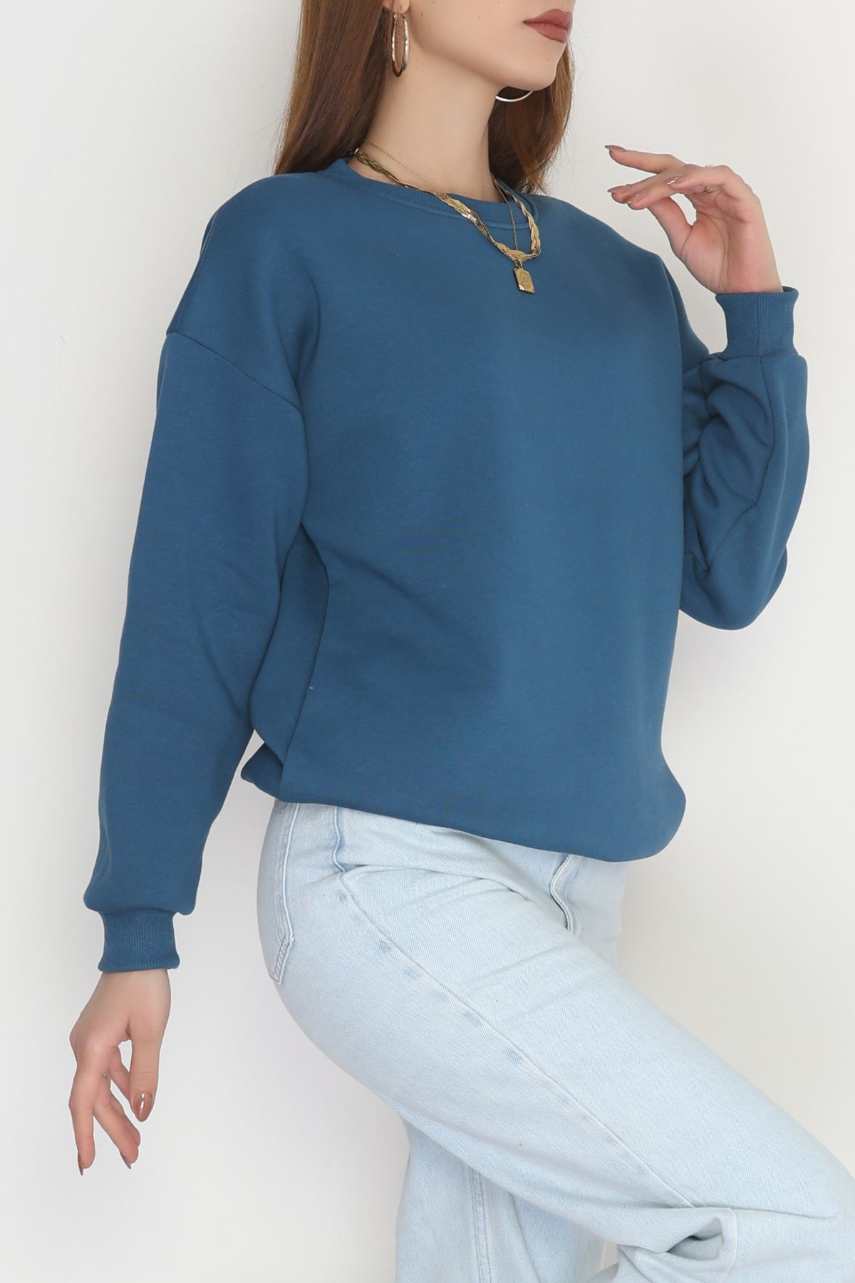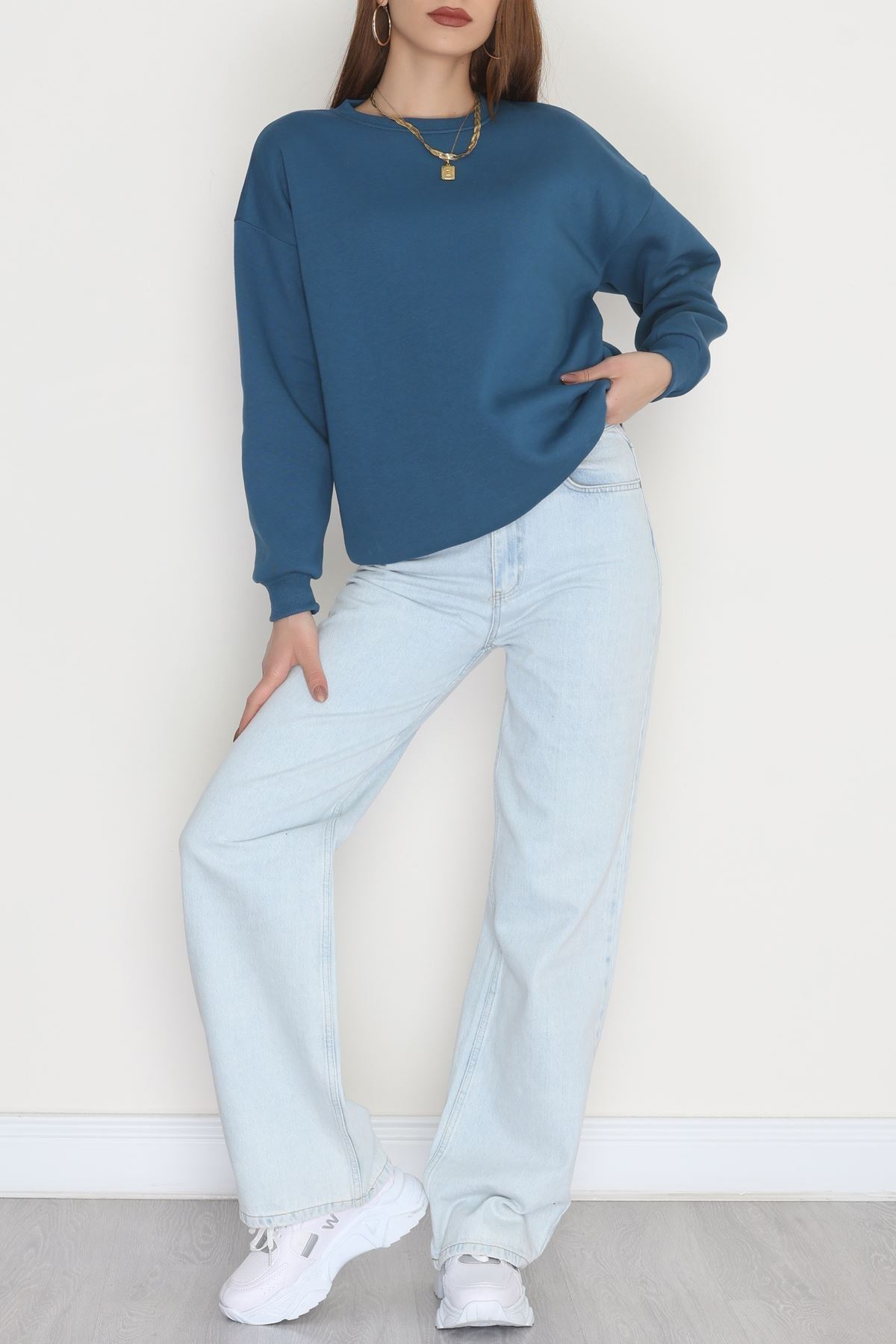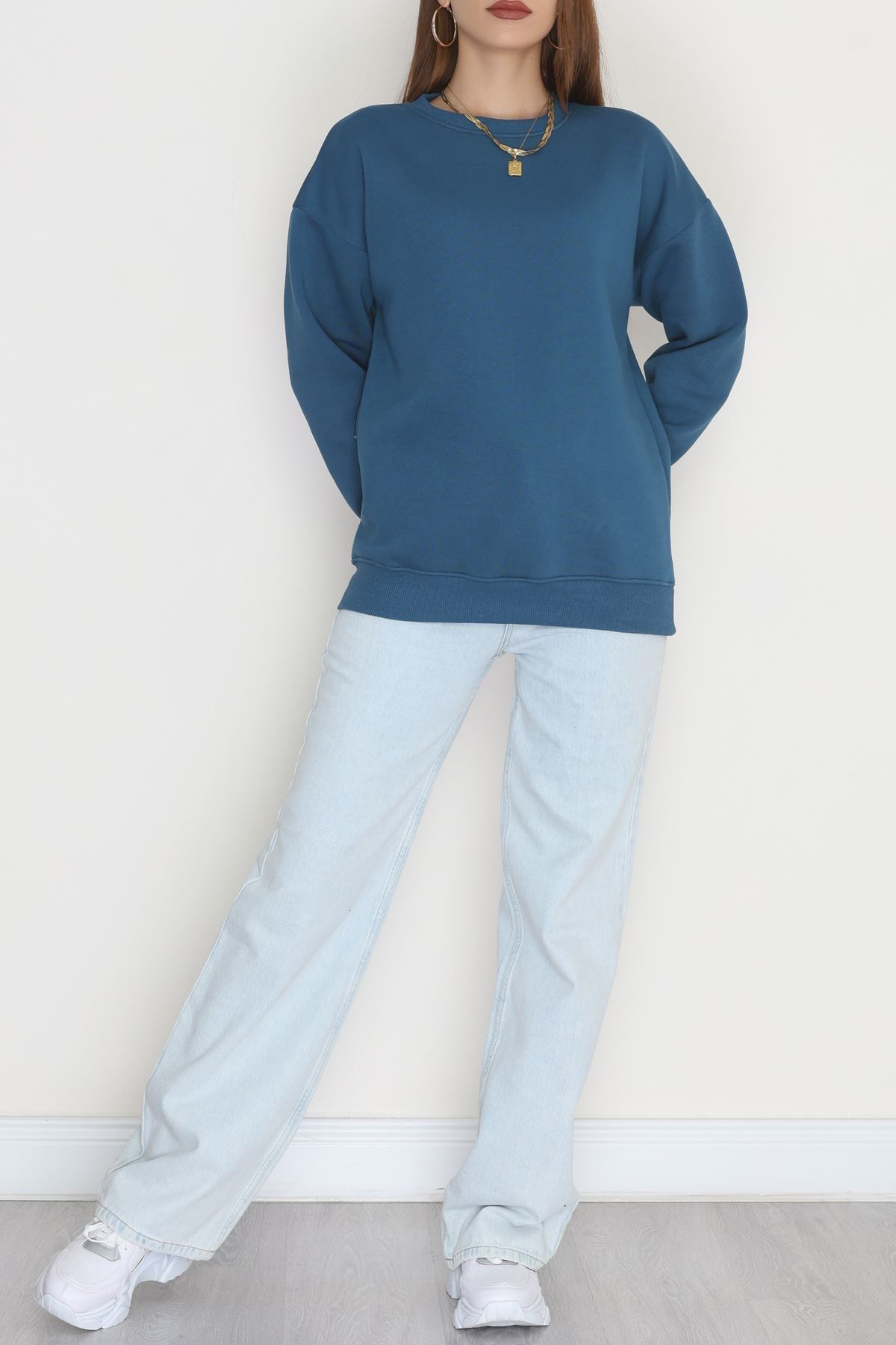 Bisiklet Yaka Üç İplik Sweat Petrol - 20138.1878.