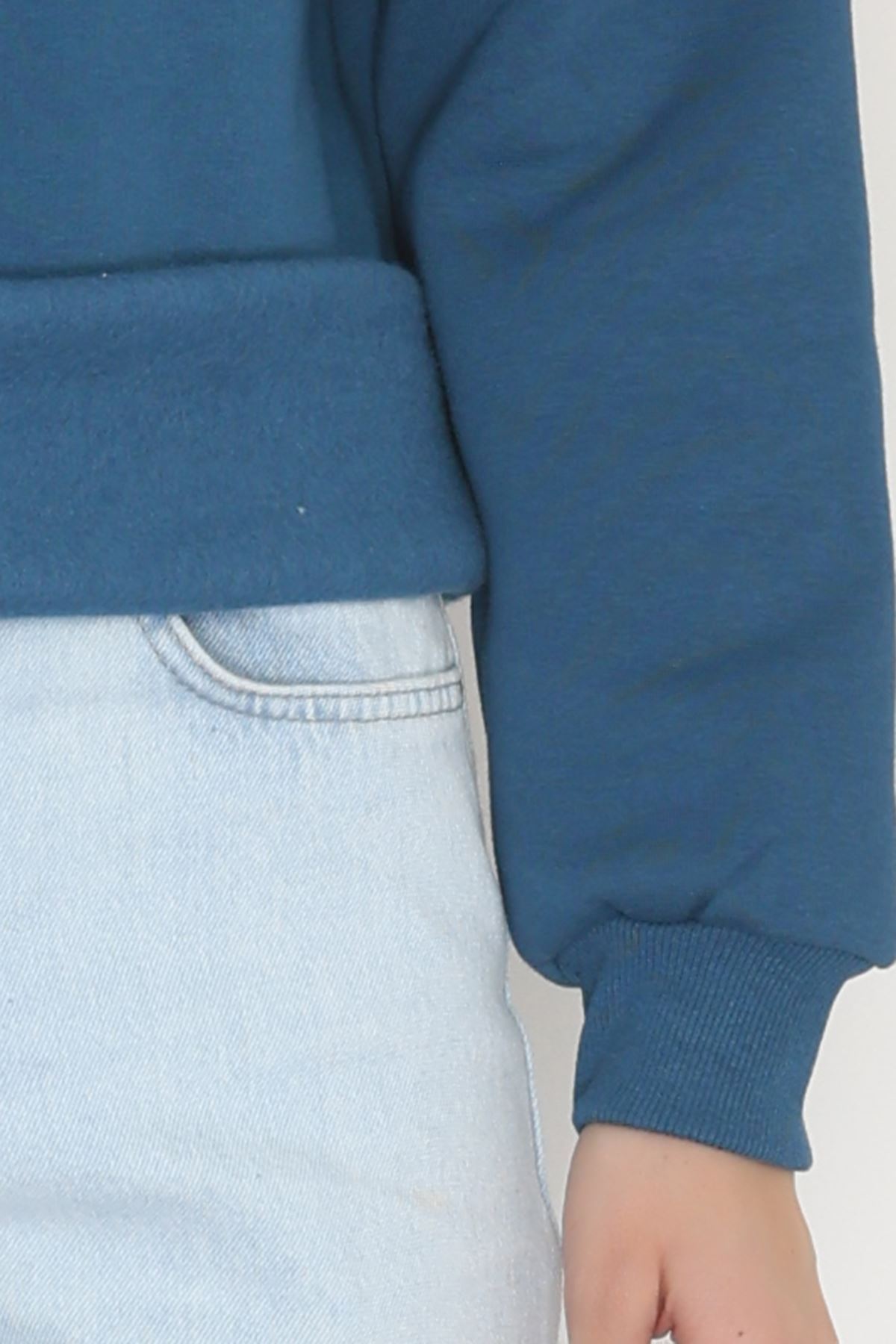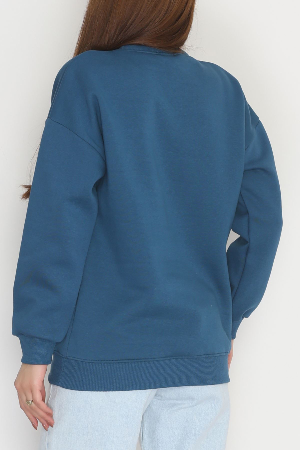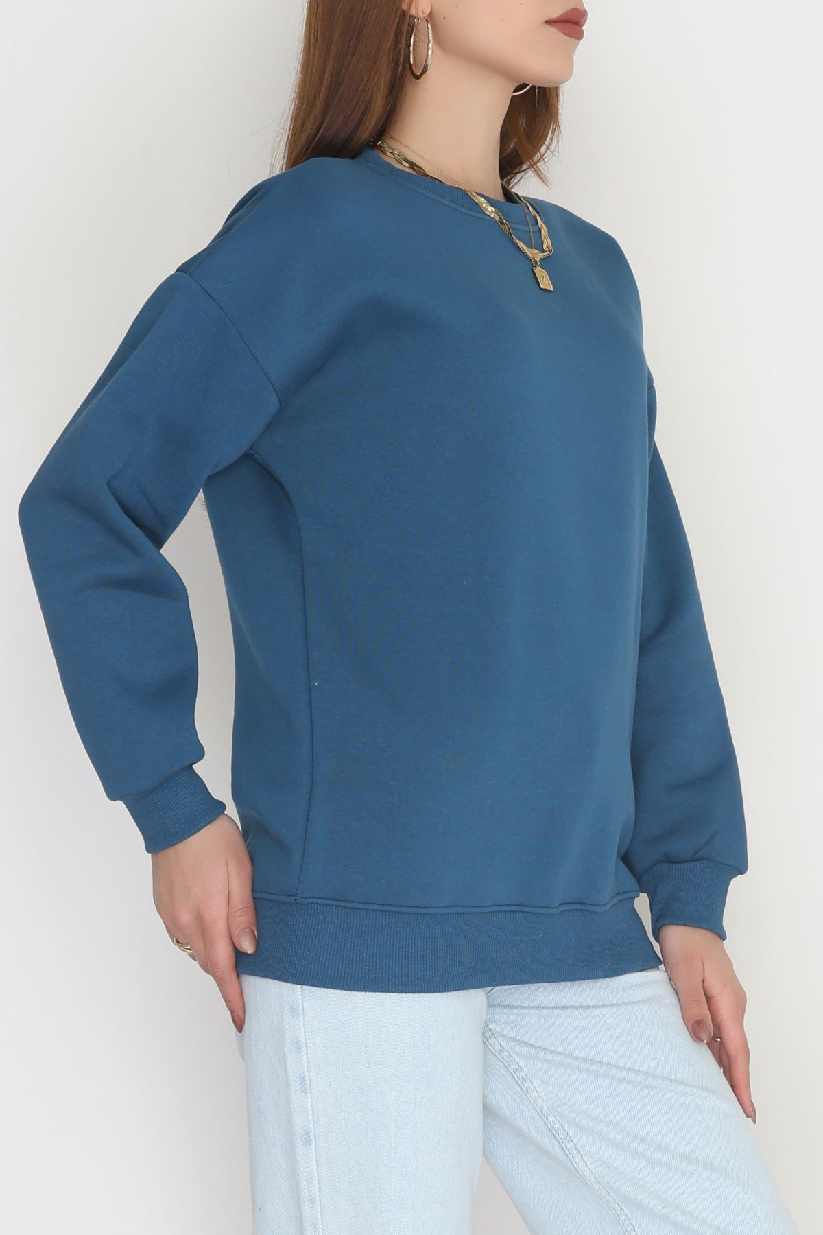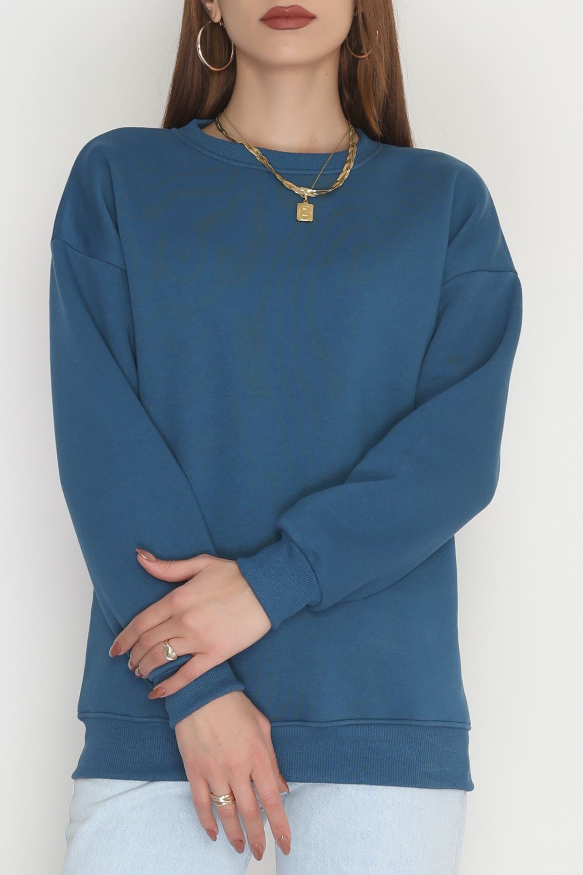 Bisiklet Yaka Üç İplik Sweat Petrol - 20138.1878.
