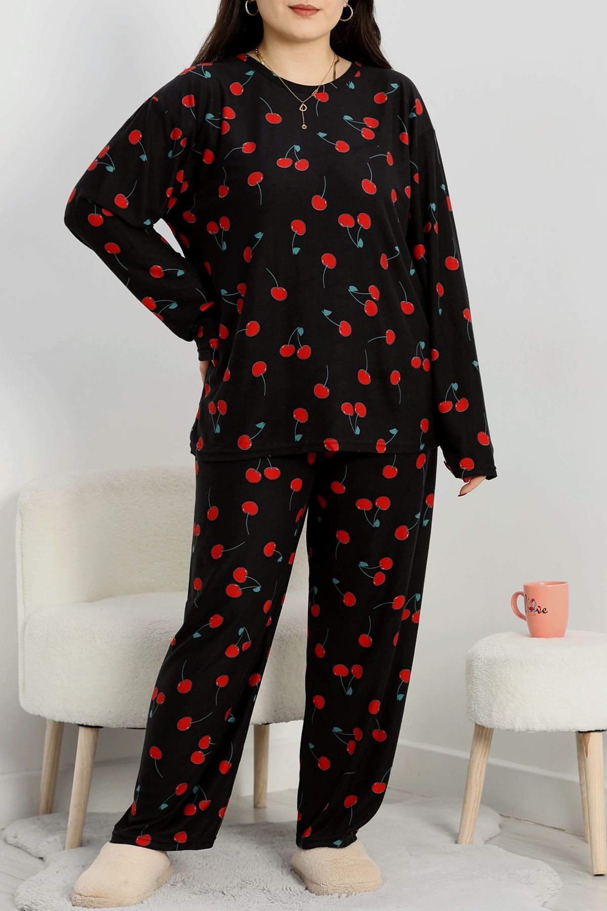 Süet Büyük Beden Düğmeli Pijama Takımı Siyah - 51125.1950.