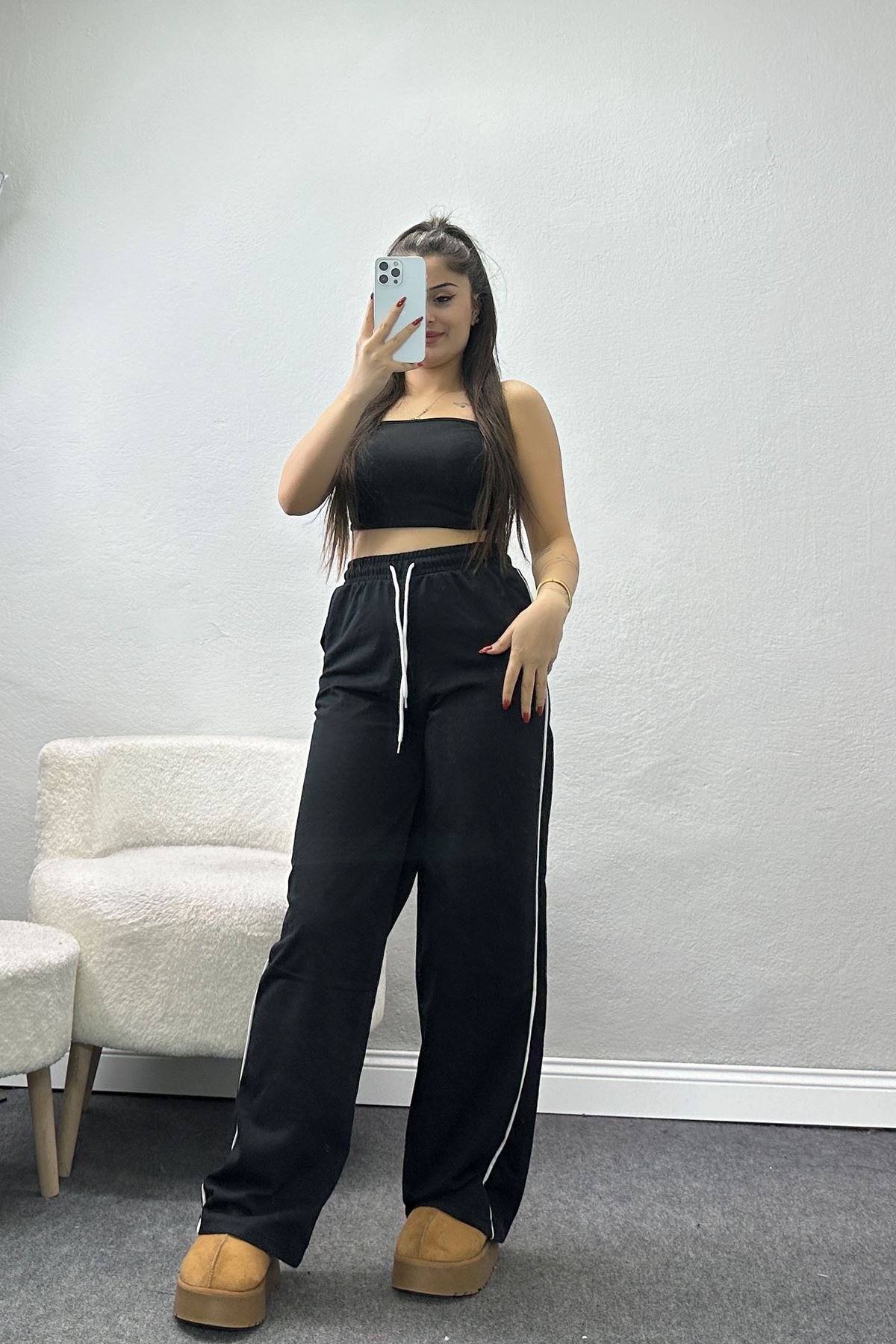 Yırtmaçlı Şeritli 2 İplik Eşofman Altı Siyah - 40022.1857.