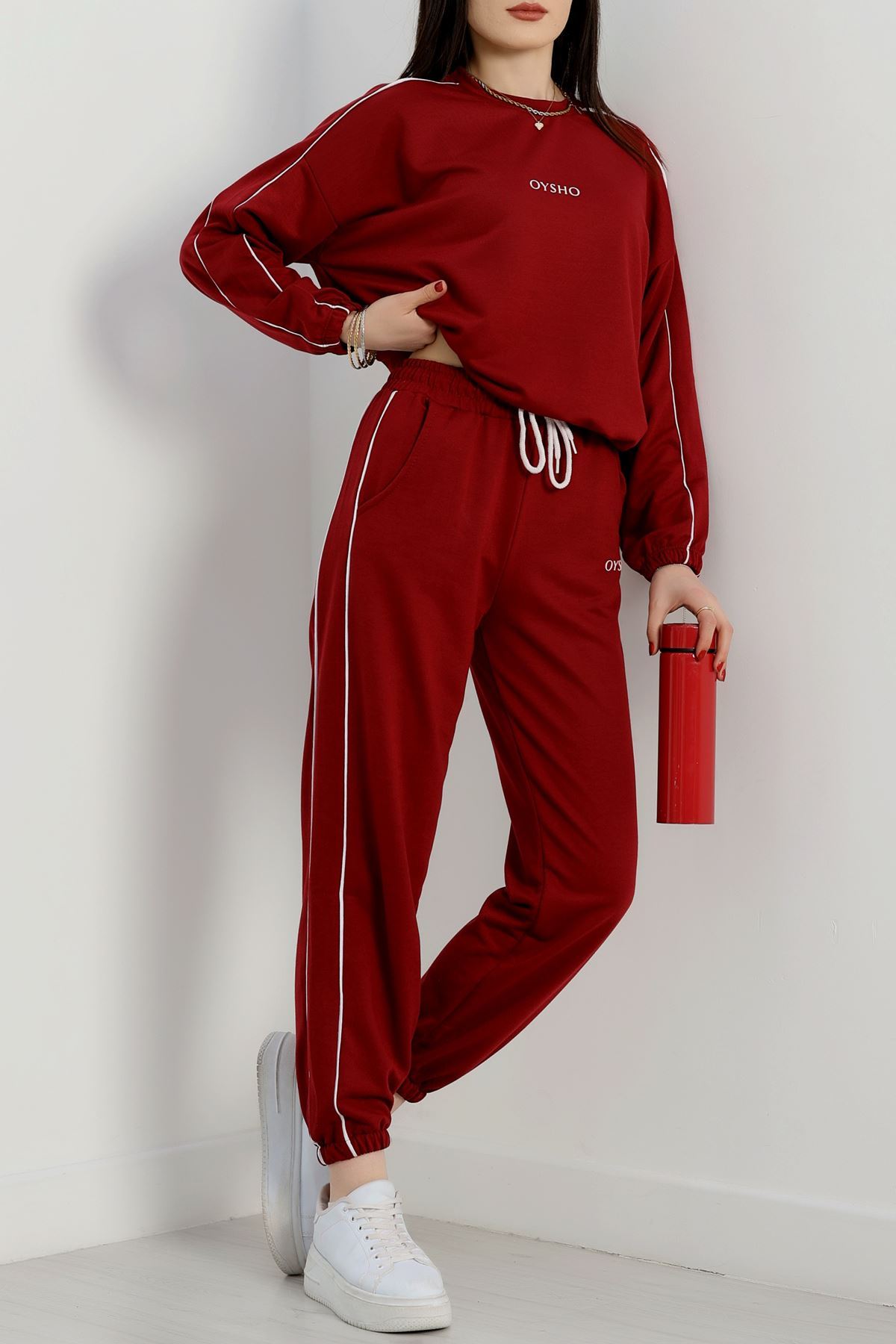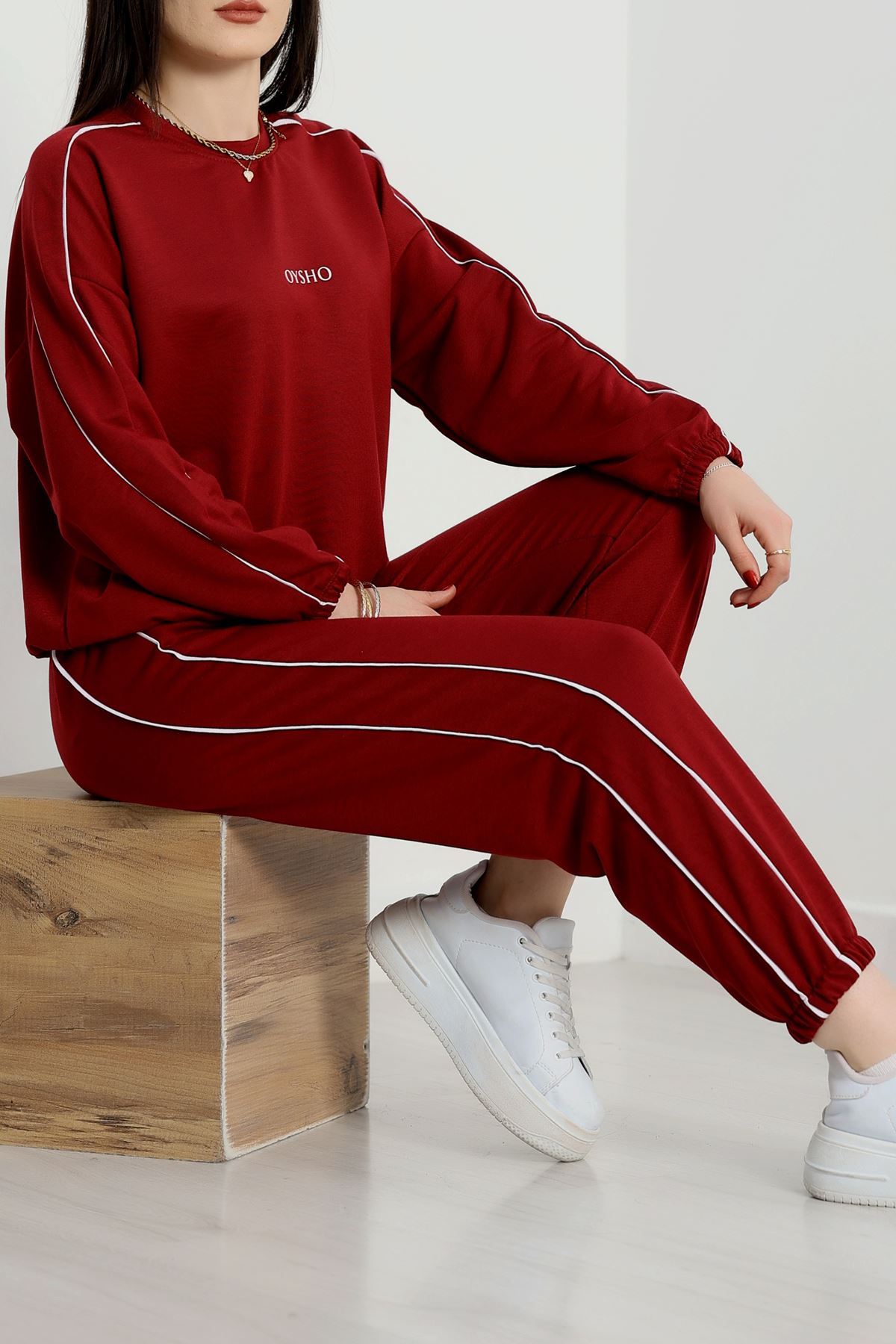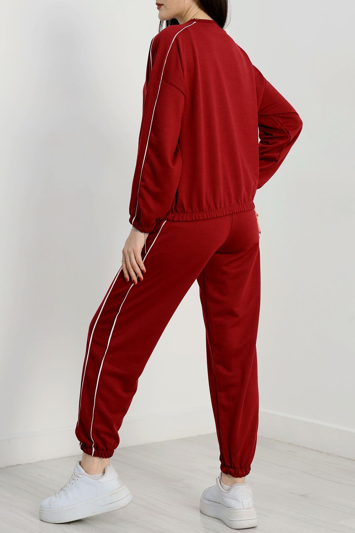 Biyeli 2 İplik Eşofman Takımı Bordoekru - 50744.1005.