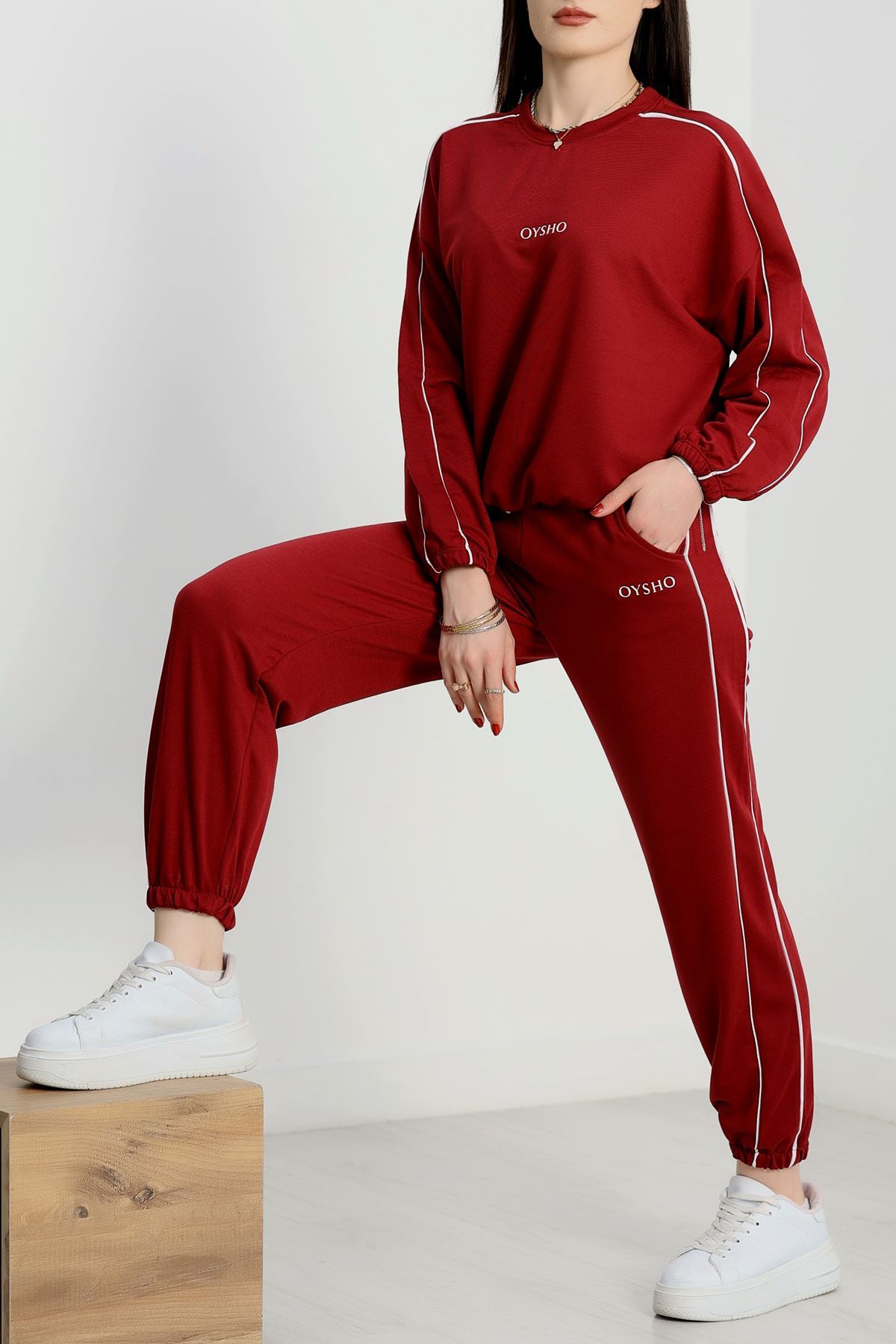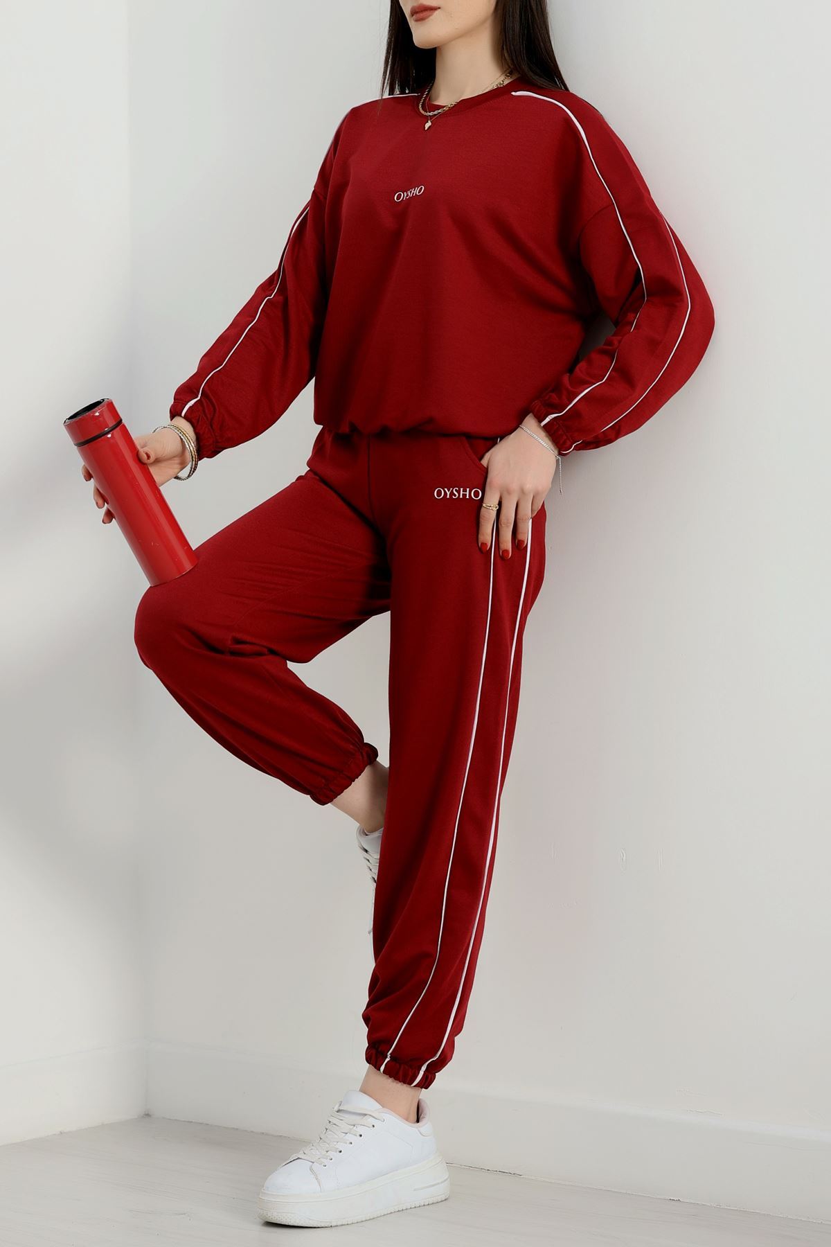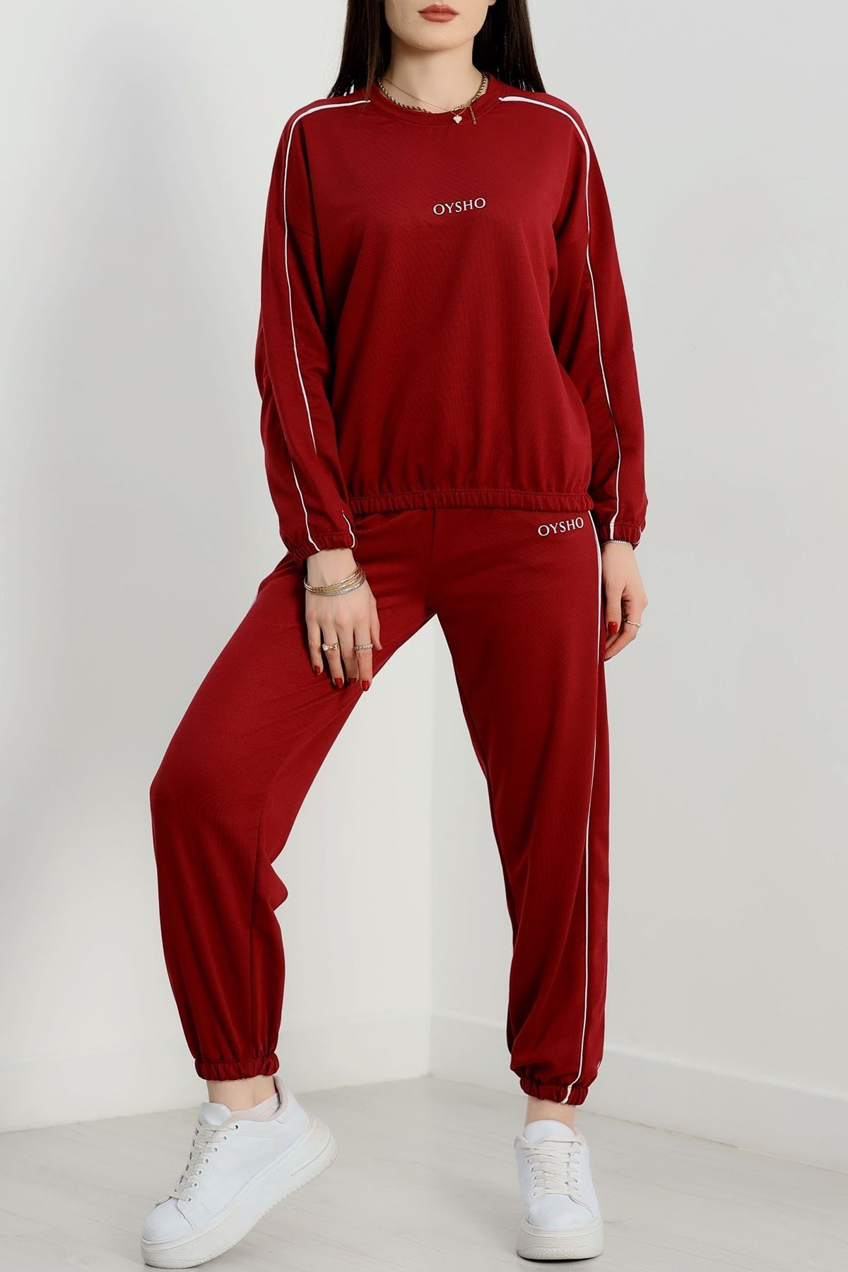 Biyeli 2 İplik Eşofman Takımı Bordoekru - 50744.1005.