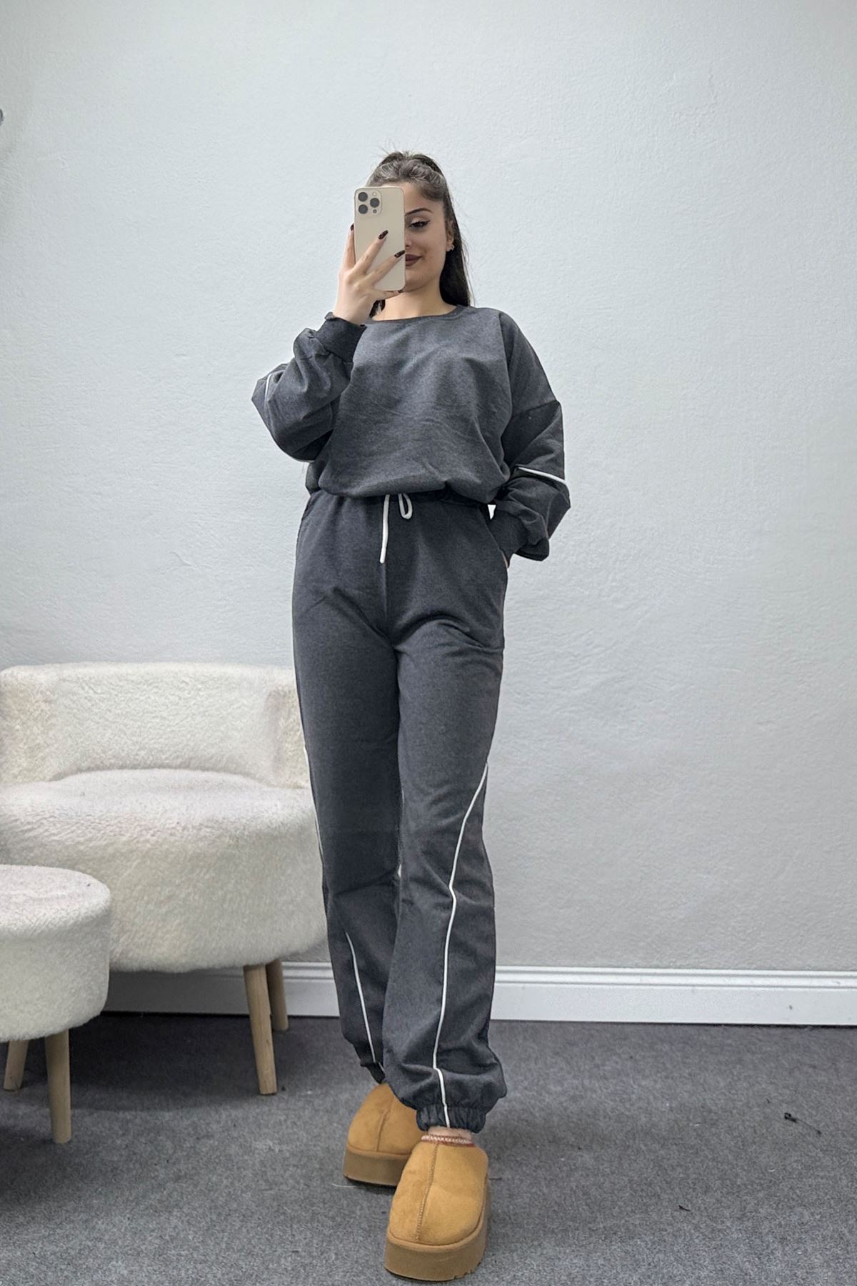 Üç İplik Palazzo Eşofman Altı Antrasit - 20970.1878.
