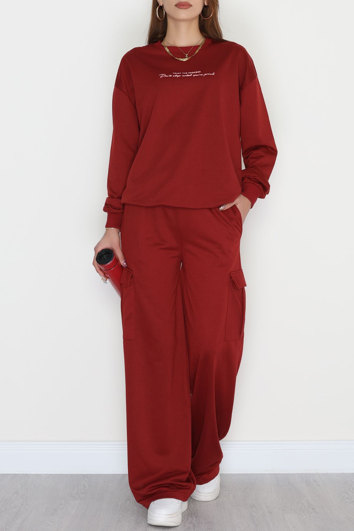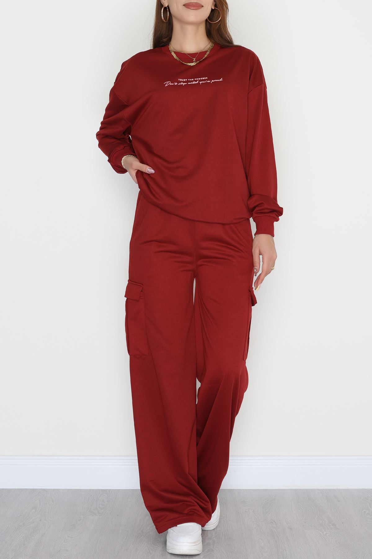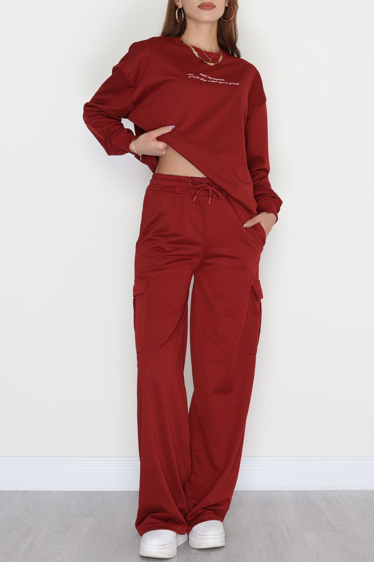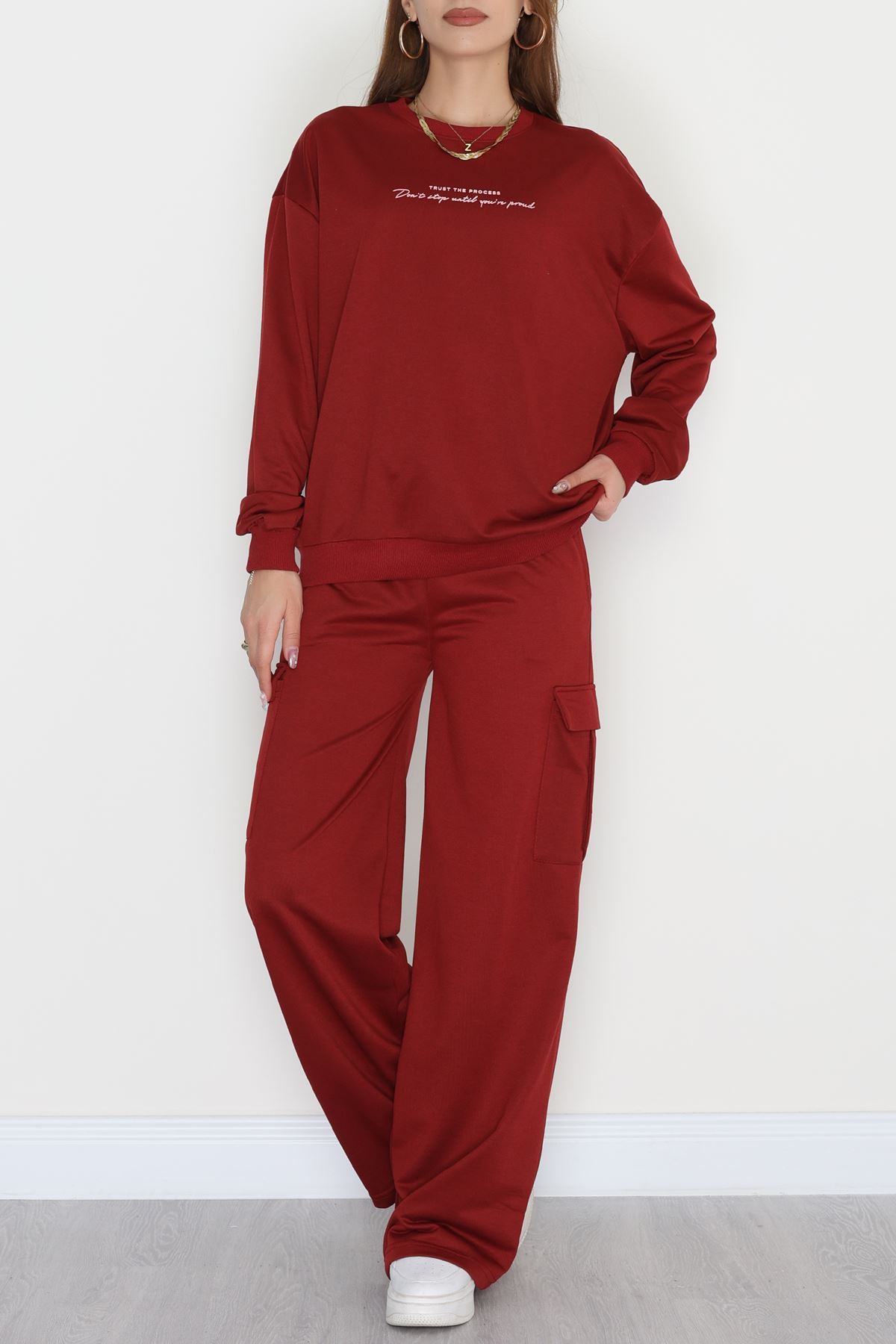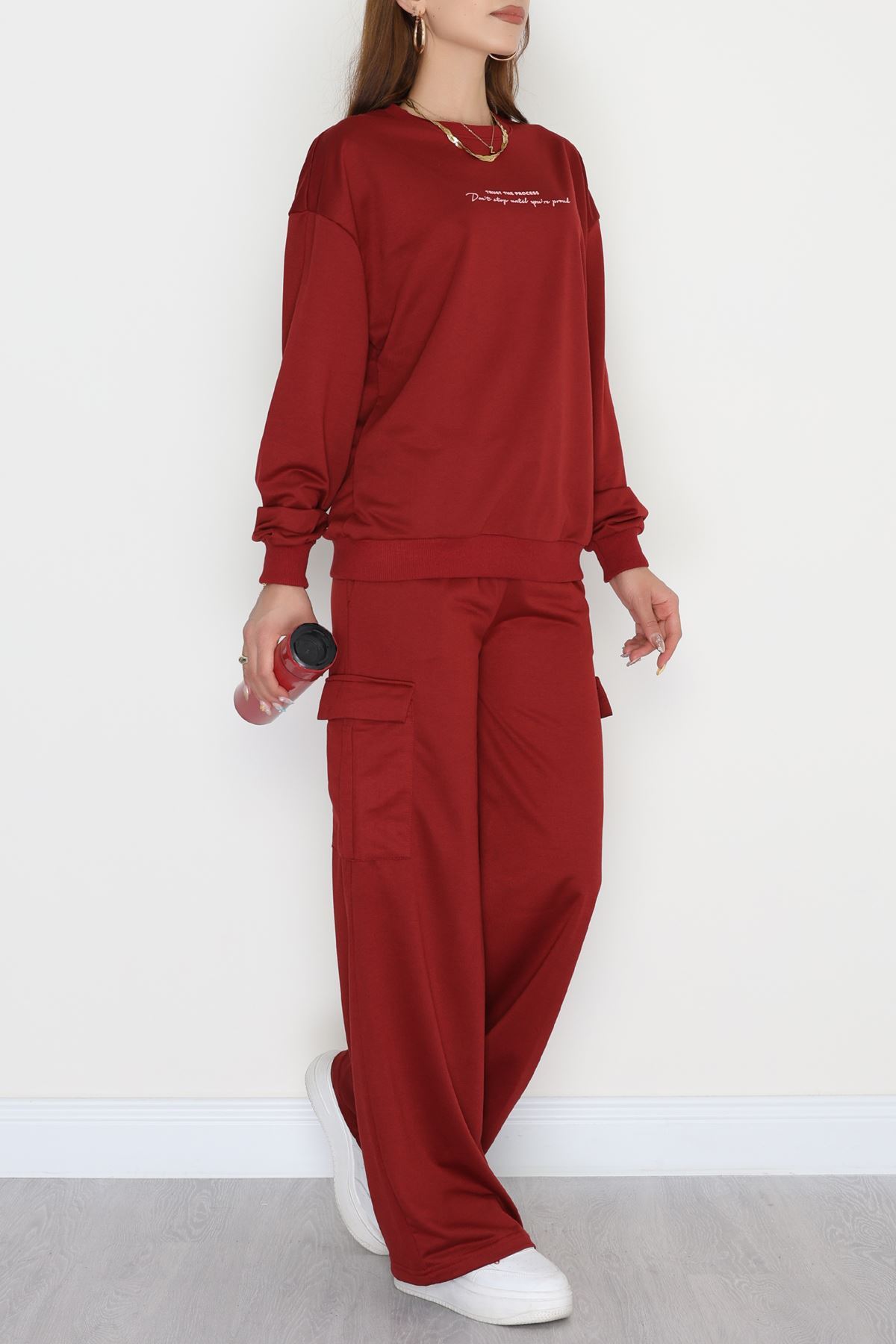 Baskılı 2 İplik Eşofman Takımı Bordo - 50737.1005.