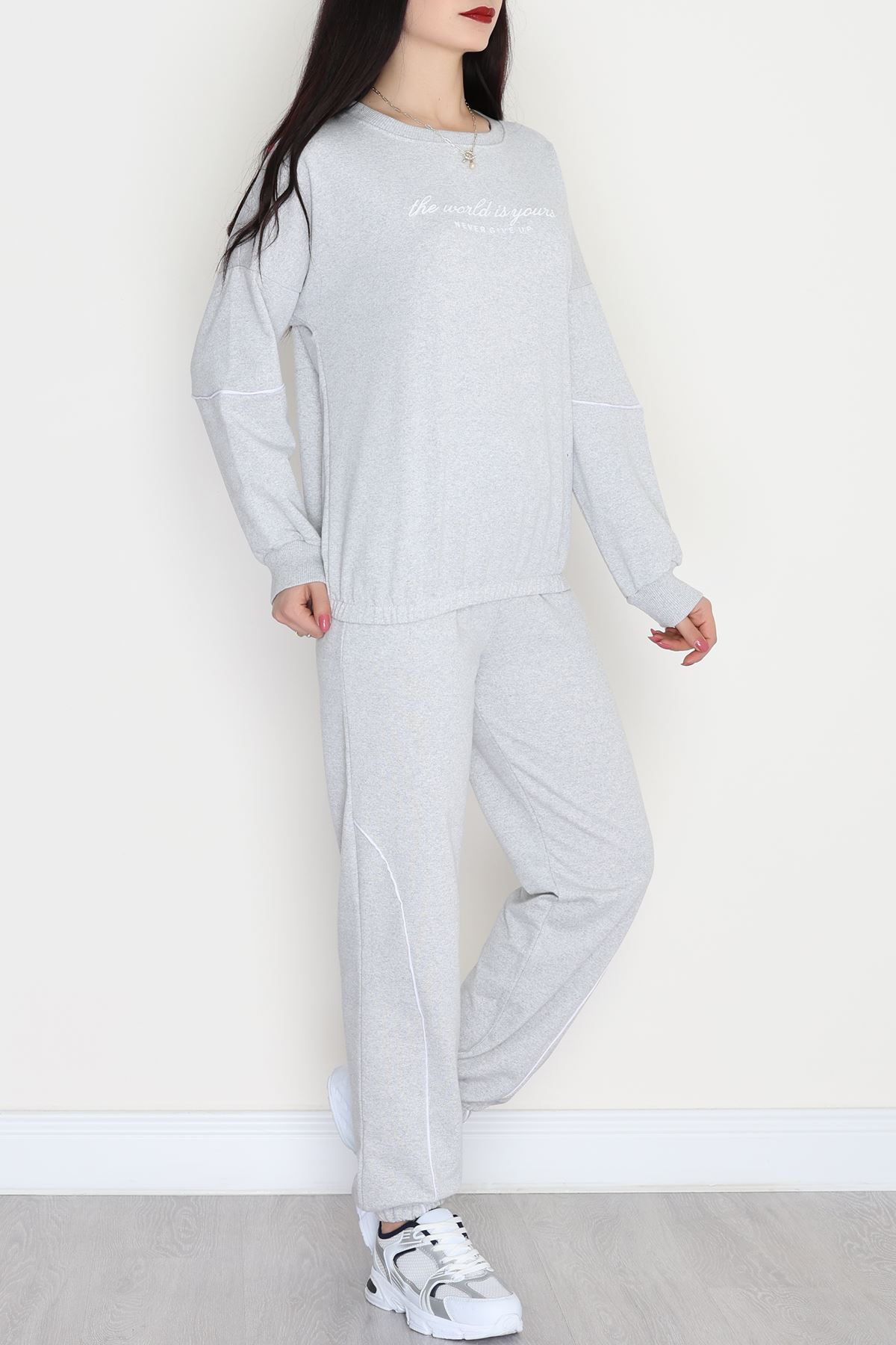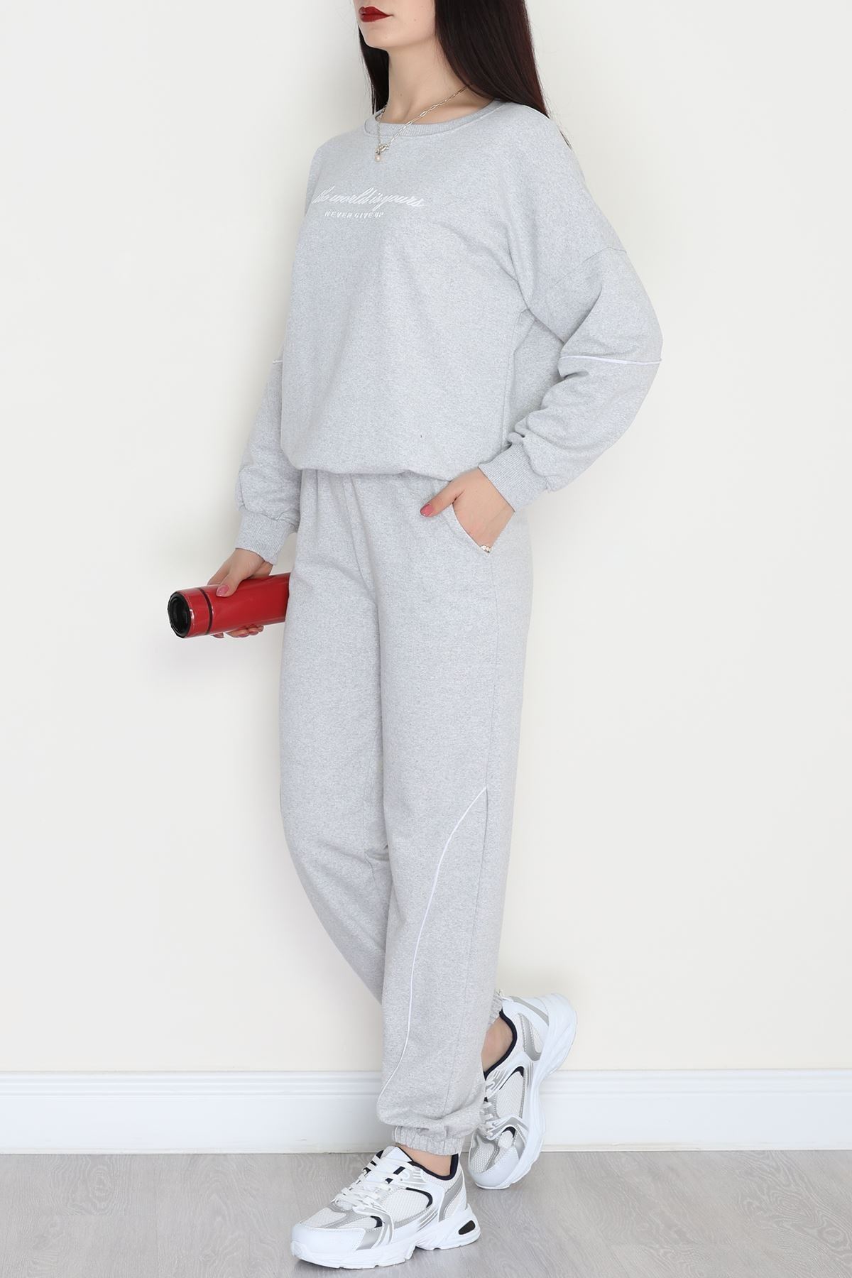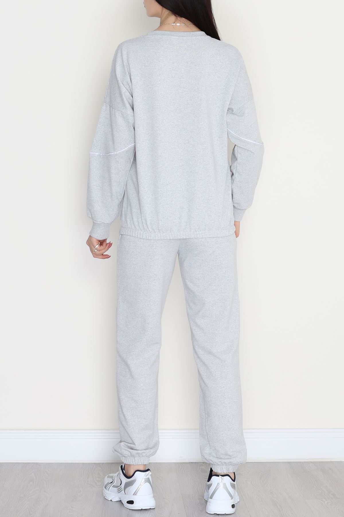 Biyeli Baskılı 2 İplik Eşofman Takımı Gri - 50791.1857.