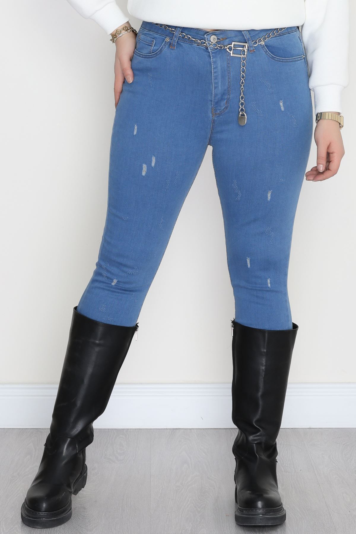 Büyük Beden Dar Paça Kot Pantolon Açıkmavi - 42684.1836.