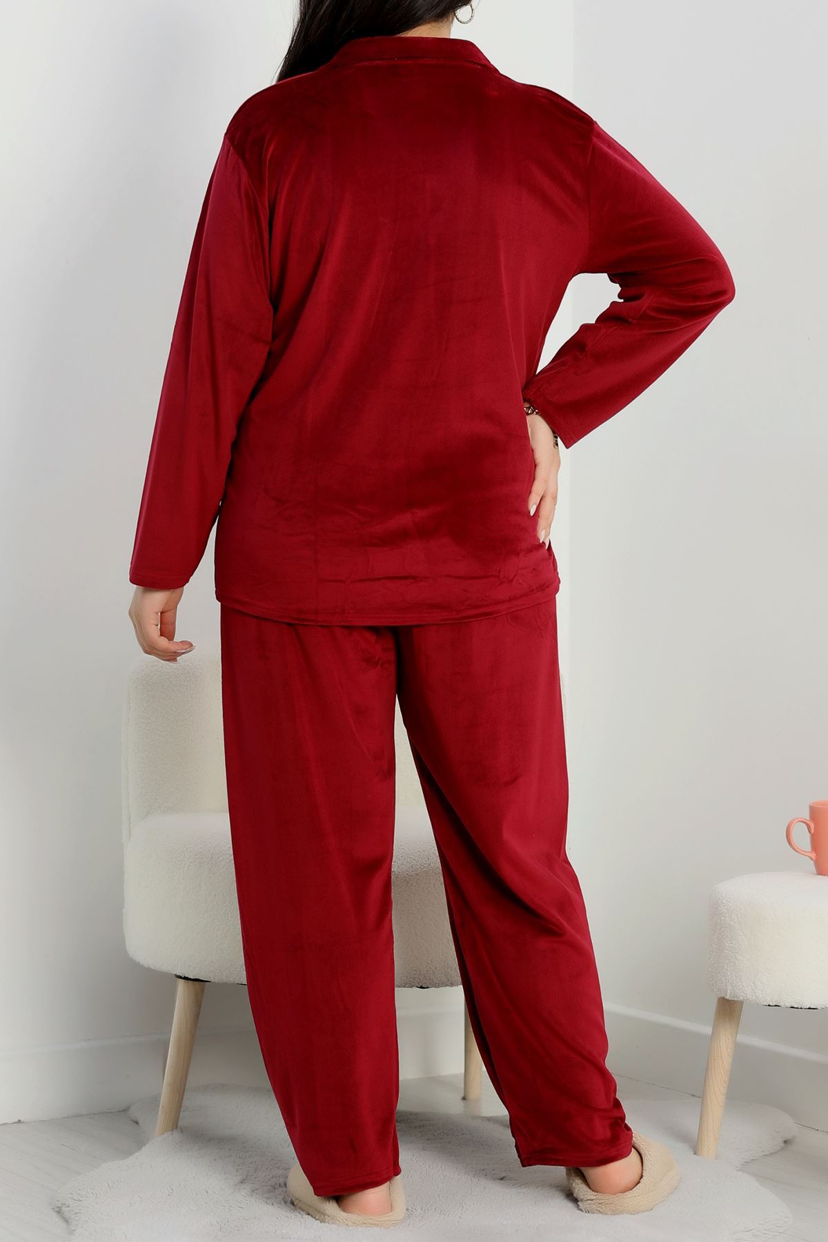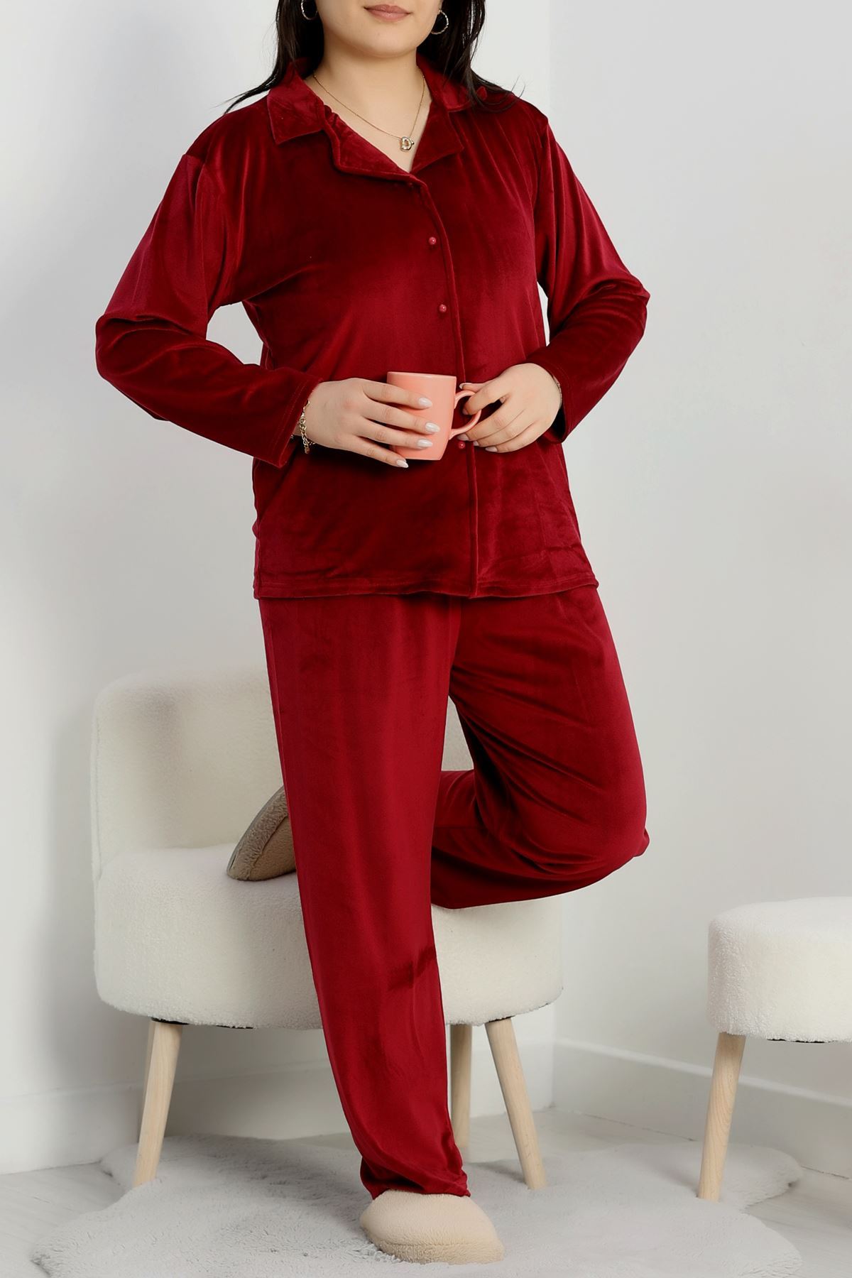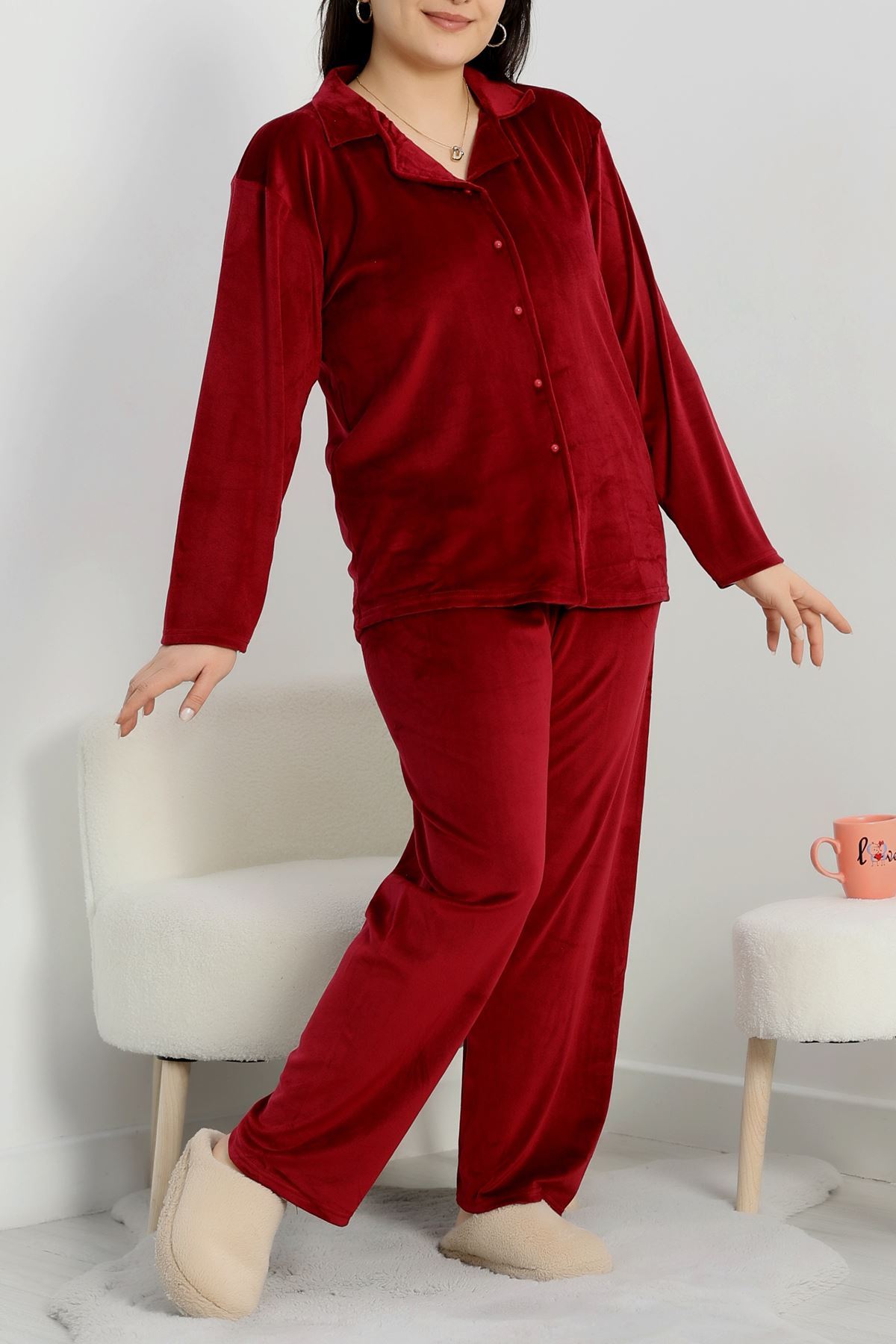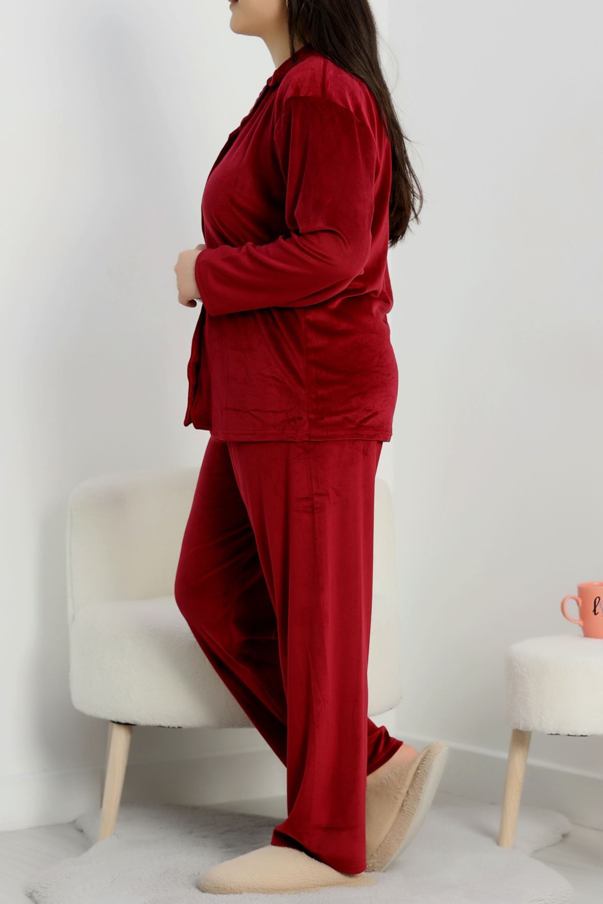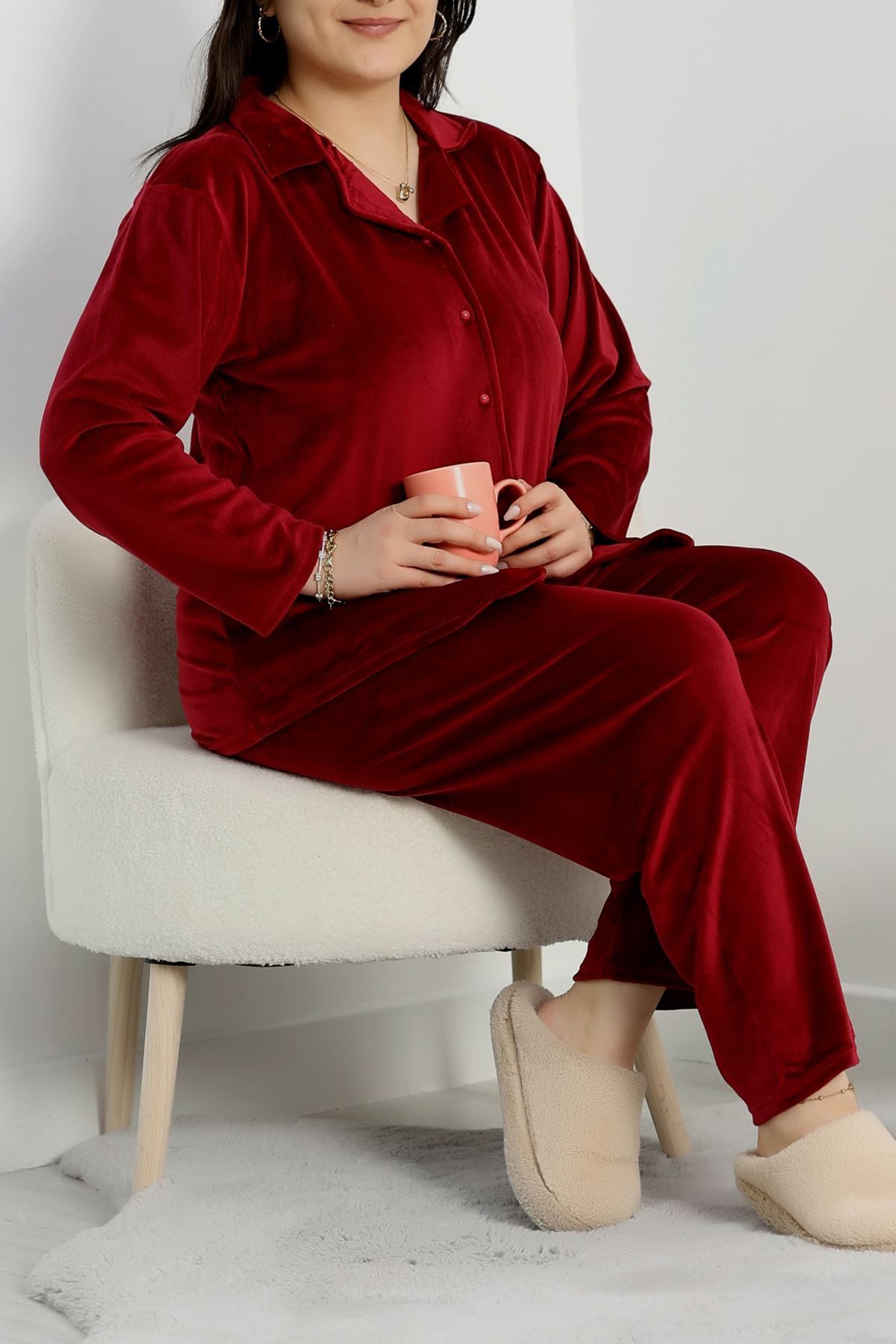 Büyük Beden Likralı Fransız Kadife Pijama Takımı Bordo - 42067.1049.