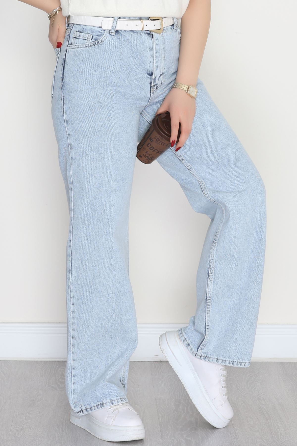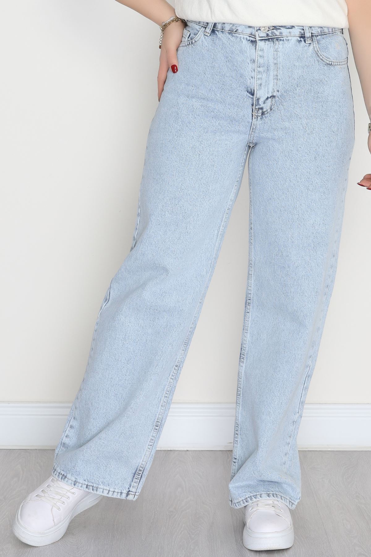 Büyük Beden Palazzo Kot Pantolon Buzmavi - 31539.1184.