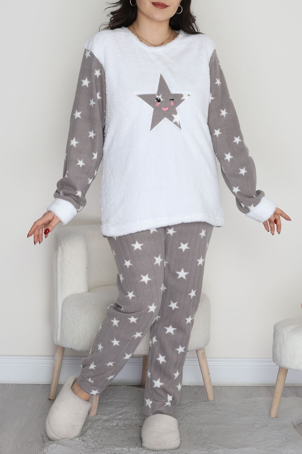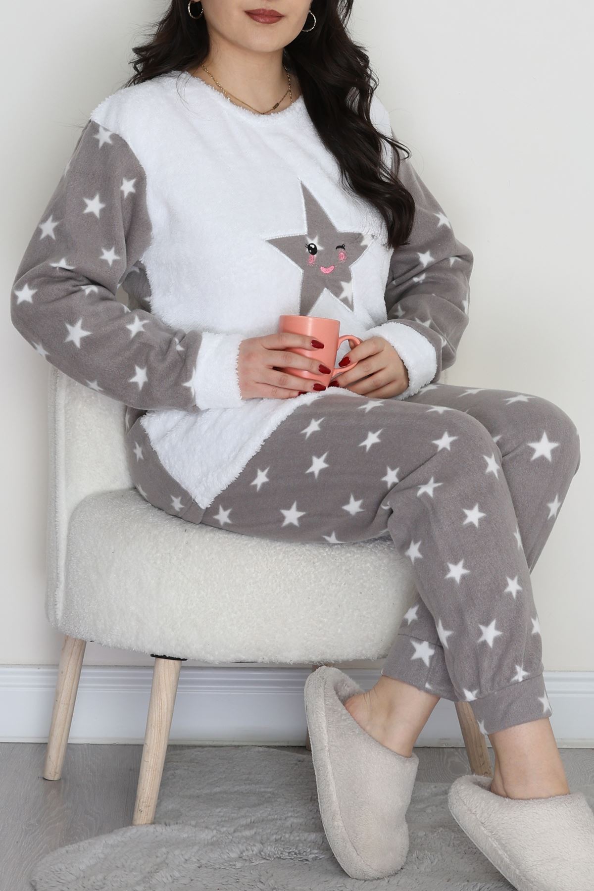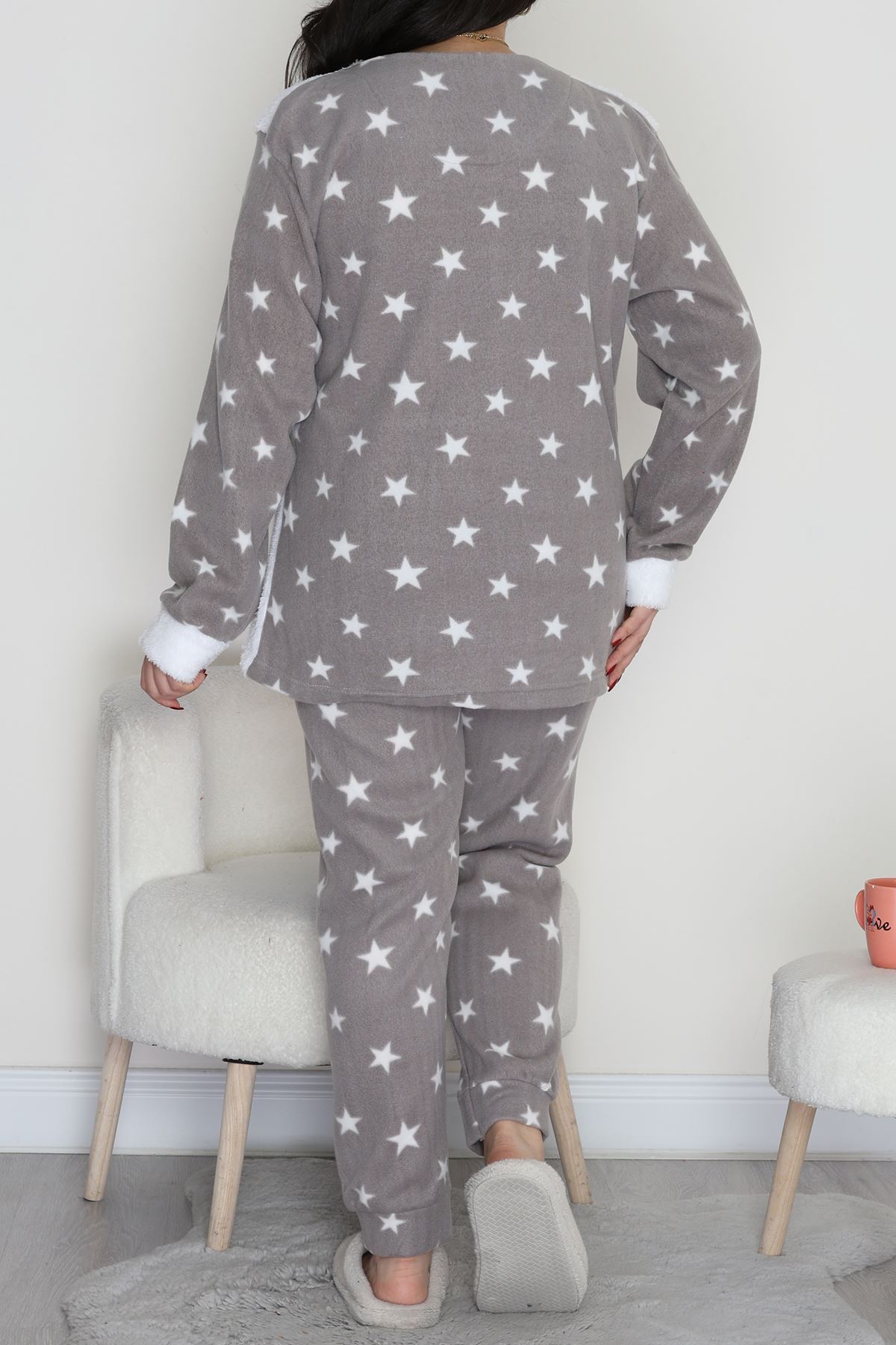 Büyük Beden Polar Pijama Takımı Dumangri - 50768.1961.