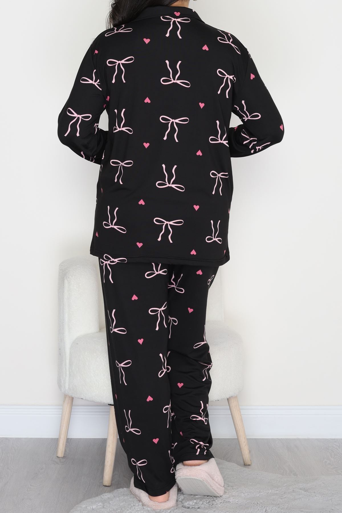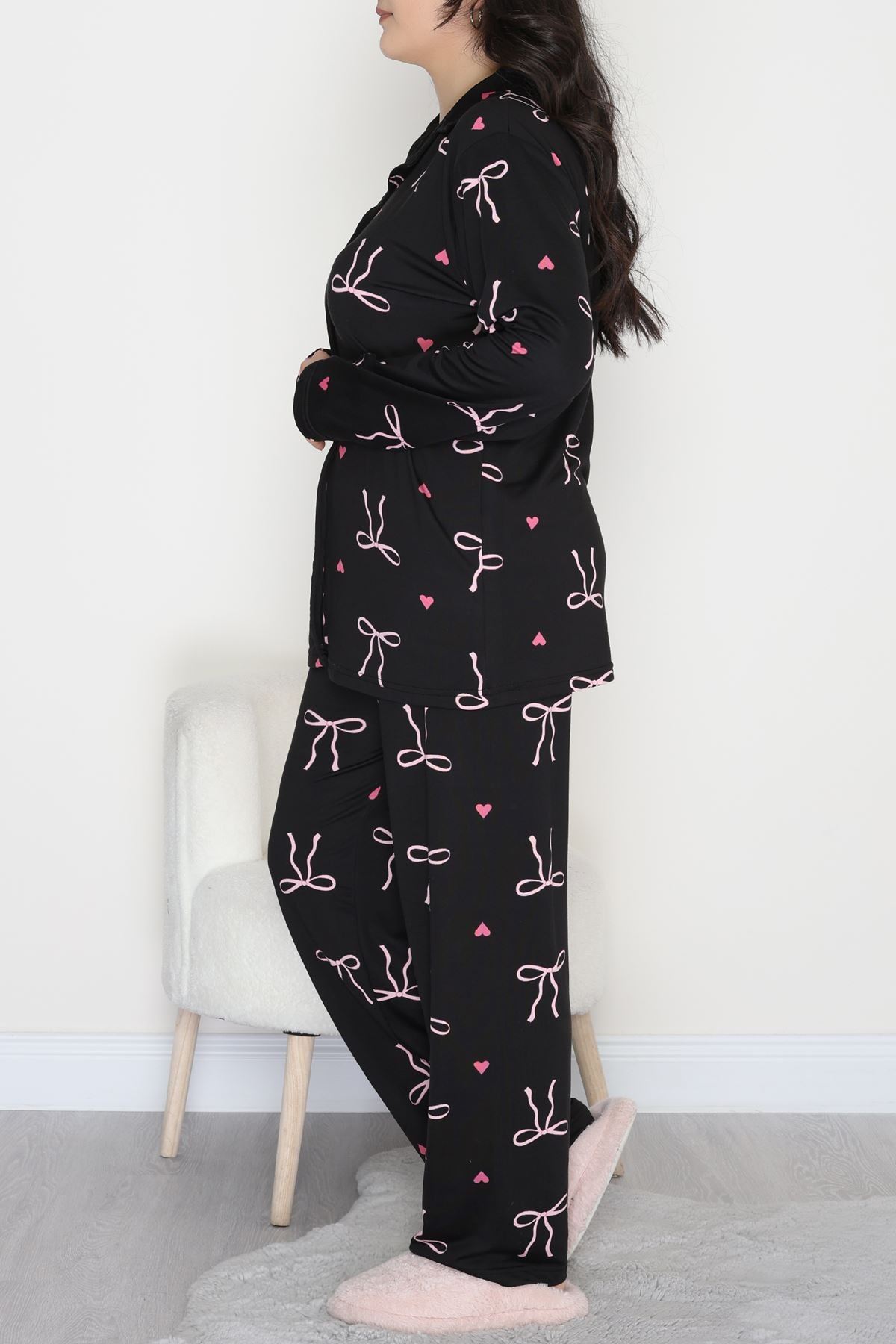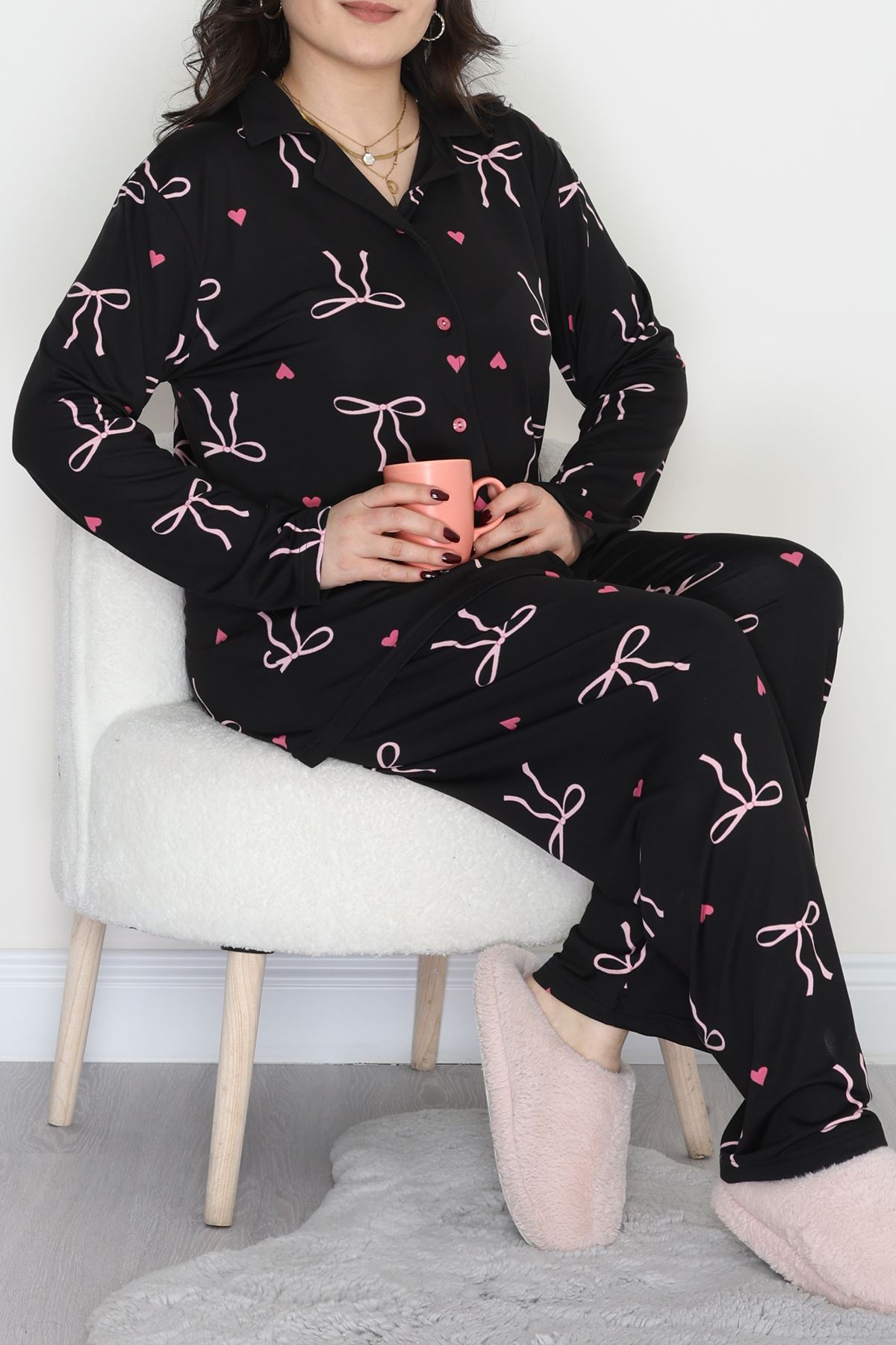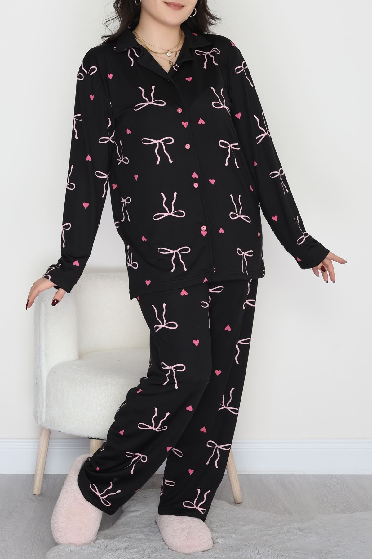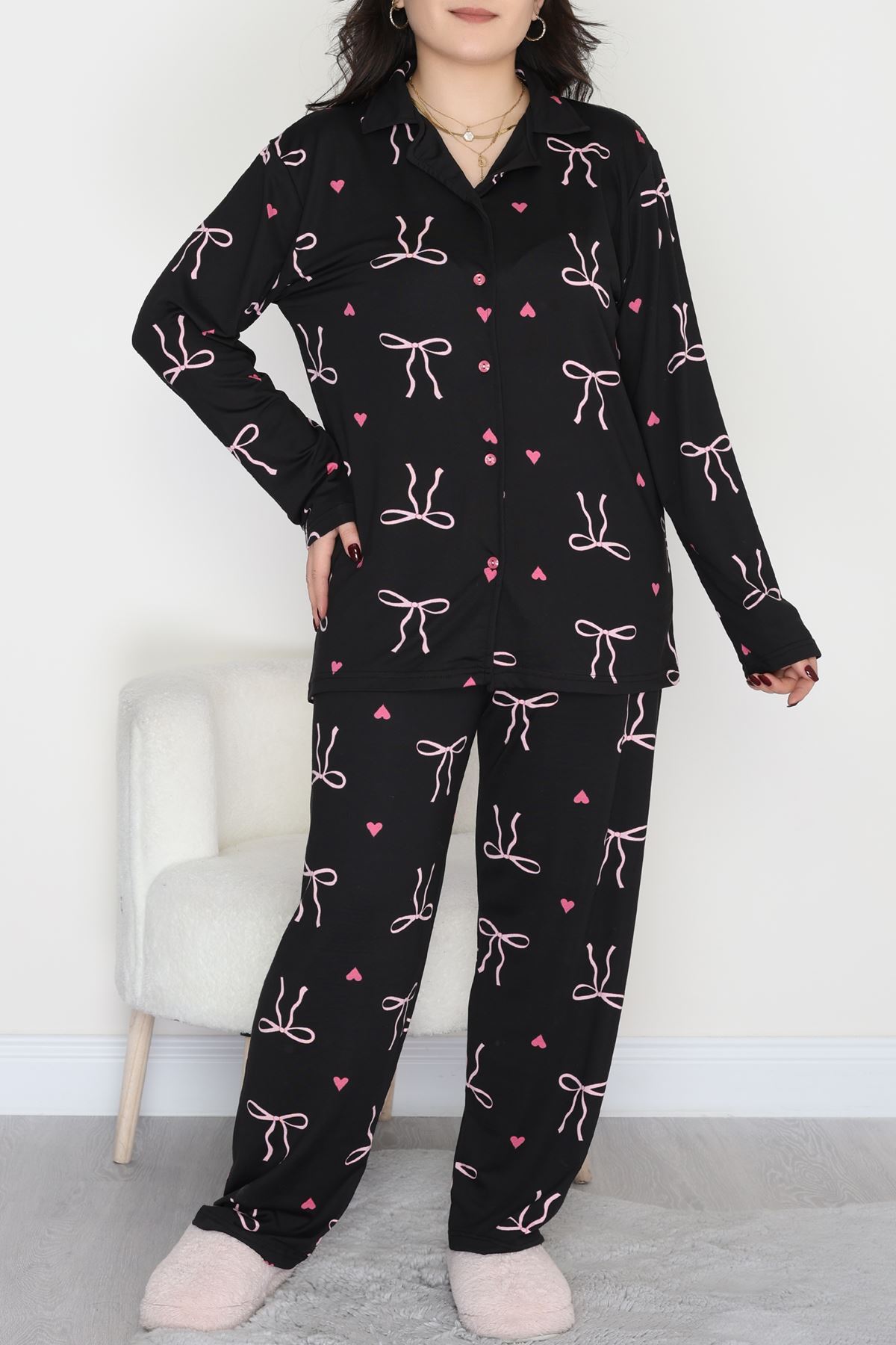 Büyük Beden Soft Milan Düğmeli Pijama Takımı Siyahpembefiyonk - 754.1287.