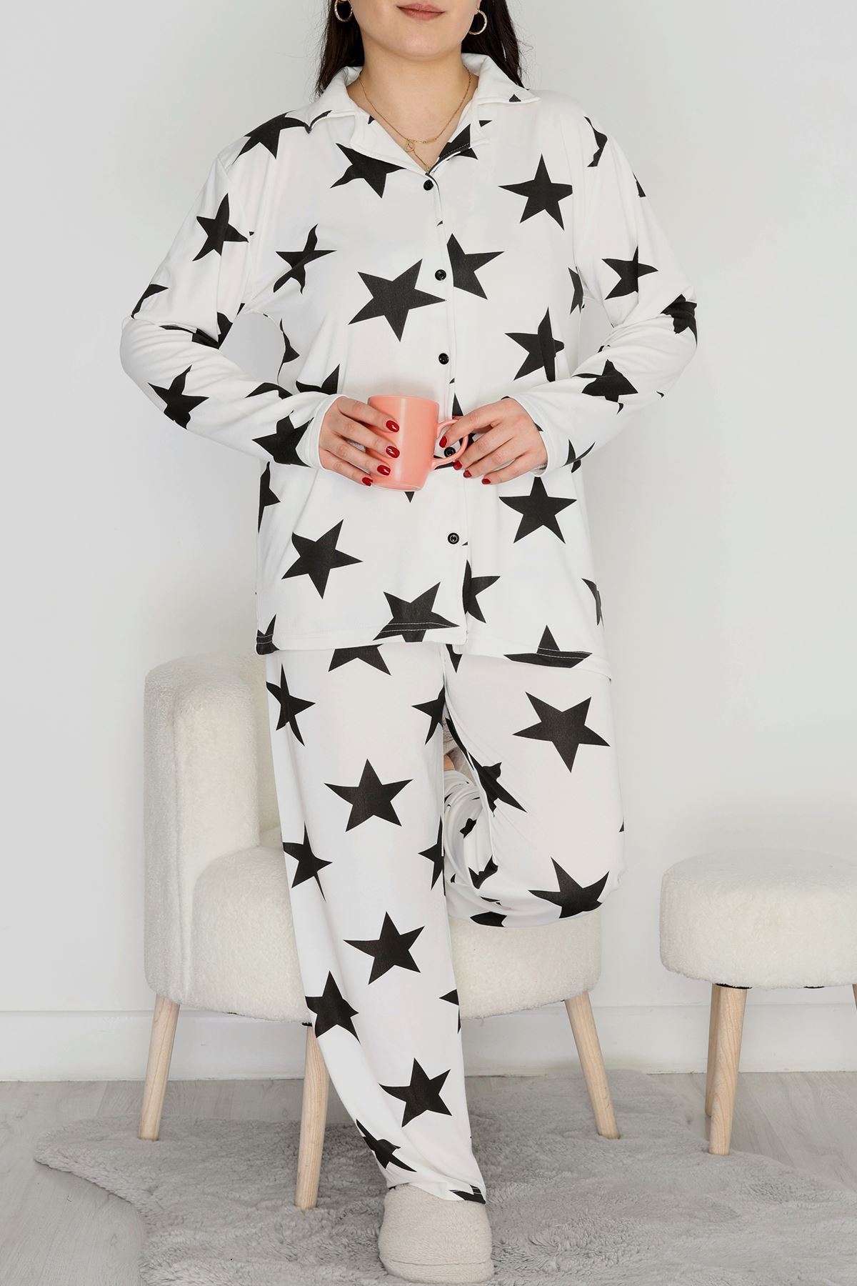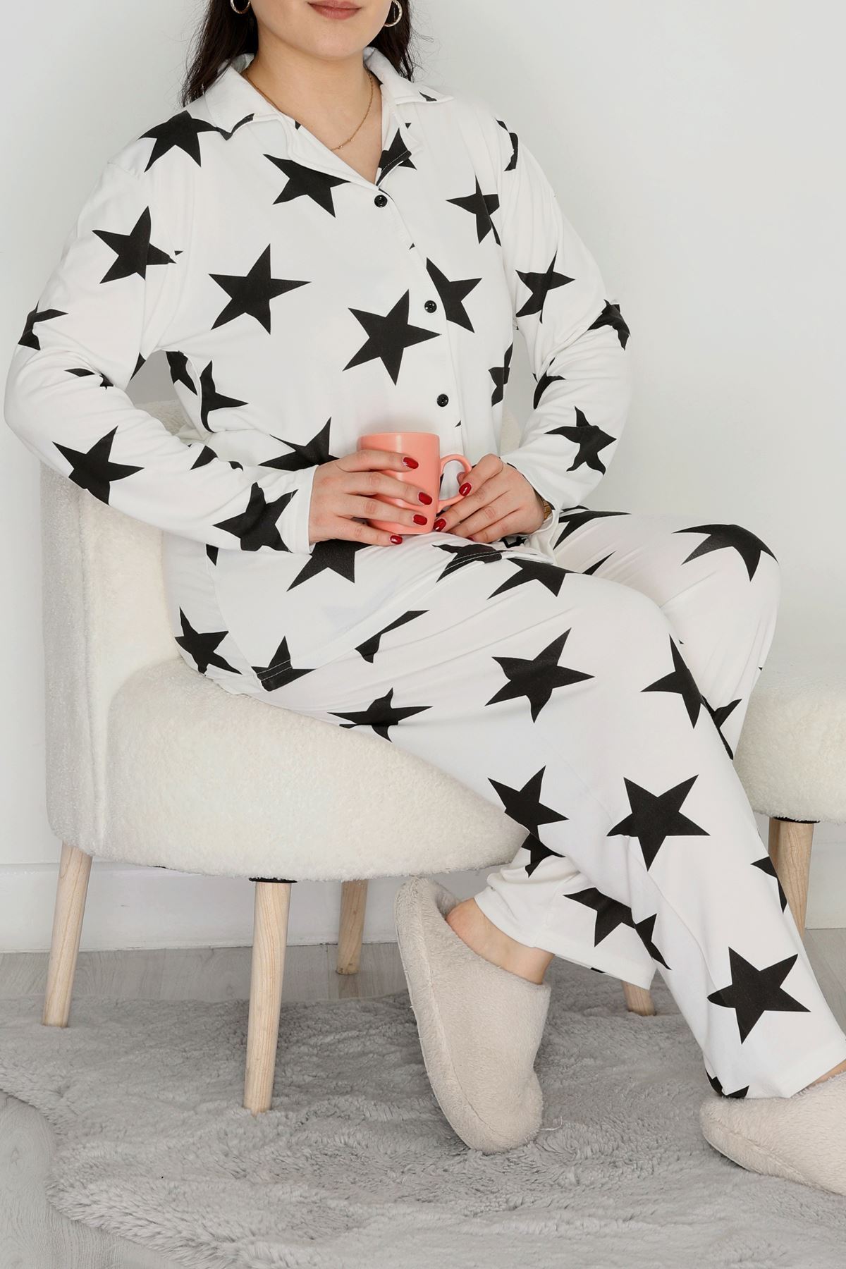 Büyük Beden Soft Milan Düğmeli Pijama Takımı Siyahyıldız - 754.1287.