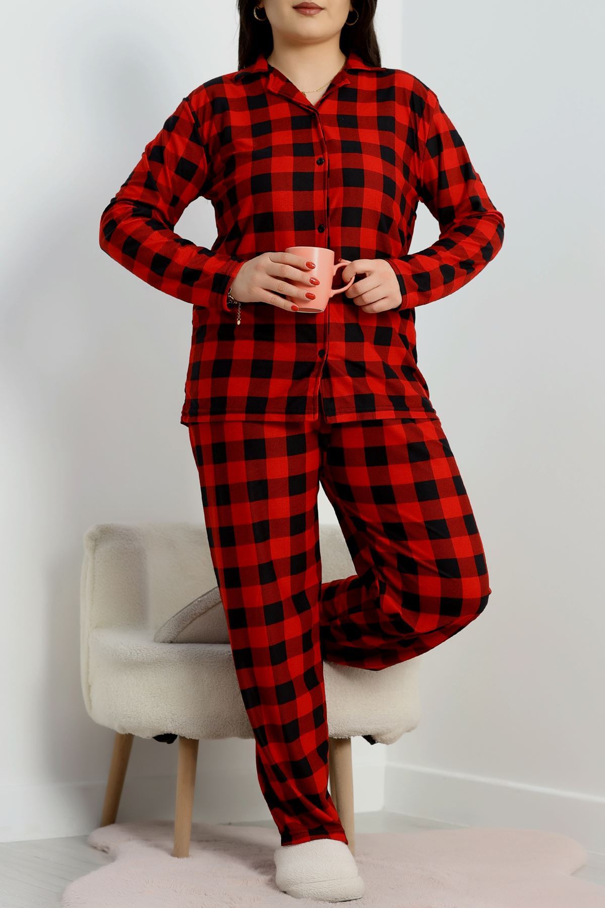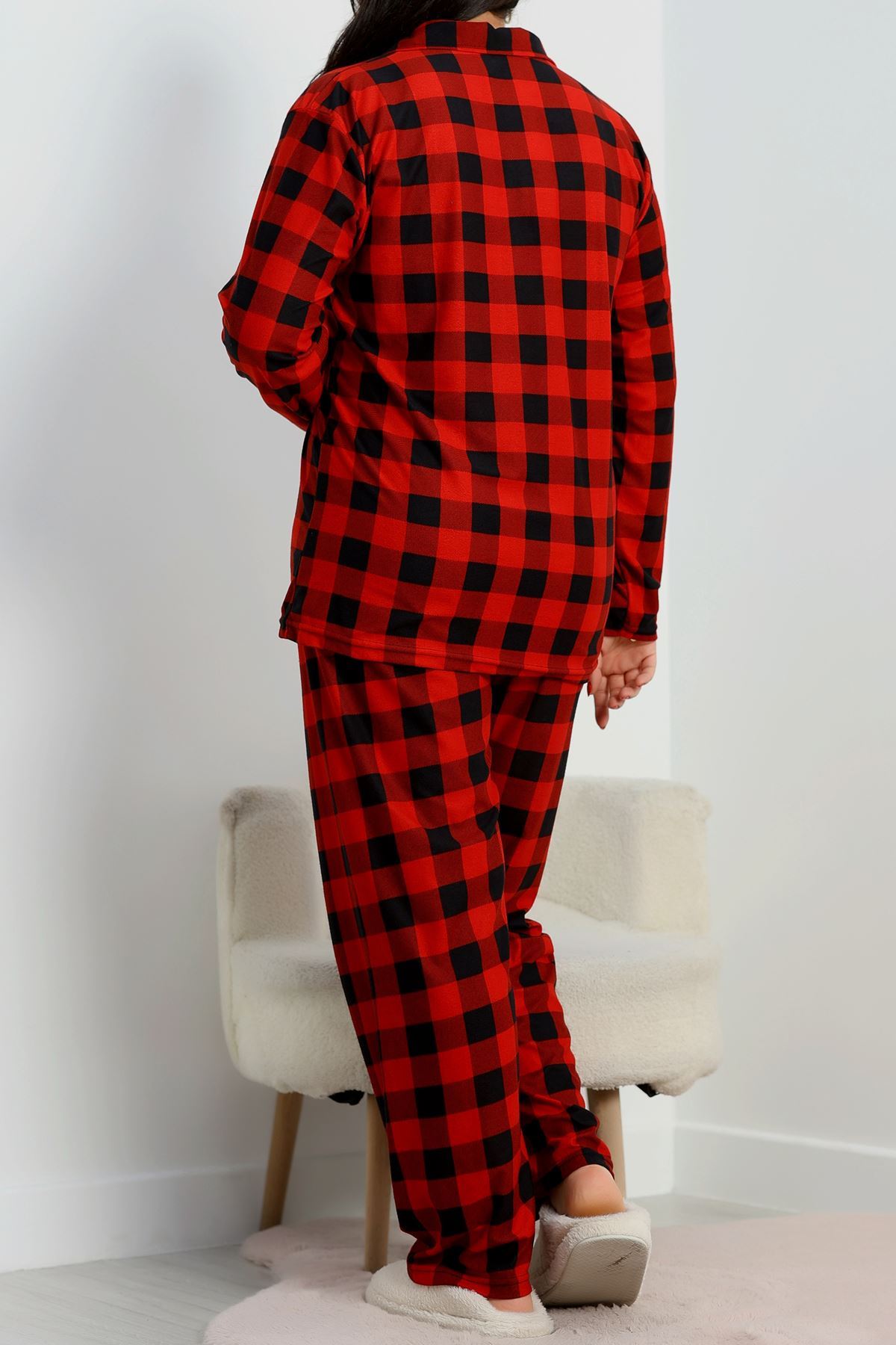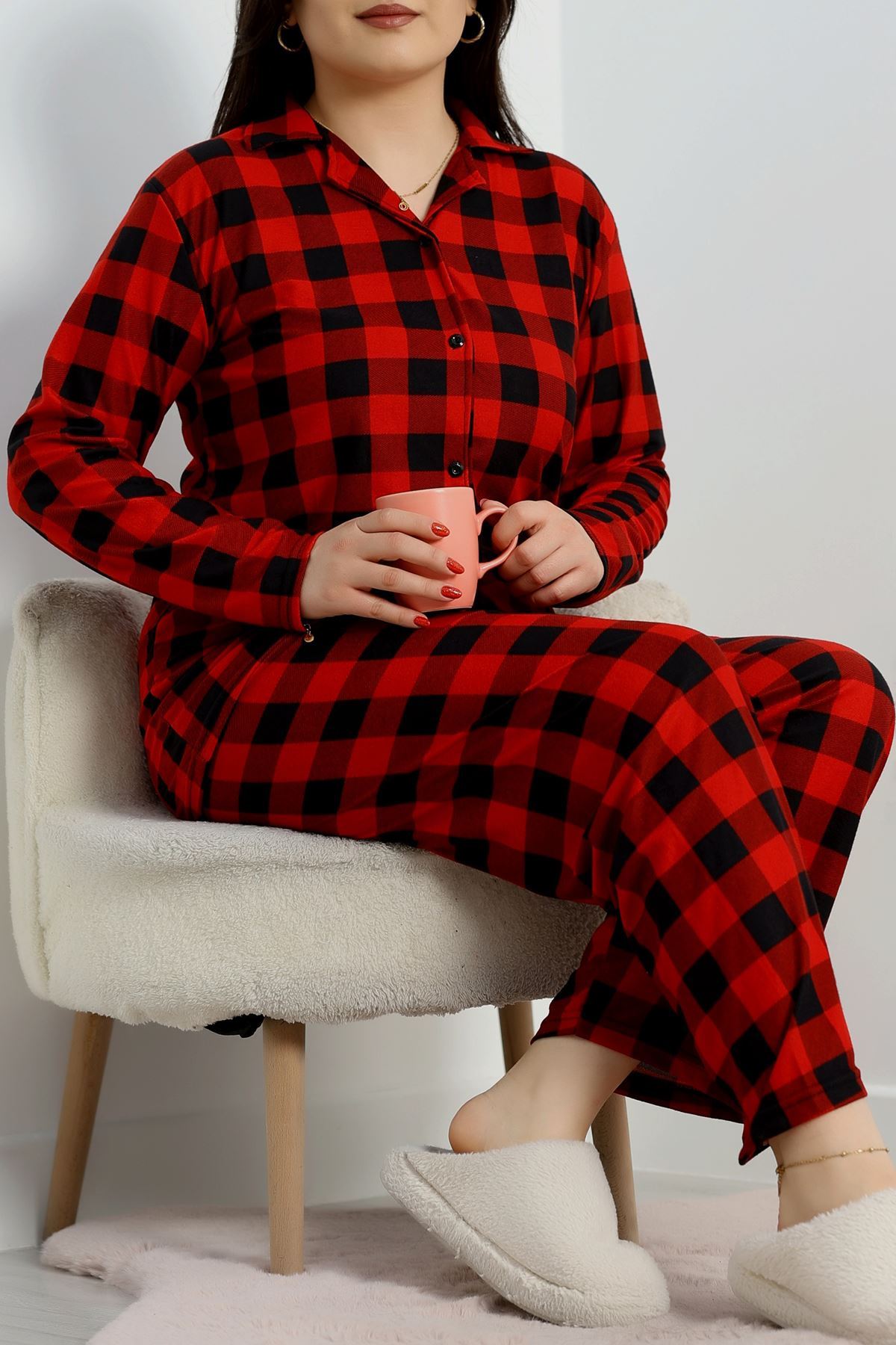 Büyük Beden Süet Düğmeli Pijama Takımı Siyahkare - 455.1287.