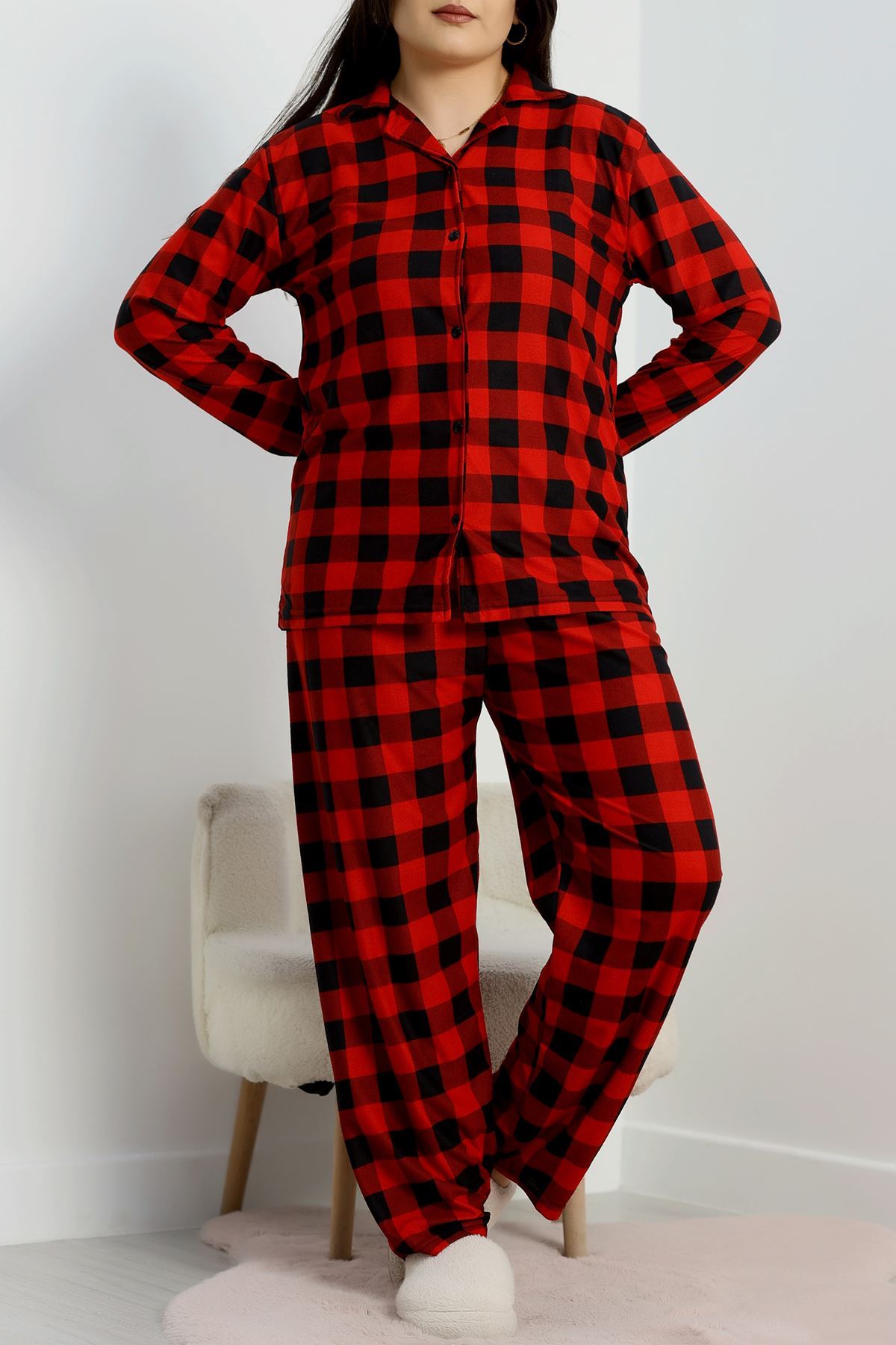 Büyük Beden Soft Milan Düğmeli Pijama Takımı Siyahpembefiyonk - 754.1287.
