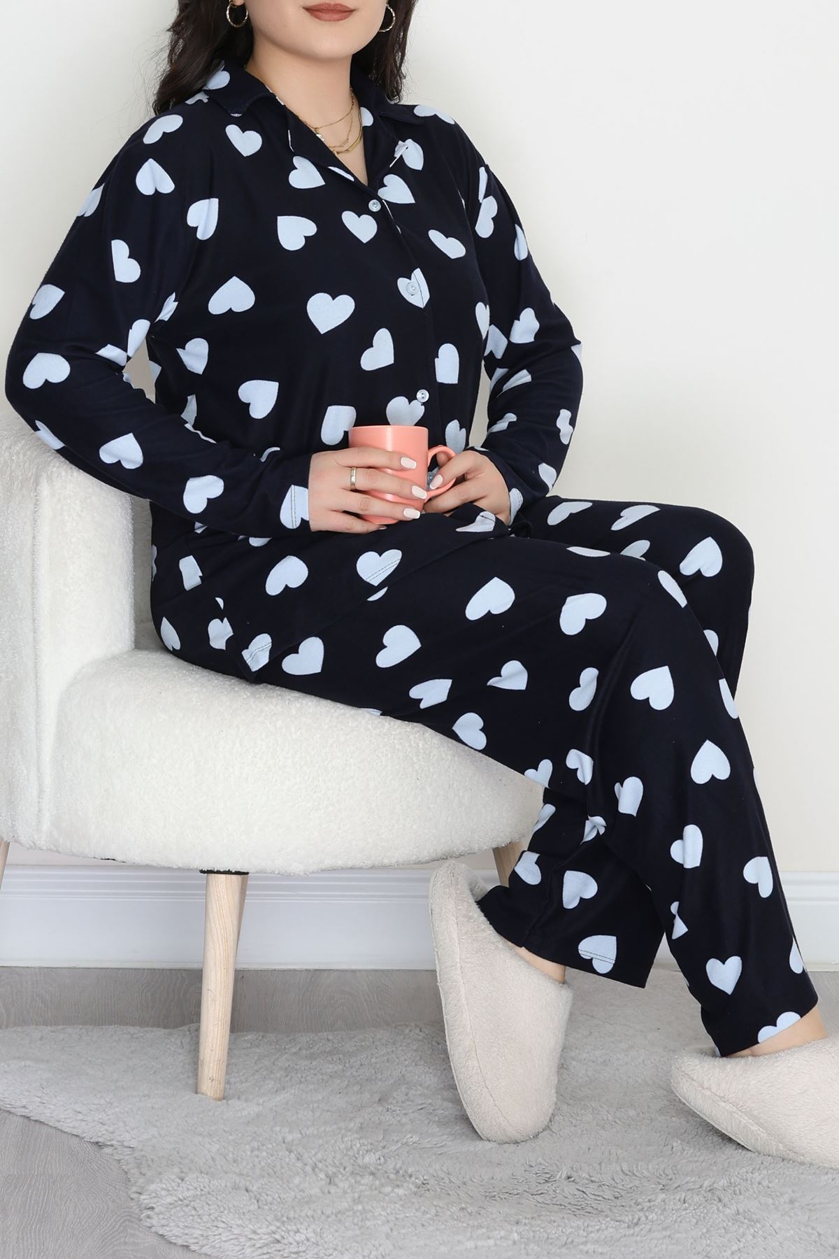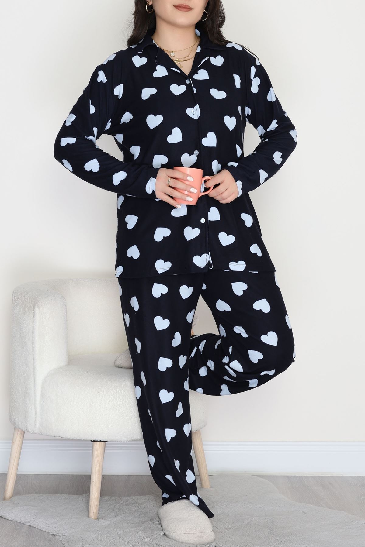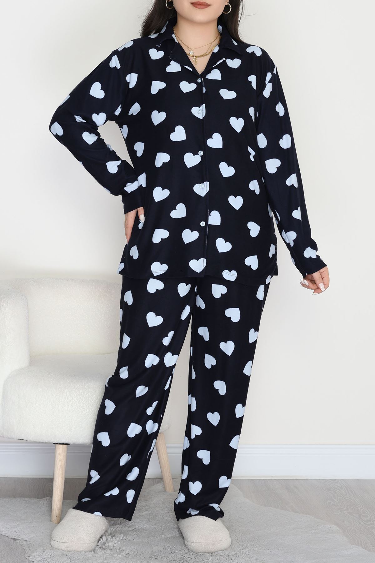 Büyük Beden Likralı Fransız Kadife Pijama Takımı Siyah - 42067.1049.