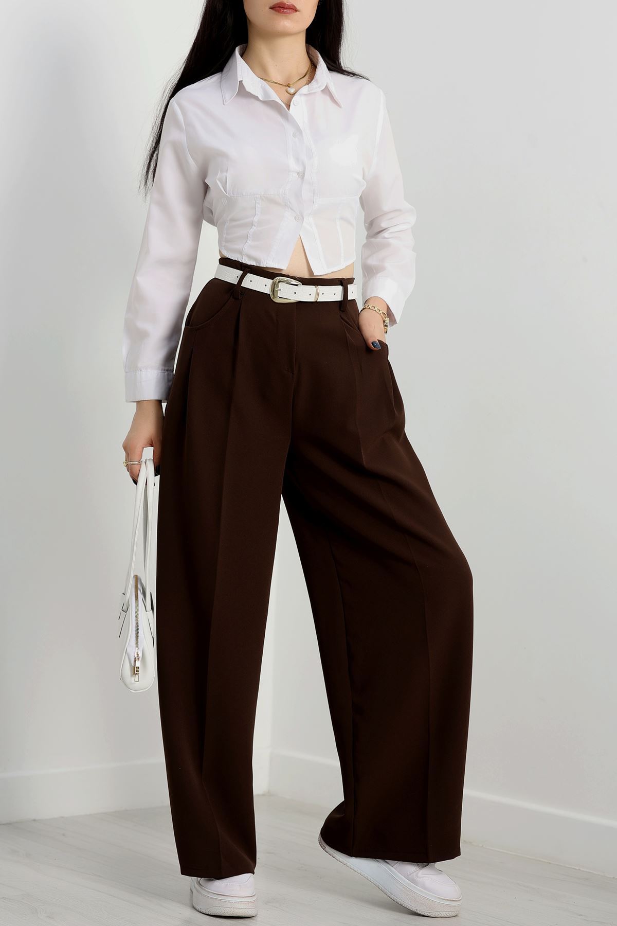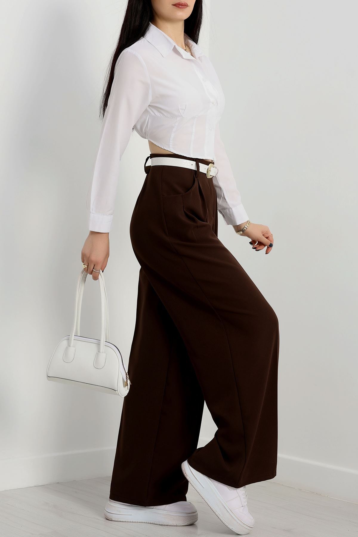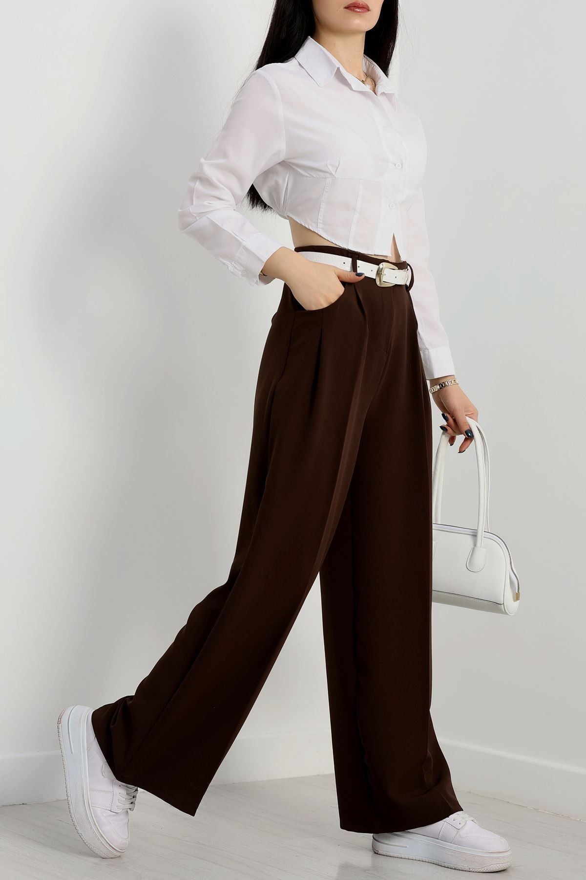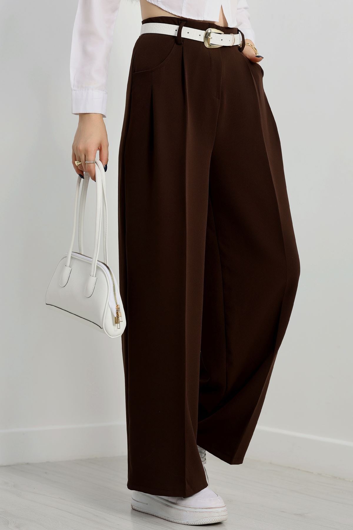 Kemerli Palazzo Pantolon Kahve - 24194.1397.